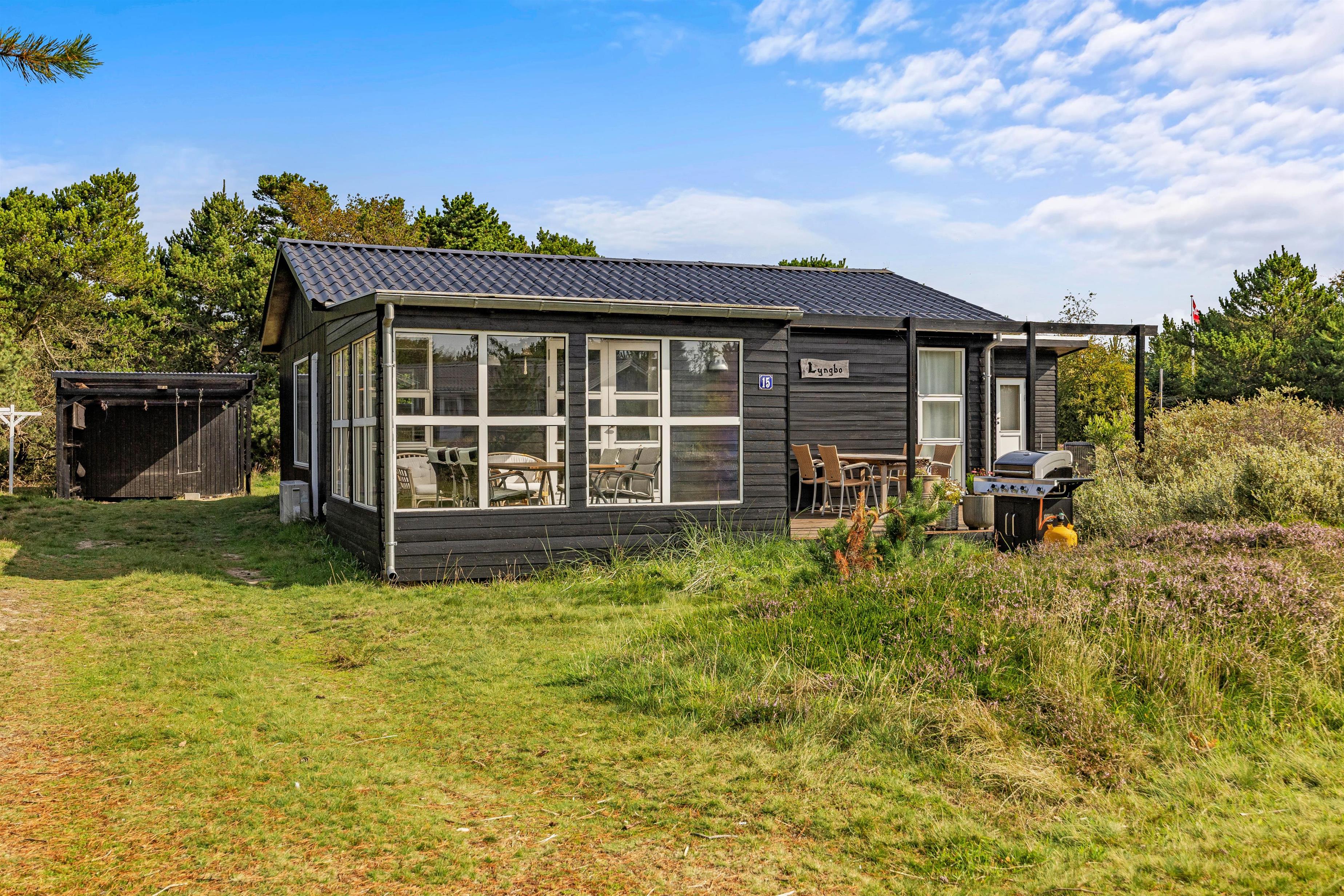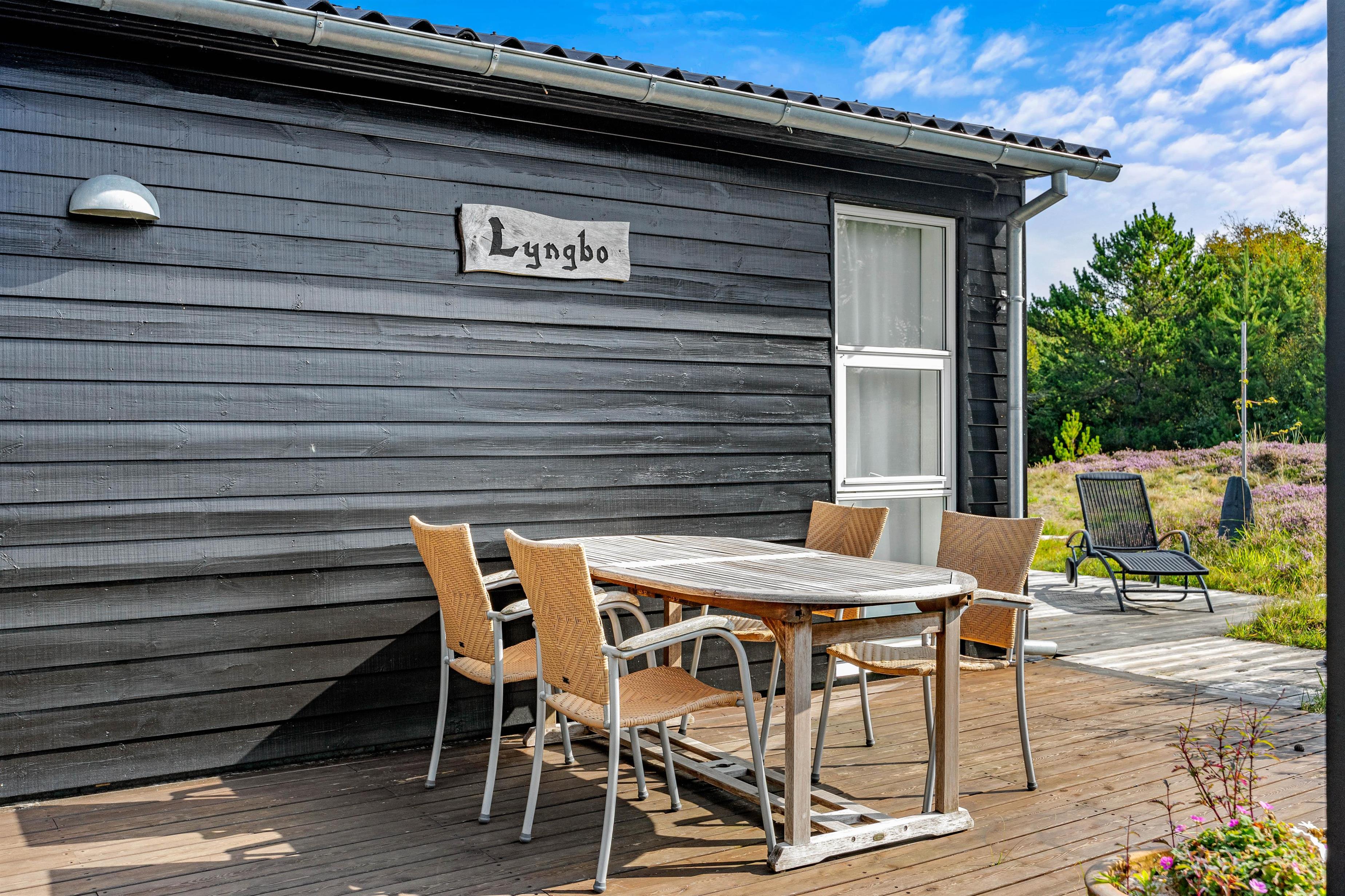 Efter en dejlig dag ved stranden kan I samle hele feriegruppen på terrassen. Her kan I nyde en lækker middag, der kan tilberedes på sommerhusets grill. Terrassen er åben og både delvist afskærmet og overdækket, så der er mulighed for at hygge udenfor sammen i al slags vejr, året rundt.