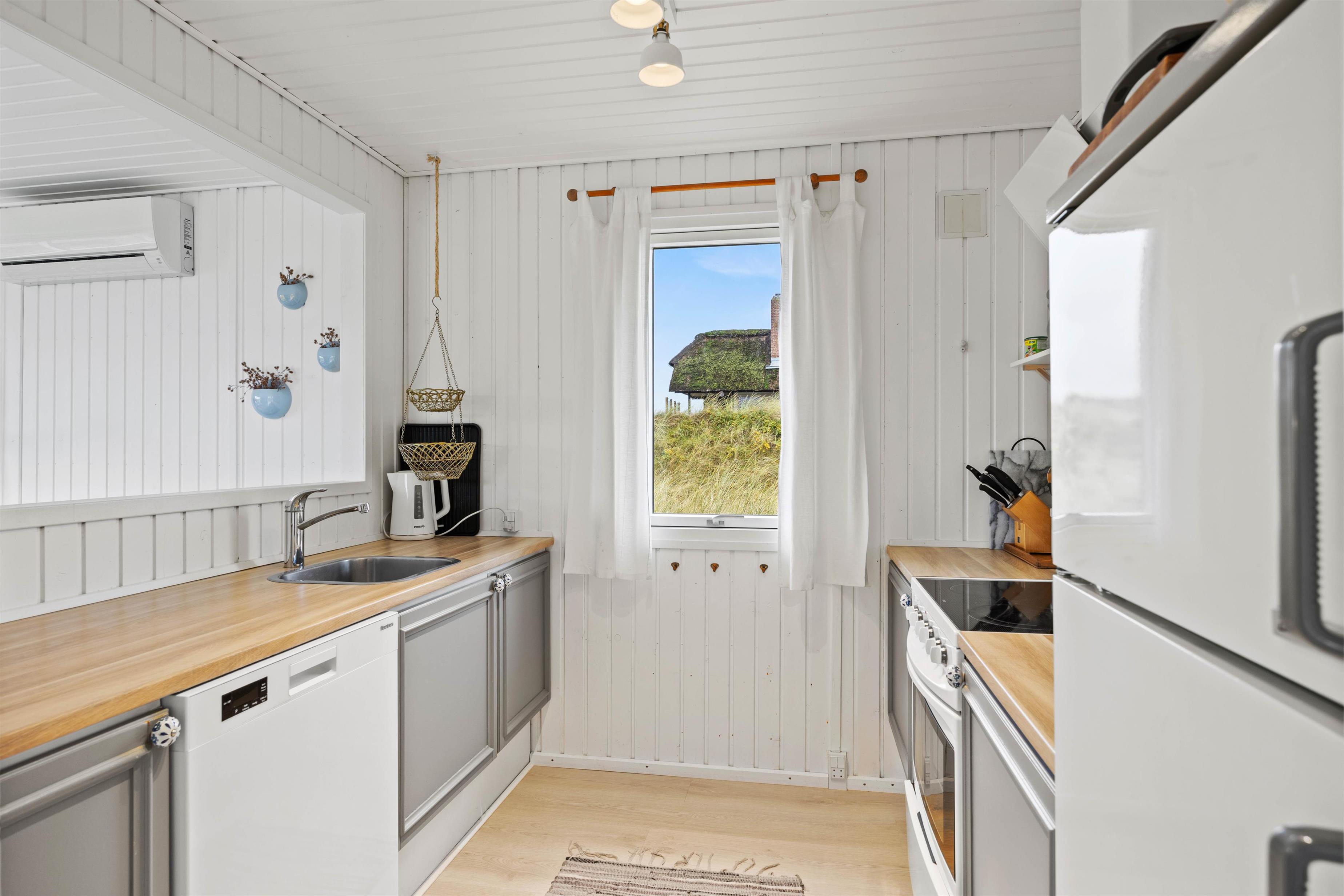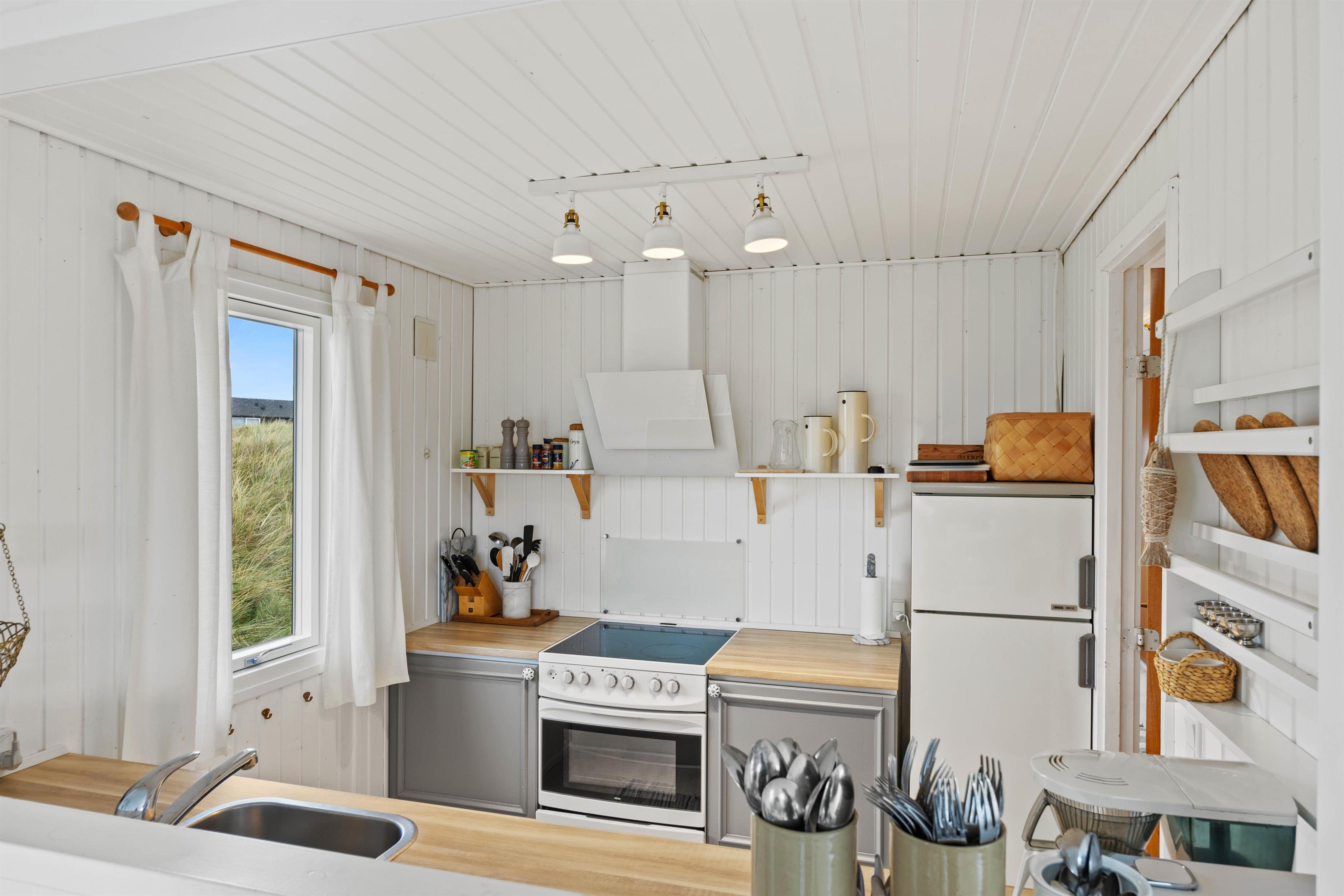 Beliggende på en smuk klitgrund, tilbyder dette feriehus rig mulighed for at nyde den storslåede natur, der omgiver jer. Med kun 200 meter til Vesterhavet og 300 meter fra de nærmeste indkøbsmuligheder, kan I både få fuldt udbytte af naturen, og let få fat i alle de nødvendigheder eller lækkerier, I måtte få brug for under jeres ophold.