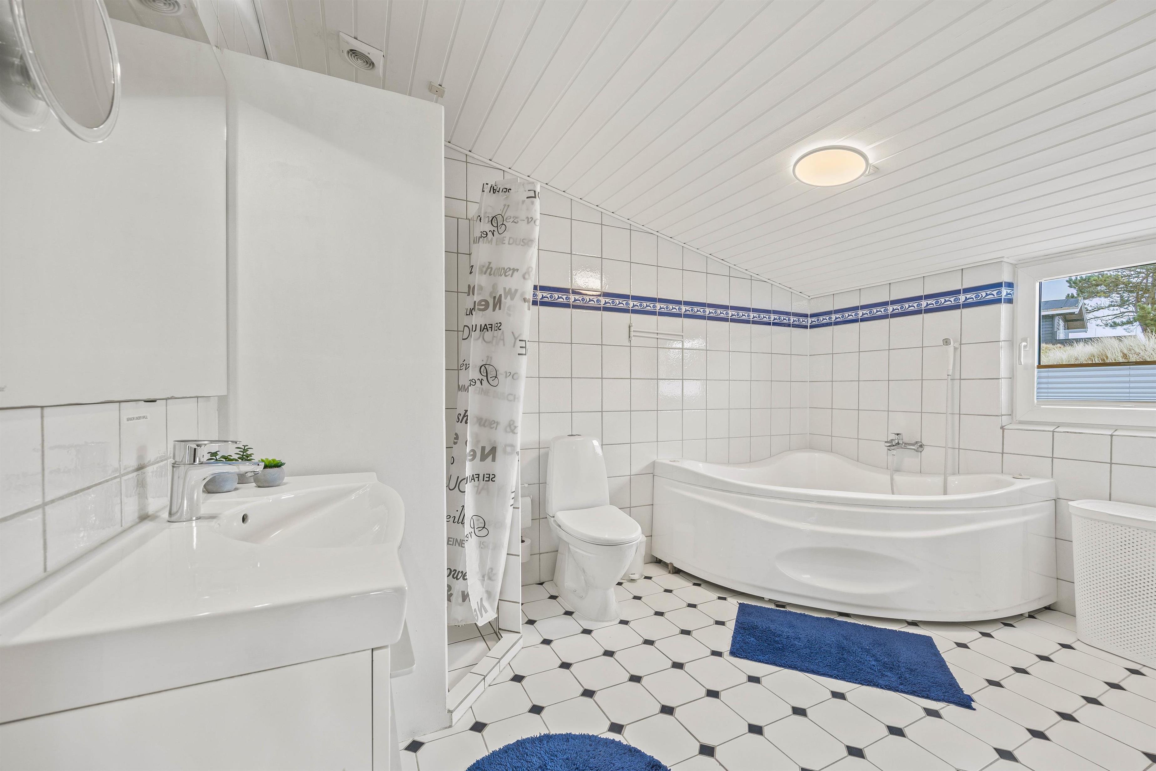 I forbindelse med badeværelset med gulvvarme er både spabad og sauna, så her kan I arrangere jeres egen lille wellnessaften. I de 3 soveværelser er komfortable dobbeltsenge, så her kan I slappe af og blive rigtig godt udhvilede i den friske vesterhavsluft. Der er vaskemaskine til rådighed for jer, så I kan opfriske garderoben eller håndklæderne i løbet af ferien.