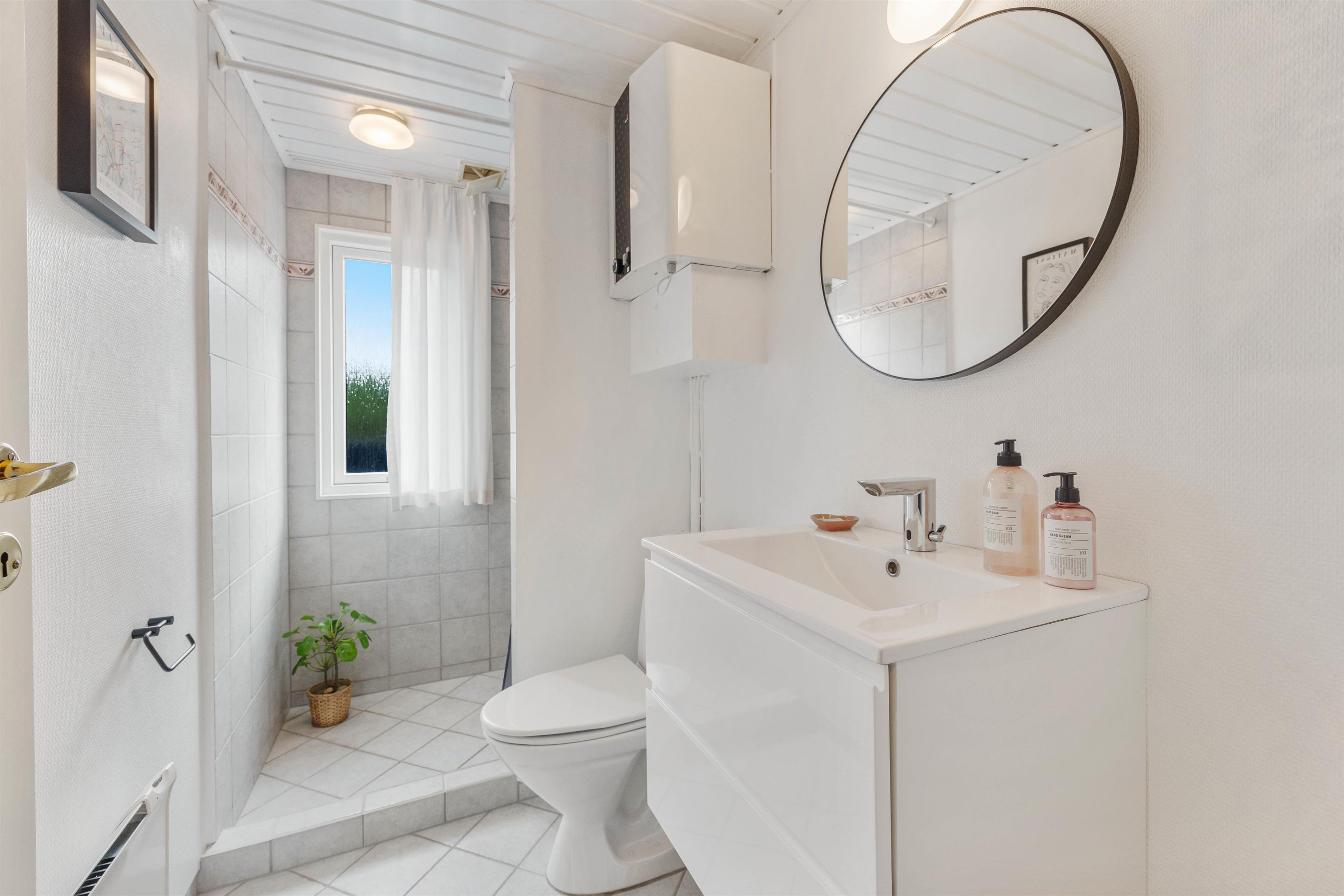 Når I kommer hjem fra en tur på stranden, der ligger 850 meter fra huset, kan det sidste sand skylles af i udebruseren. Denne kan benyttes fra april til november. Der er både åben, afskærmet og lukket terrasse at hygge sig på, når der for eksempel skal grilles. Eller hvis man bare skal dase i havemøblerne og på solvognene, alt imens kan børnene hygge sig med leg på trampolinen eller tage sig en gyngetur.