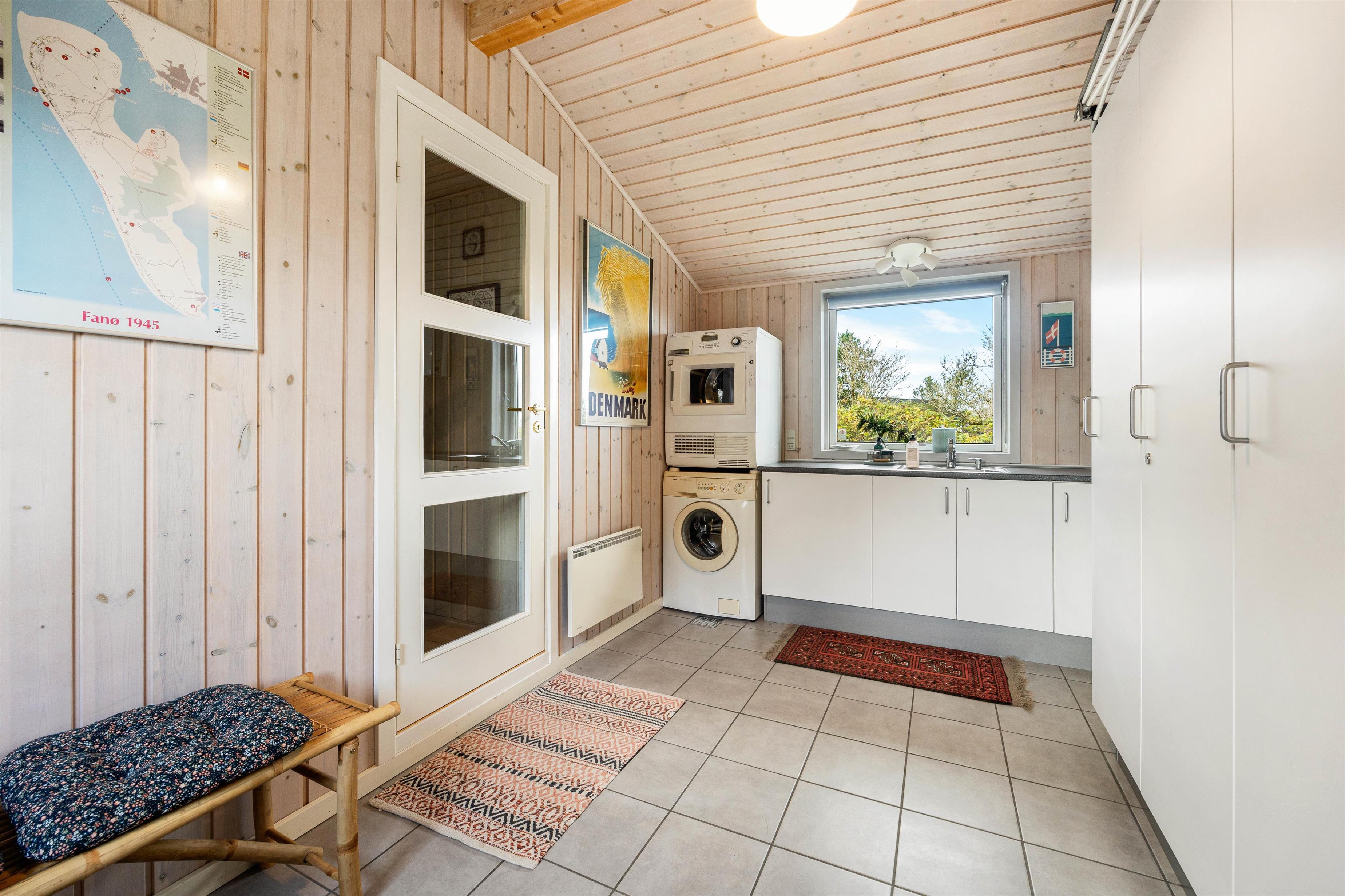 I det klassiske feriehus på Store Klit 65 oser der af hygge og afslapning, her kan I nyde hinandens samvær i køkkenalrummet med sofahjørne og hvilestole foran den knitrende brændeovn, mens der laves mad i køkkenet. På badeværelset er der gulvvarme, og der er også praktiske faciliteter som vaskemaskine og tørretumbler ude i bryggerset.