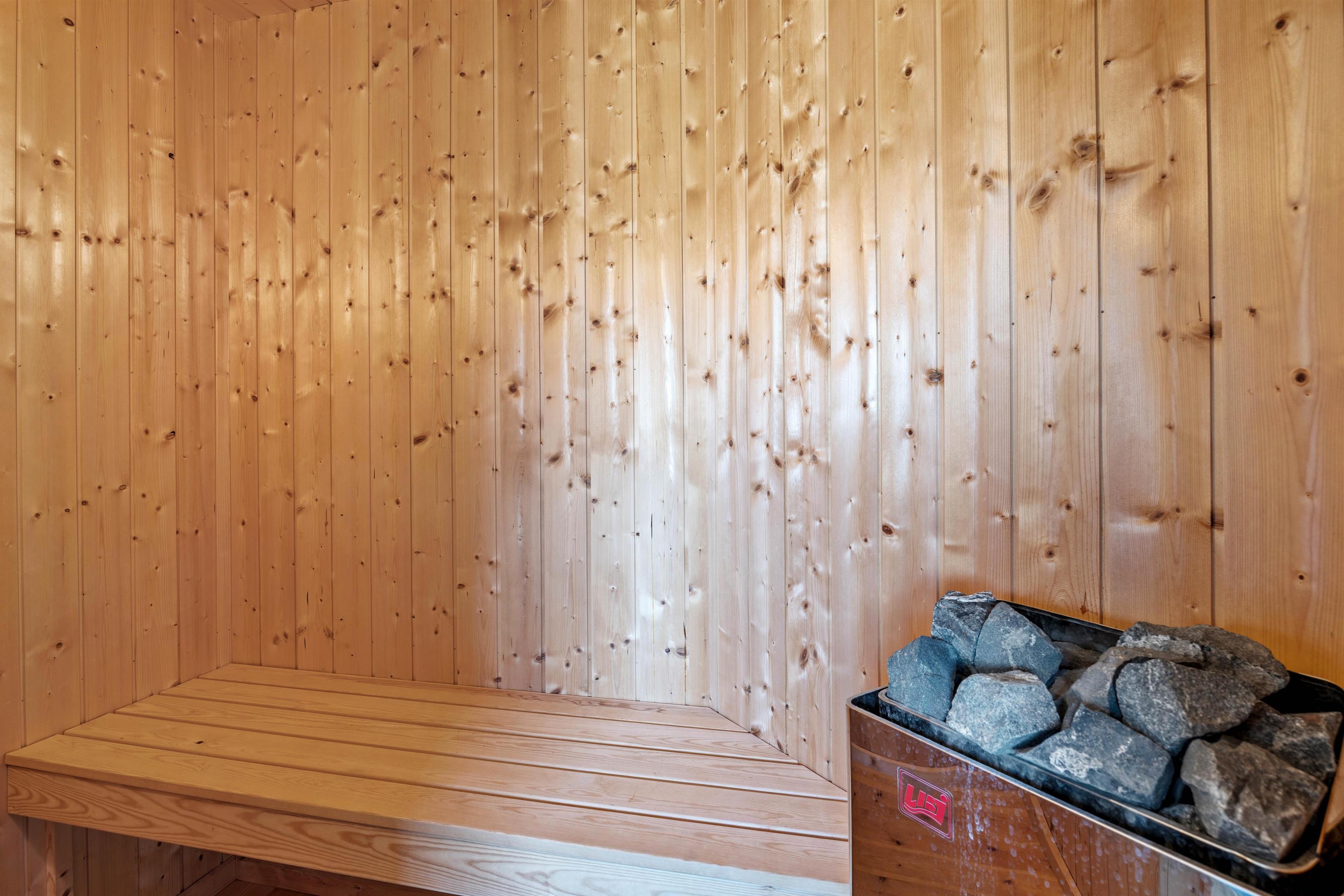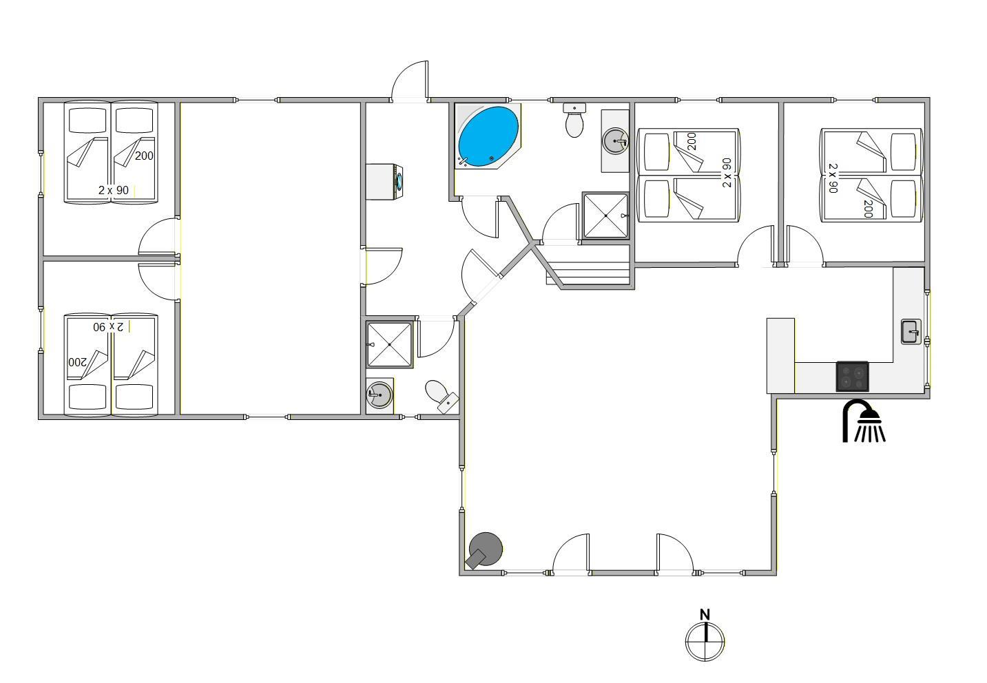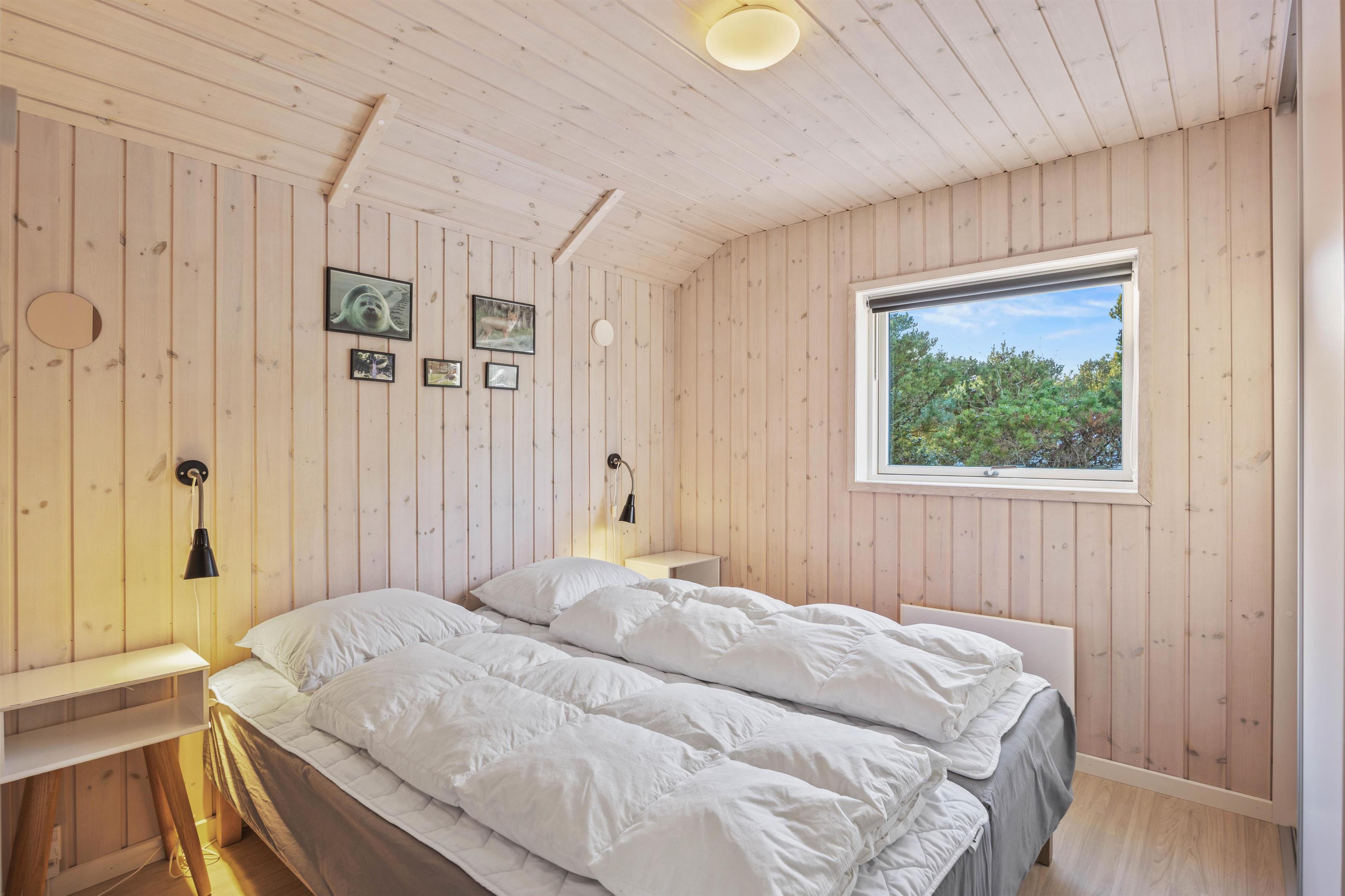 Feriehuset har 4 soveværelser med 4 dobbeltsenge, bestående af i alt 8 enkeltsenge, dertil hems med 3 børnesovepladser, og sommerhuset har 2 badeværelser – begge med gulvvarme. Til afslappende stunder er der både sauna og et spabad til rådighed. Køkkenet indeholder alt, hvad I behøver for at forkæle hinanden med lækre hjemmelavede måltider, herunder induktionskomfur og opvaskemaskine og vinkøleskab. Der er også vaskemaskine og tørretumbler i feriehuset, hvis I får brug for det. Som et ekstra plus har feriehuset et aktivitetsrum med billardbord, bordtennis, elektronisk dart og stort TV mv, der står til jeres rådighed.