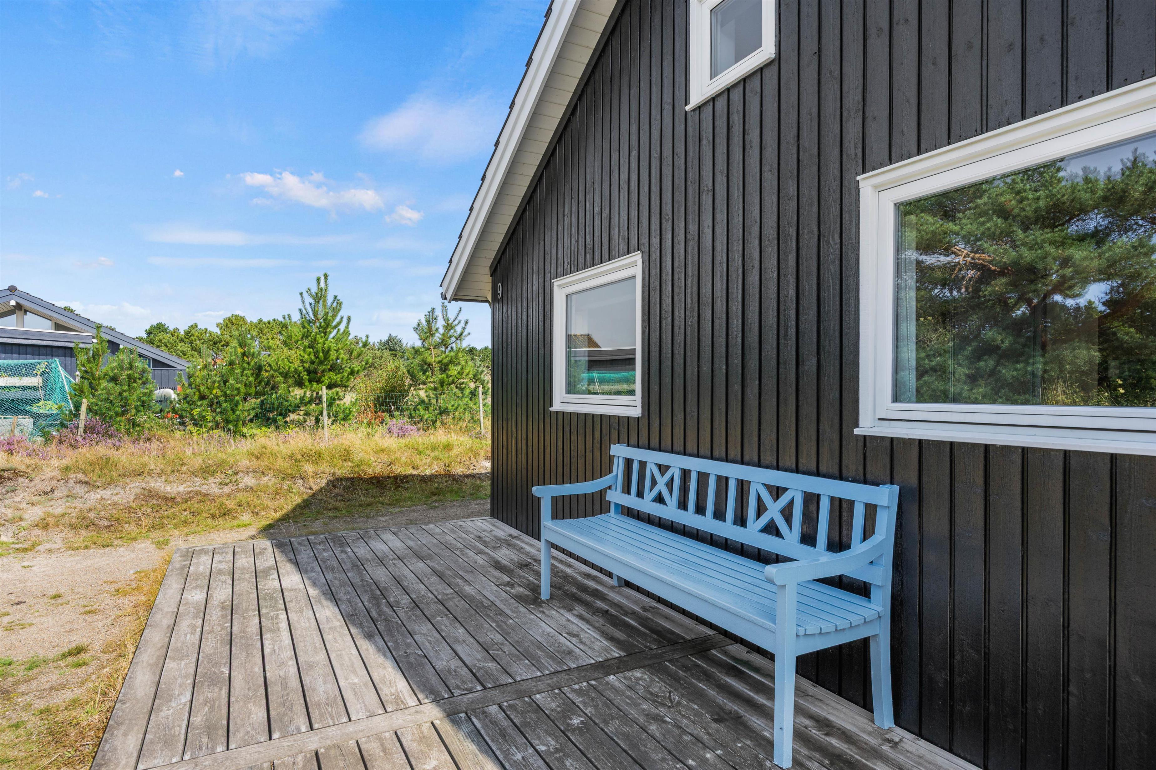 Udenfor kan der leges på trampolinen eller gyngen, og I kan nyde den friske vesterhavsluft på terrassen. Der findes tillige en stor udendørs bruser (fra april - november). Feriehuset er hundevenligt, så jeres firbenede venner også kan nyde naturen omkring ejendommen og efter en kort gåtur, når I den brede sandstrand, der indbyder til mange timer ved Vesterhavet i bølgerne blå eller langs strandkanten - eller en vandretur på en af de mange naturstier på Fanø.