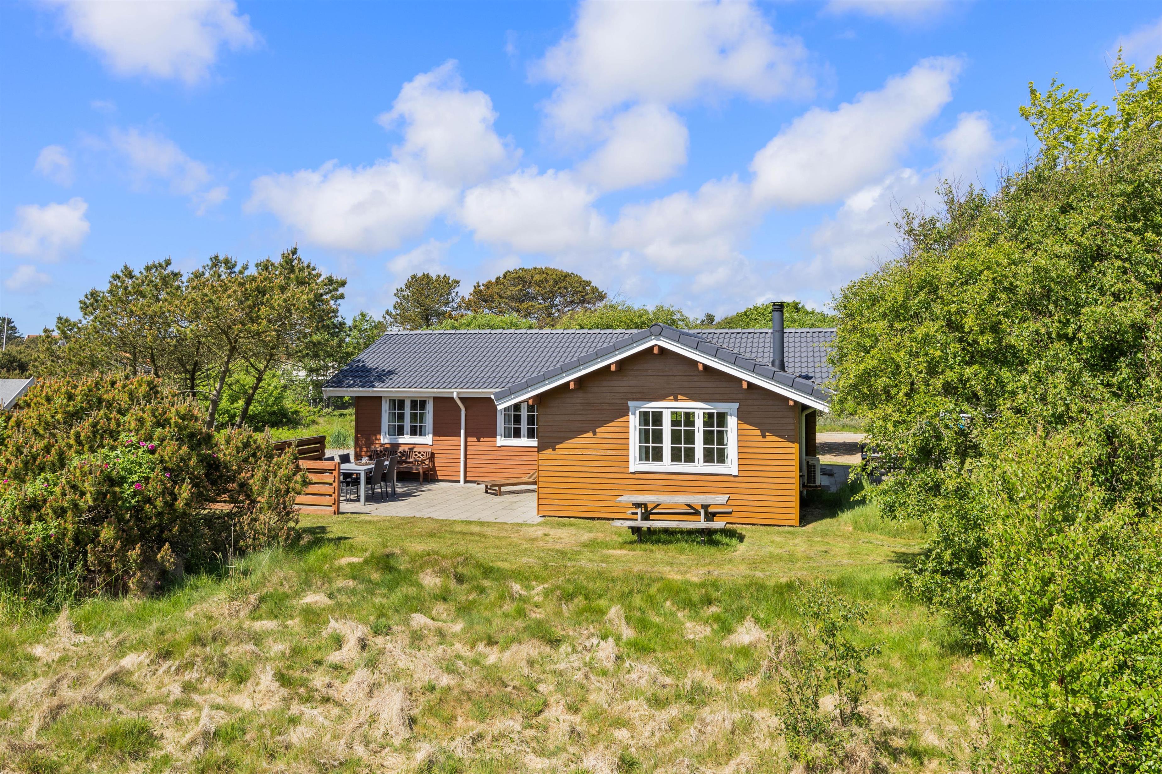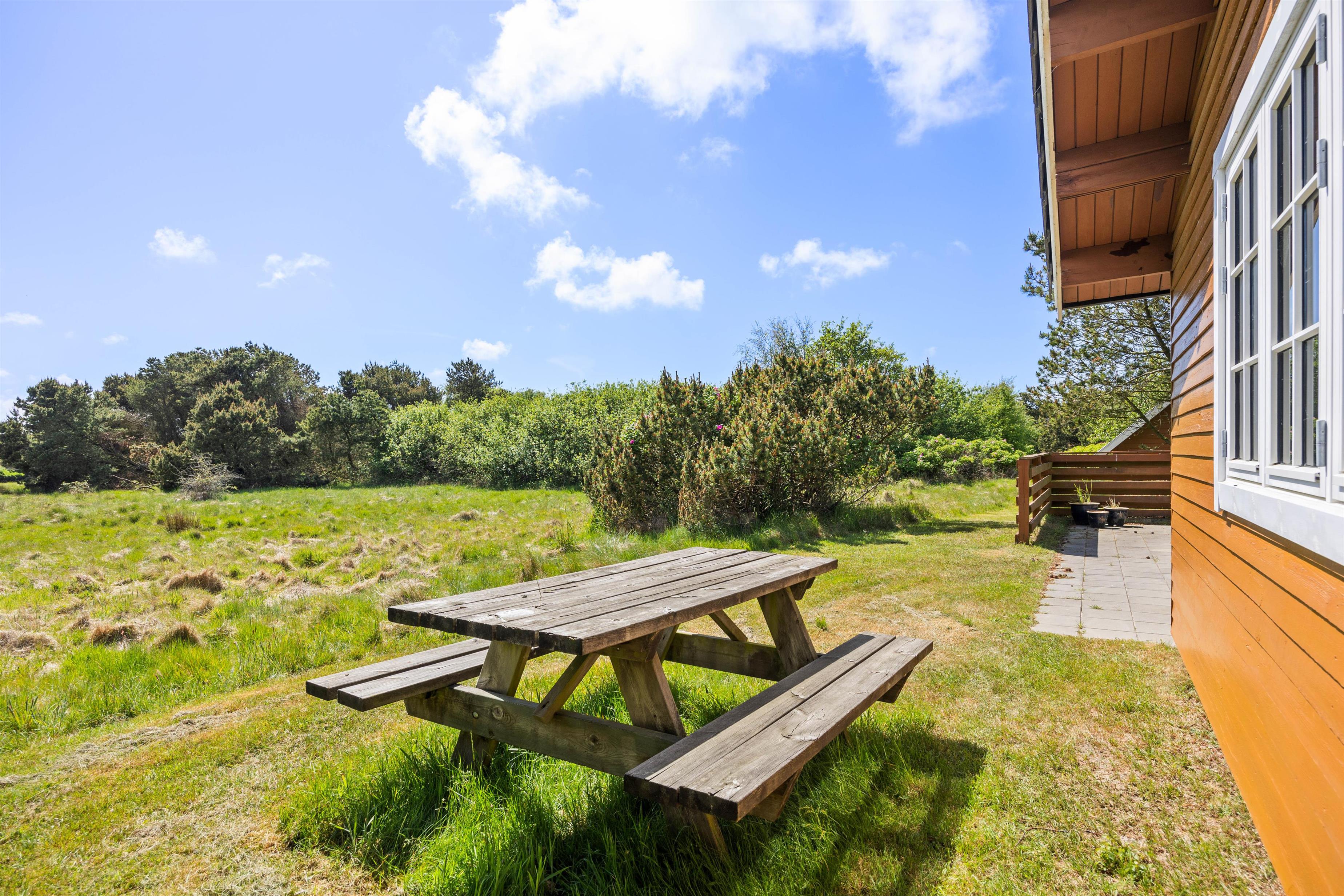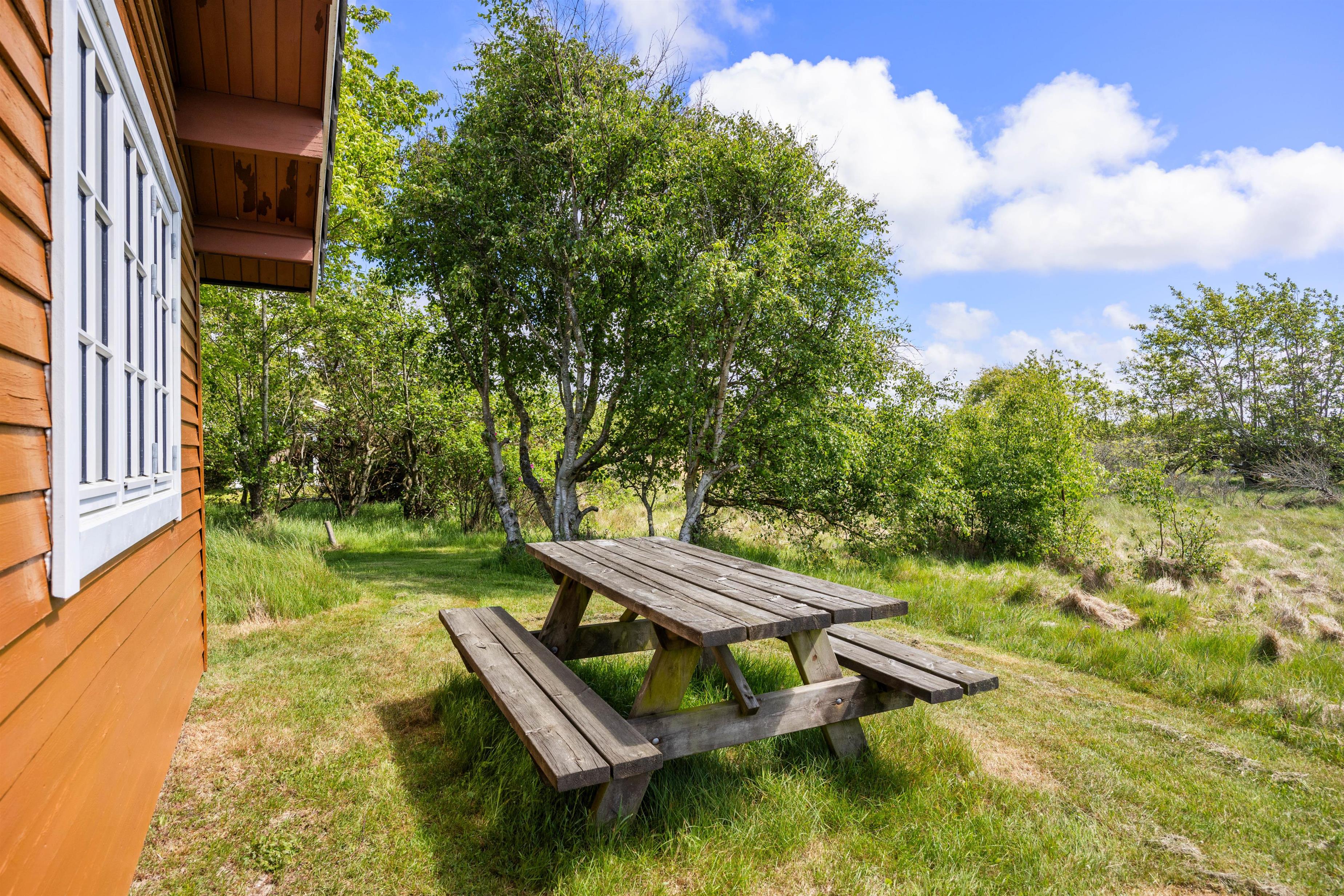 Når solen går ned, er terrassen det perfekte sted at nyde de smukke farver på himlen eller bare finde ro i naturens lyde. Det store naturgrundstykke omkring sommerhuset giver masser af plads til leg for børnene og skaber en følelse af privatliv og frihed.