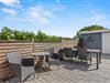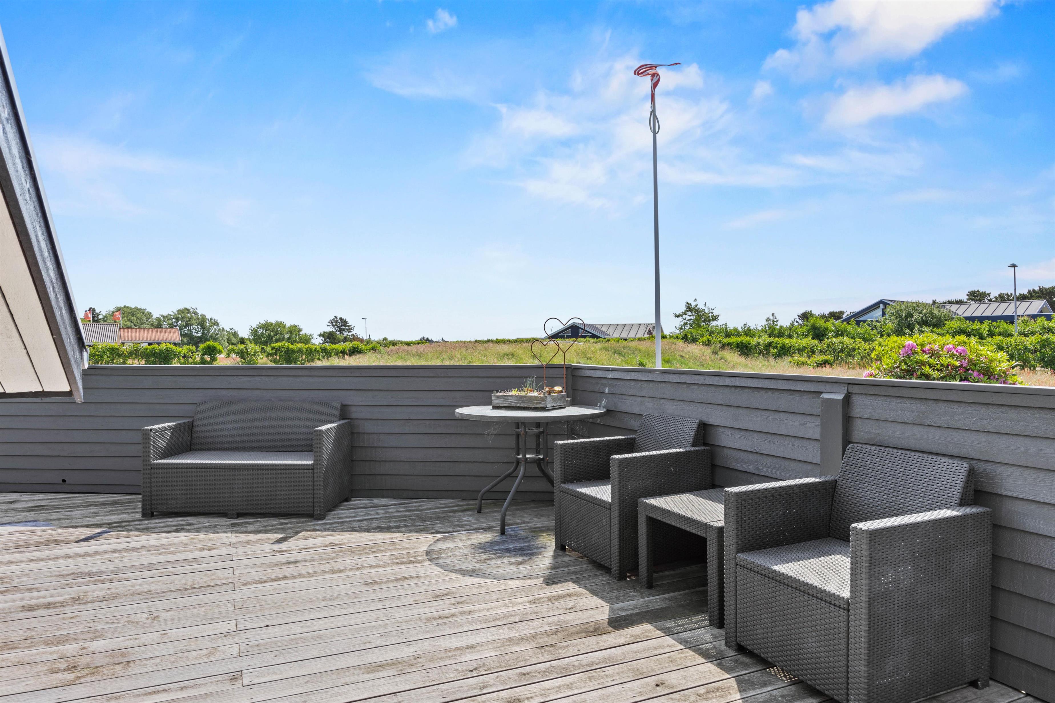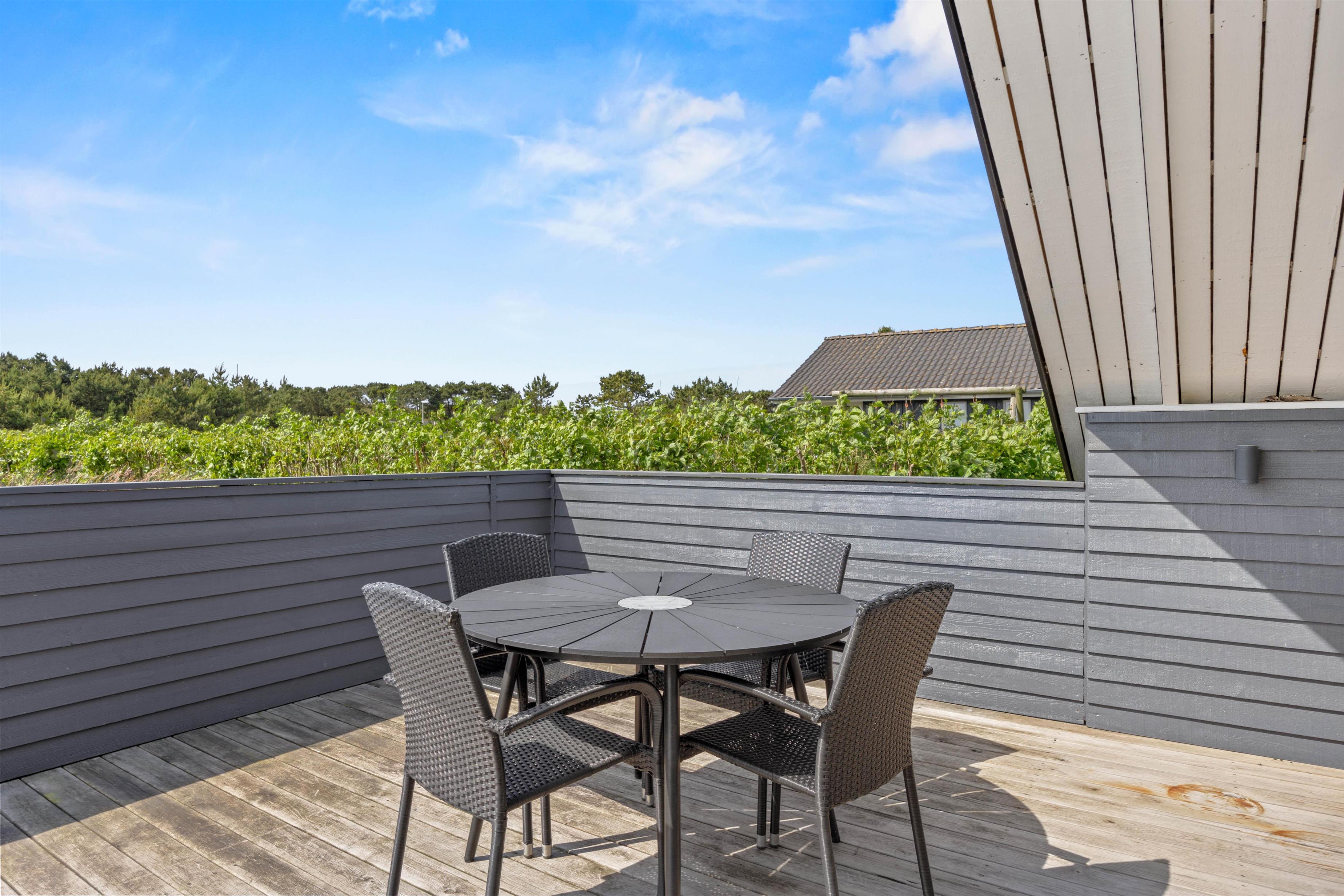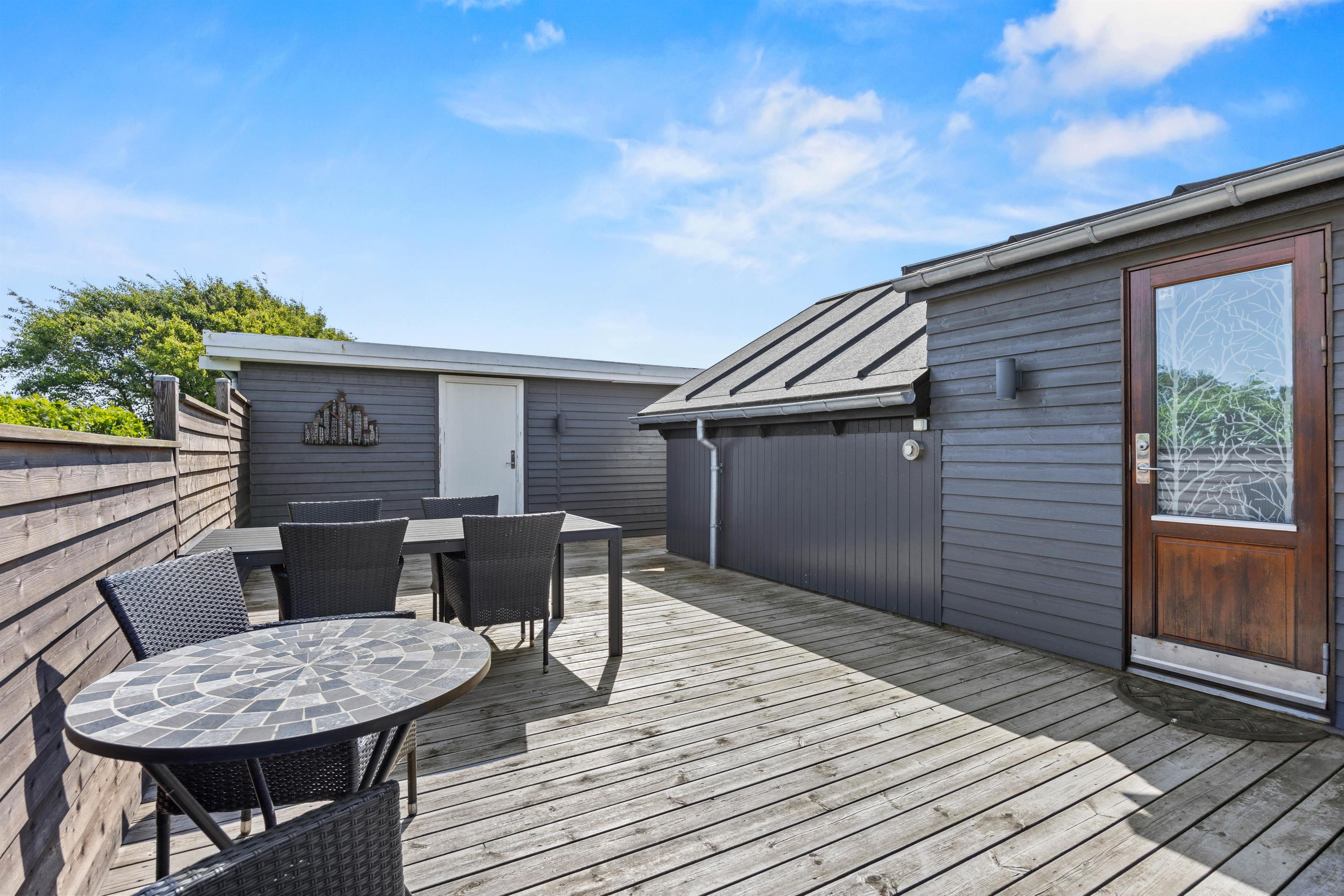 En dejlig dag i det fri er oplagt at nyde på feriehusets terrasser. Terrasserne varierer med både åbne, overdækkede og lukkede områder med læhegn og ”privatliv” alt efter behov.