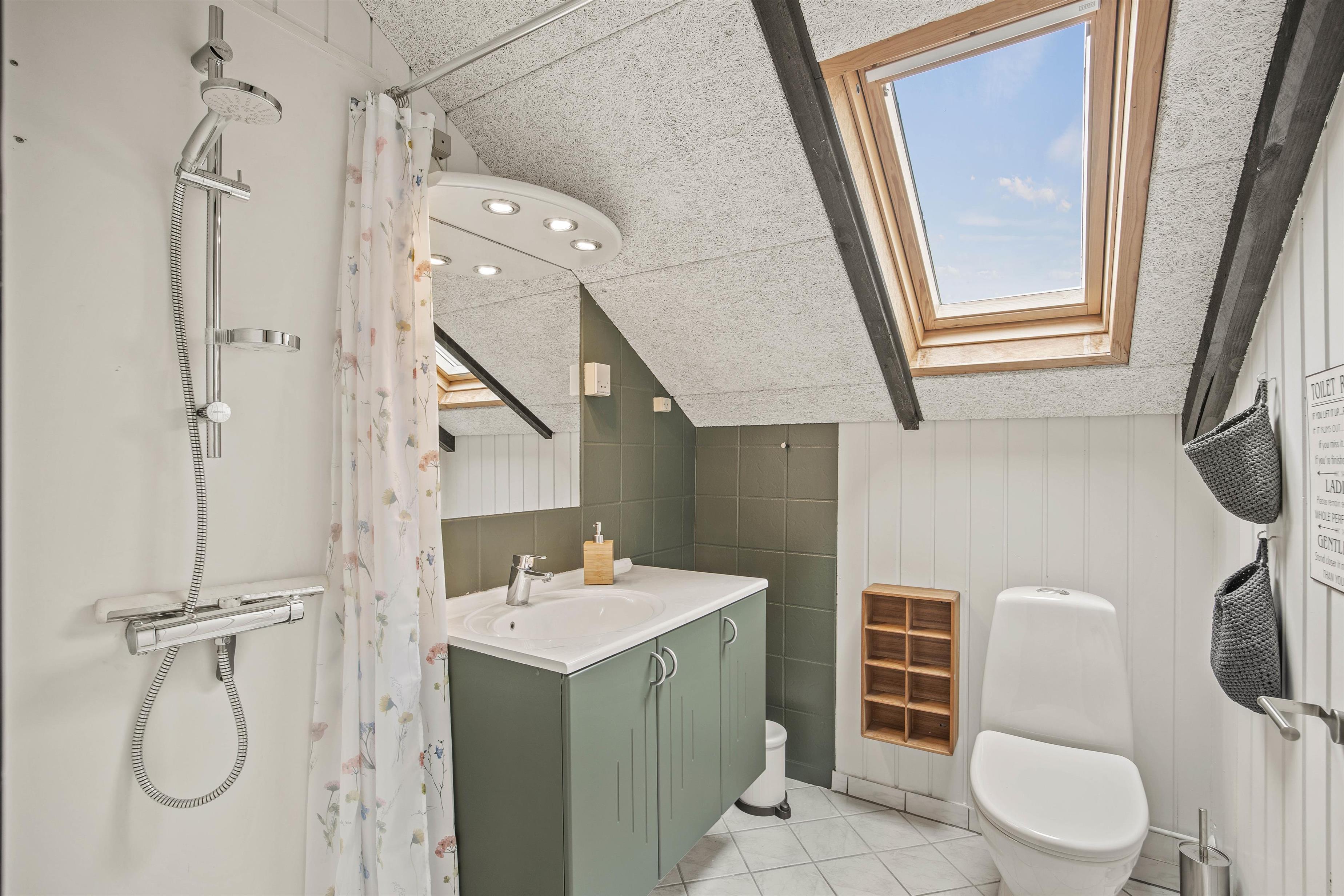 Feriehuset har desuden 2 badeværelser – begge med bruseniche og gulvvarme, samt vaskemaskine og tørretumbler, så de praktiske opgaver kan holdes på et minimum. Her er desuden en varmepumpe, der sørger for både energivenlig varme og et godt indeklima.