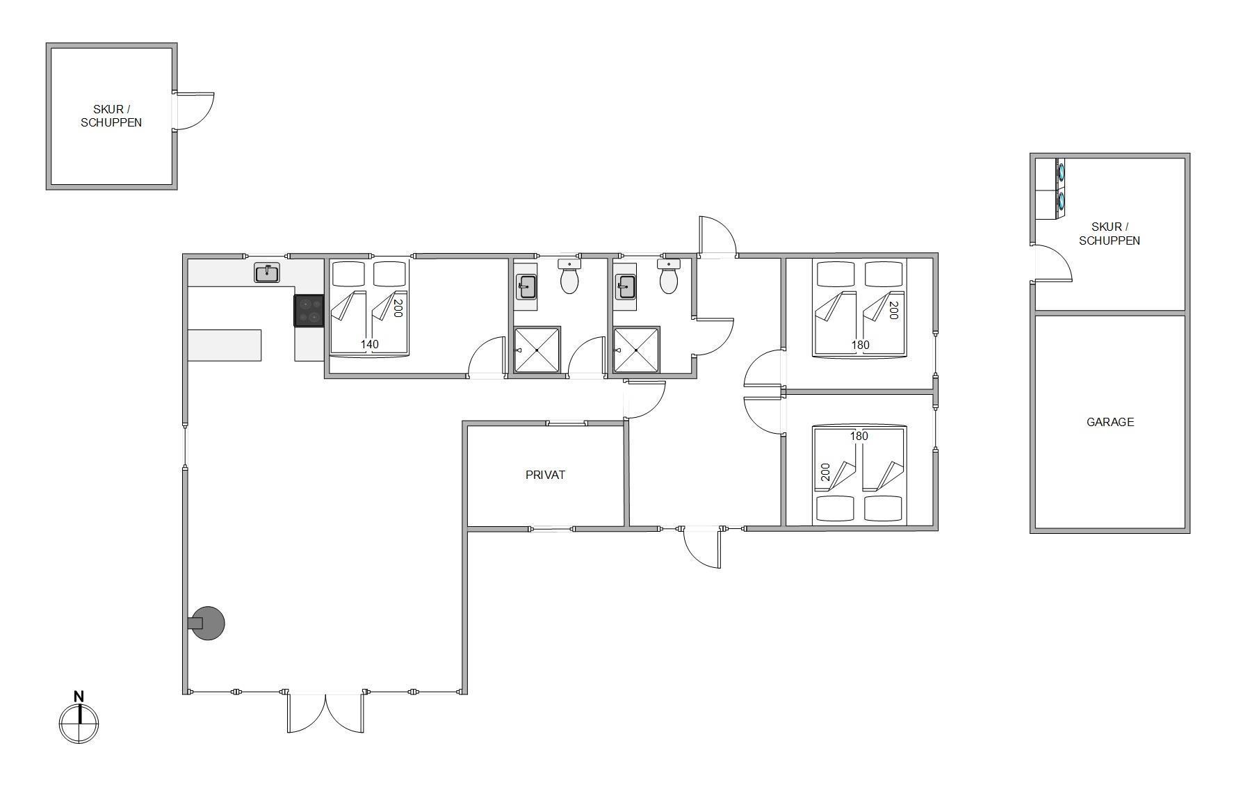 Når I bliver trætte og skal lade op til endnu en dejlig dag på Fanø, kan I søge mod de tre soveværelser der er indrettet med dobbeltsenge, hvoraf 2 senge måler 180x200cm og en dobbeltseng, der måler 140x200cm.