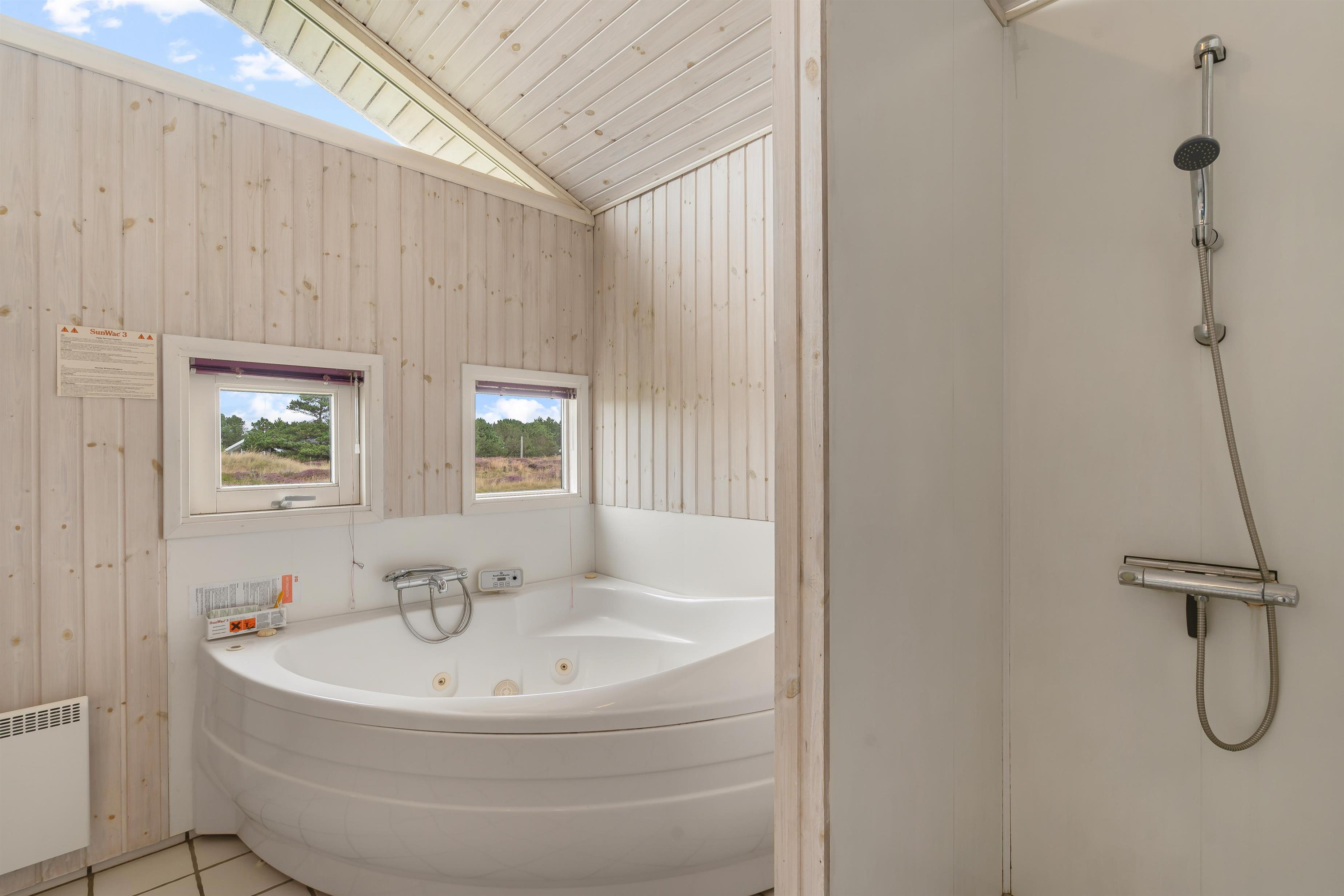 Feriehuset rummer 3 soverum, hvoraf 2 er med dobbeltseng og 1 med 2 enkeltsenge, samt et badeværelse med gulvvarme, bruseniche, sauna og spa – ideel til afslapning efter en spændende dag med udflugter i det omkringliggende landskab.