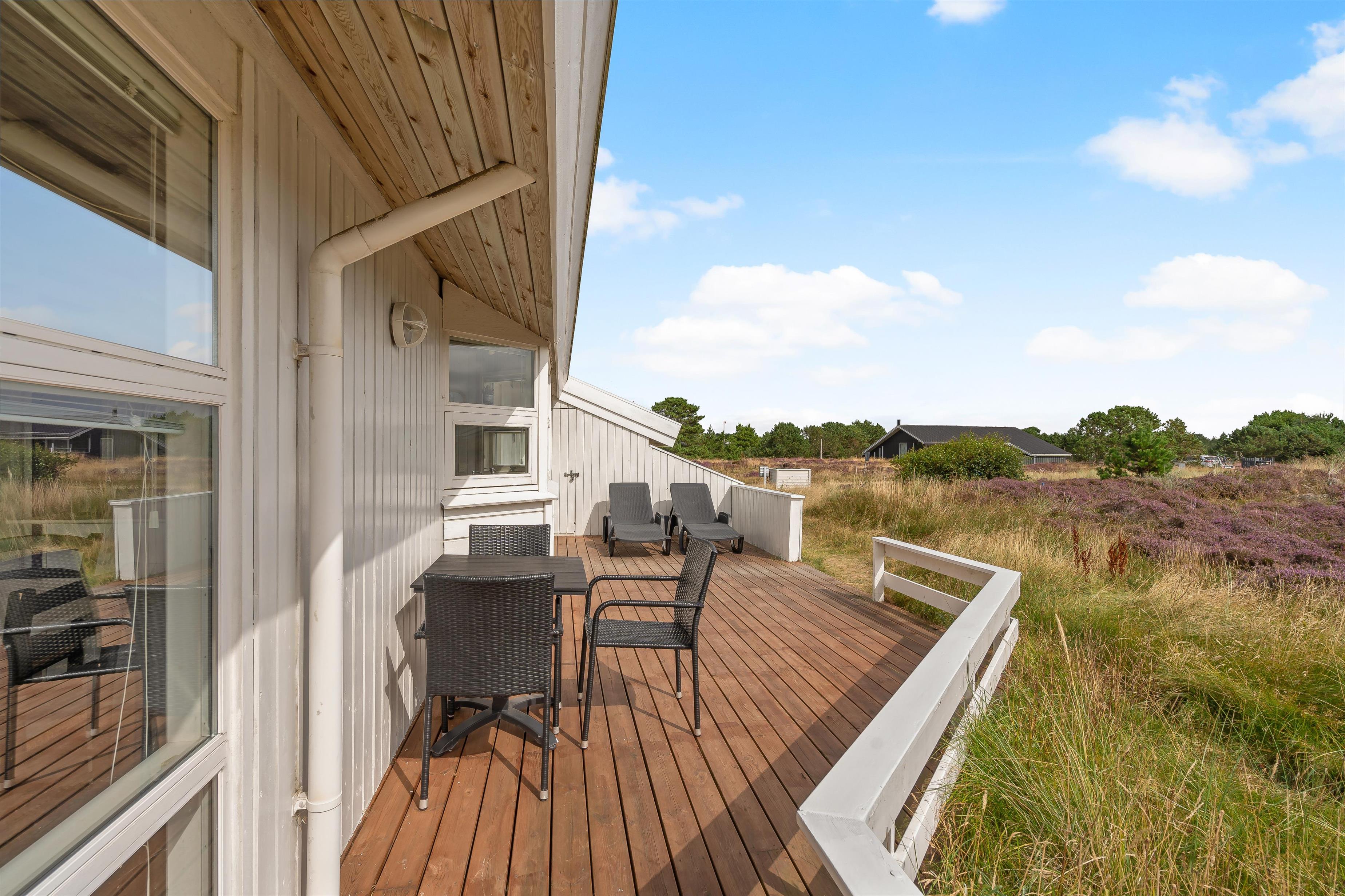 Feriehuset på Hedemarken 9 ligger godt på den 2500 m2 store kuperede naturgrund og har en terrasse, der løber omkring 2 sider af feriehuset på den sydøstlige side. Her står havemøbler, solvogne og en grill klar til at indbyde jer til hyggelige timer på terrassen.
