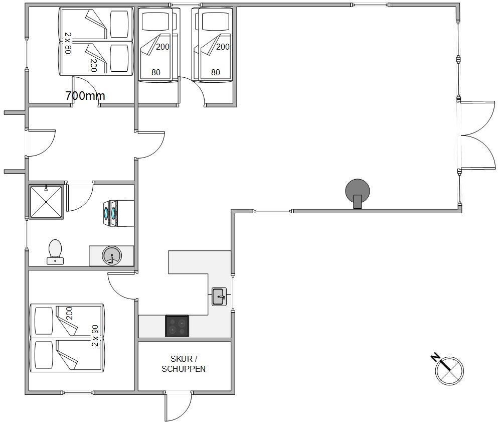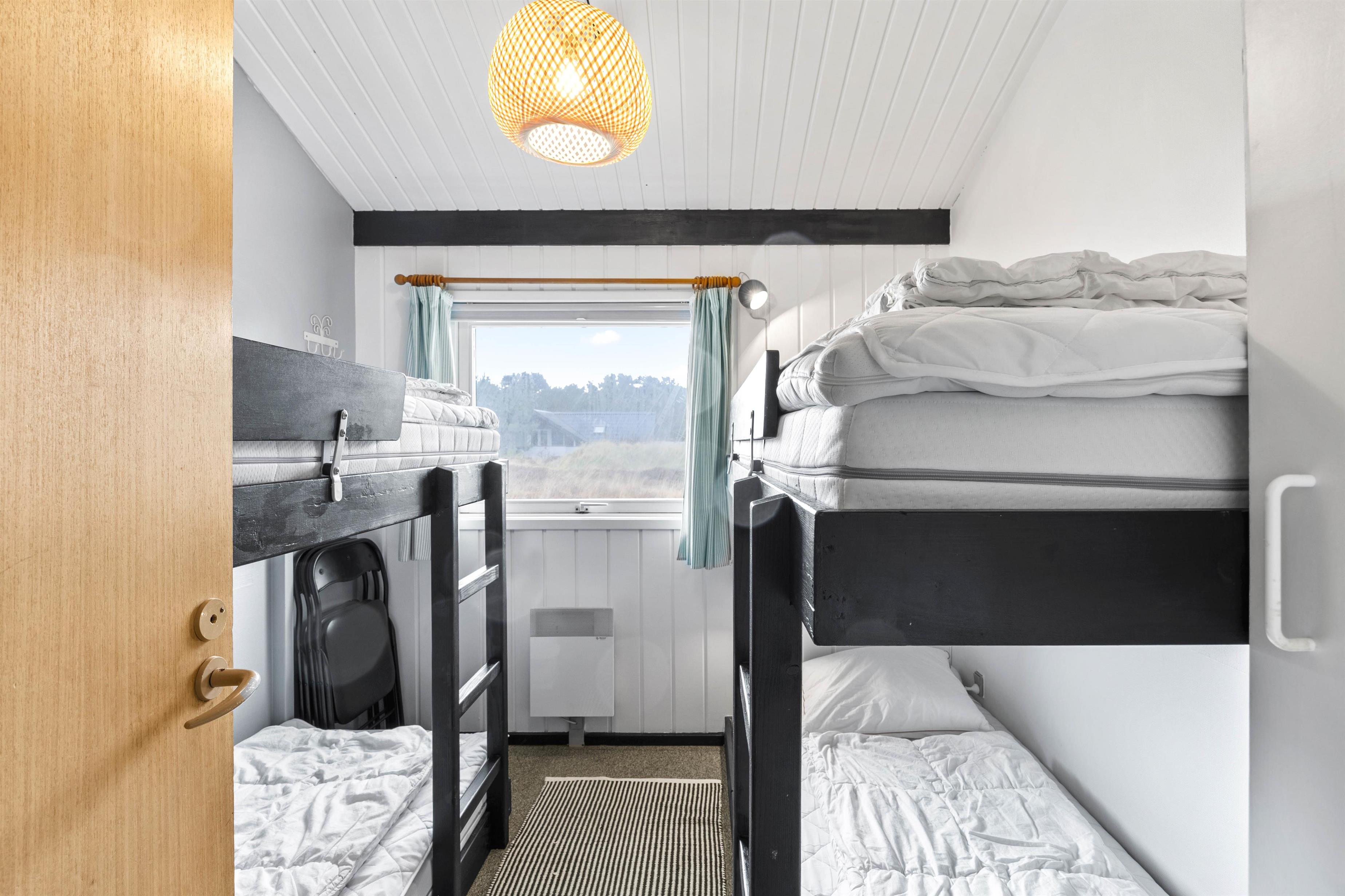 Efter en dejlig feriedag ved Vesterhavet har du mulighed for 2 soveværelser, hver med en dobbeltseng, og 1 soveværelse med 2 køjesenge (4 sovepladser) for at nyde nattesøvnen i det vestjyske. Sidstnævnte vil helt sikkert appellere til børnene.