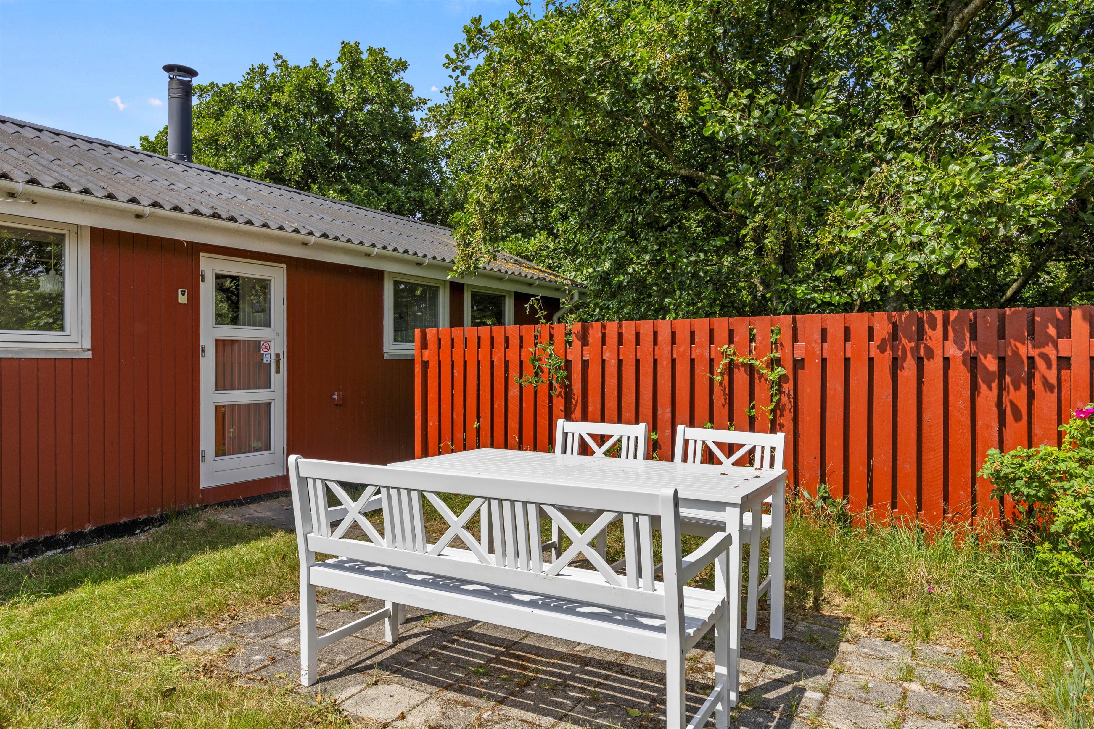 På Strandgårdsvej 7 finder I det røde, hyggelige sommerhus, idyllisk beliggende på en naturgrund med en lille sø. Her kan den lille familie nyde feriestemningen og følge årets gang i naturen. De 67 kvadratmeter er lyst og venligt indrettet med tre soverum og badeværelse med bruser. I stuen er der brændeovn og åbent køkkenområde med en bænkekrog samt en dejlig udestue. Fra udestuen har I den skønneste udsigt over søen, og her kan I hygge jer til langt ud på aftenen. Slutrengøring er inkluderet i prisen, så den behøver I ikke at bekymre jer om.