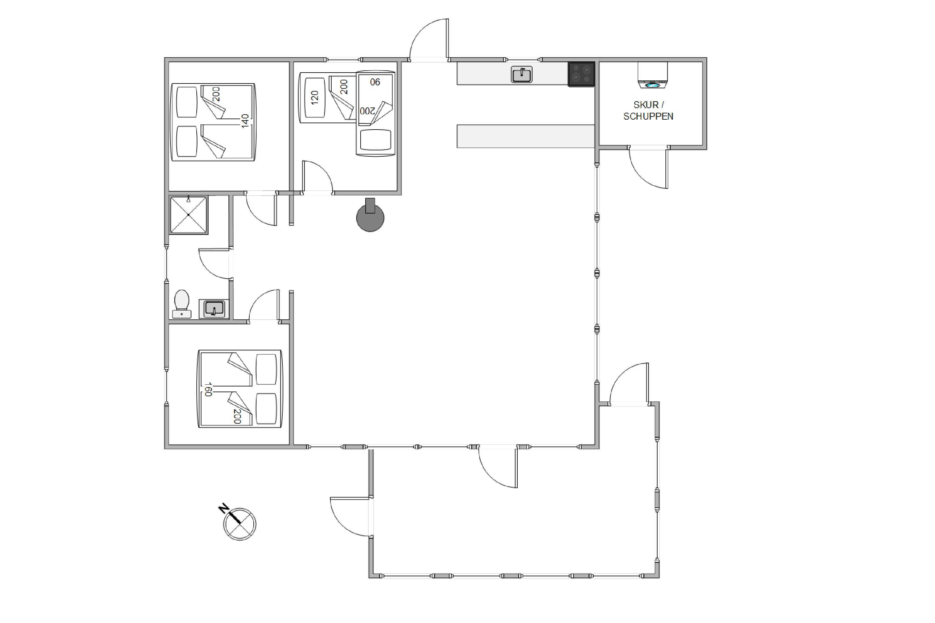 De 3 soveværelser har komfortable sovepladser til jer. Et soveværelse har en dobbeltseng på 160 x 200 cm, et andet en ¾-seng på 140 x 200 cm, og det sidste soveværelse har en enkeltseng på 90 x 200 cm samt en etageseng på samme størrelse. I kan således indrette jer fuldstændig, som det passer jer bedst. Der er vaskemaskine til jeres rådighed, så I kan opfriske garderoben og håndklæderne i løbet af ferien.