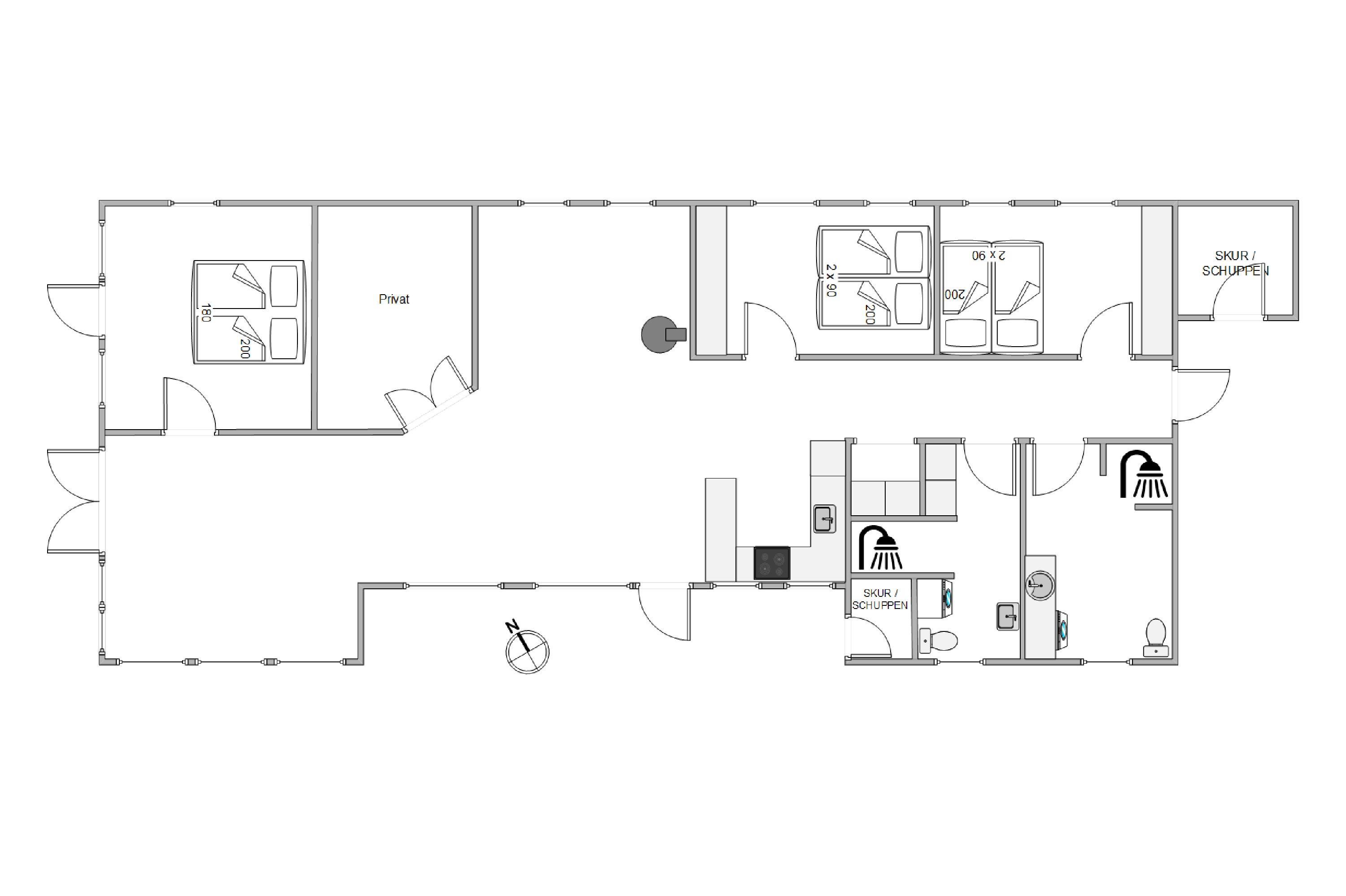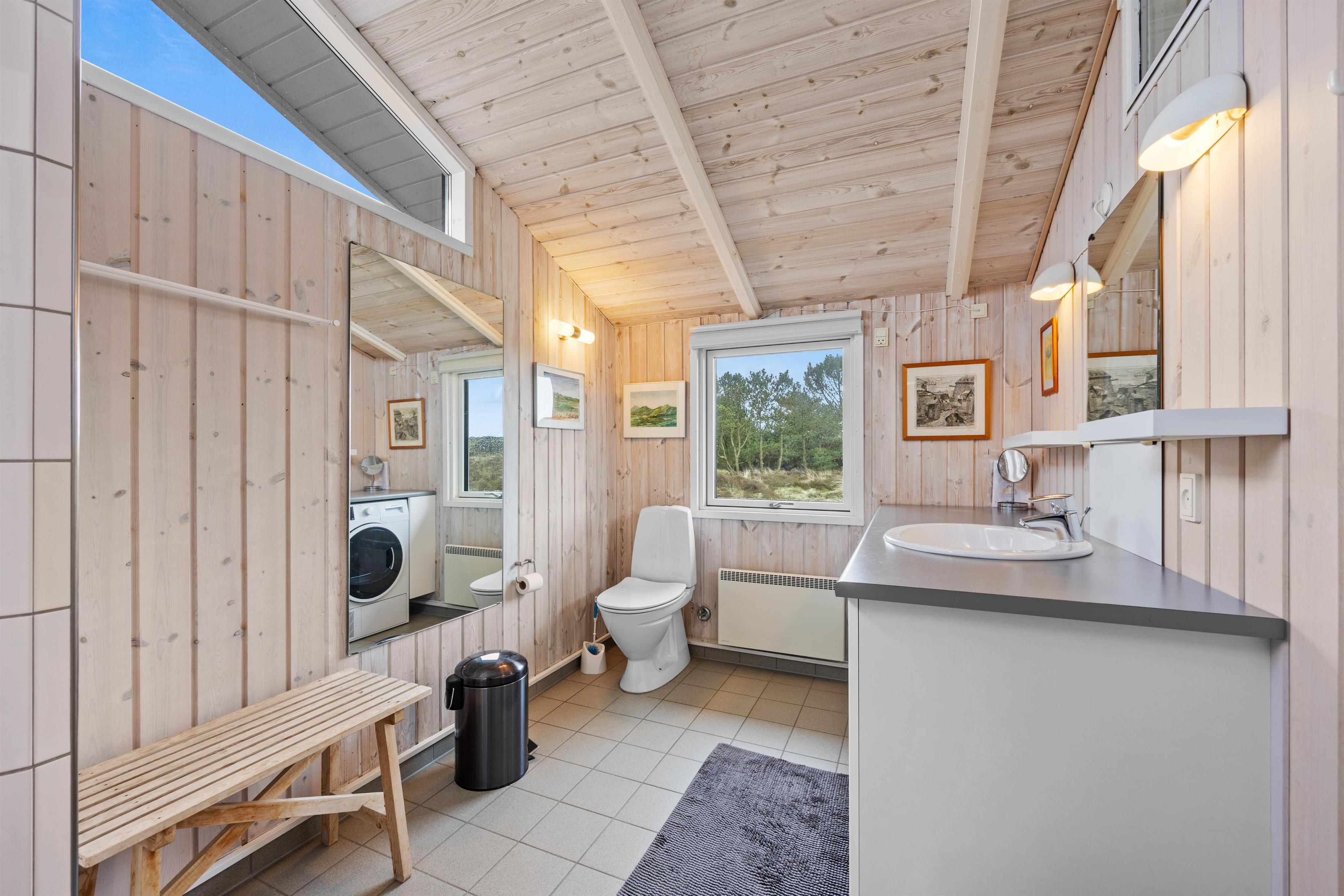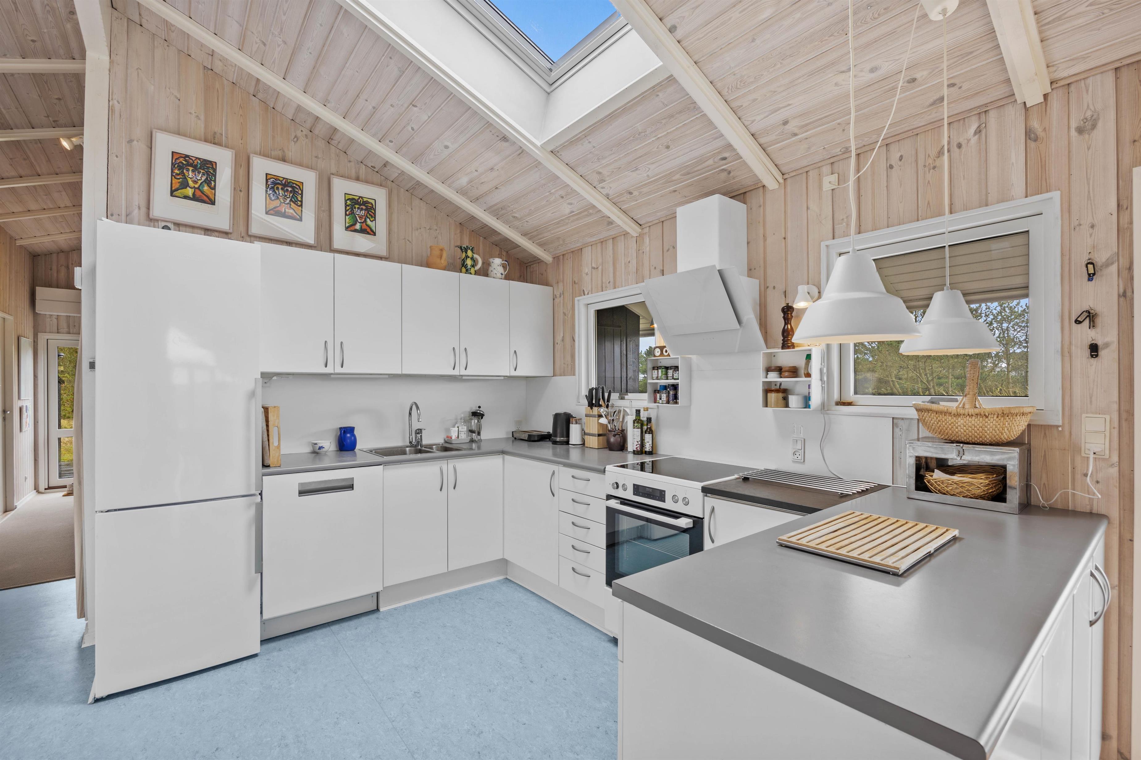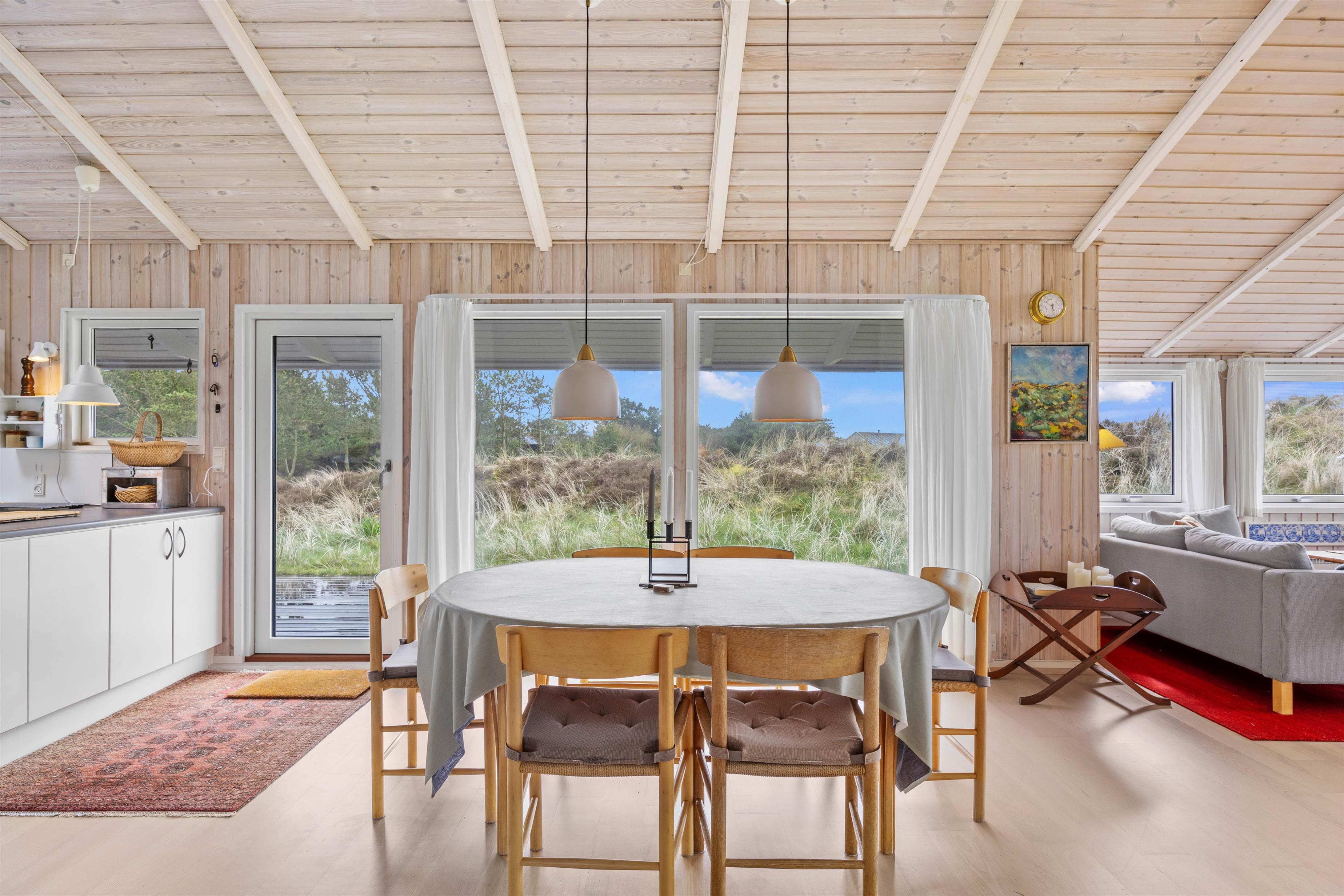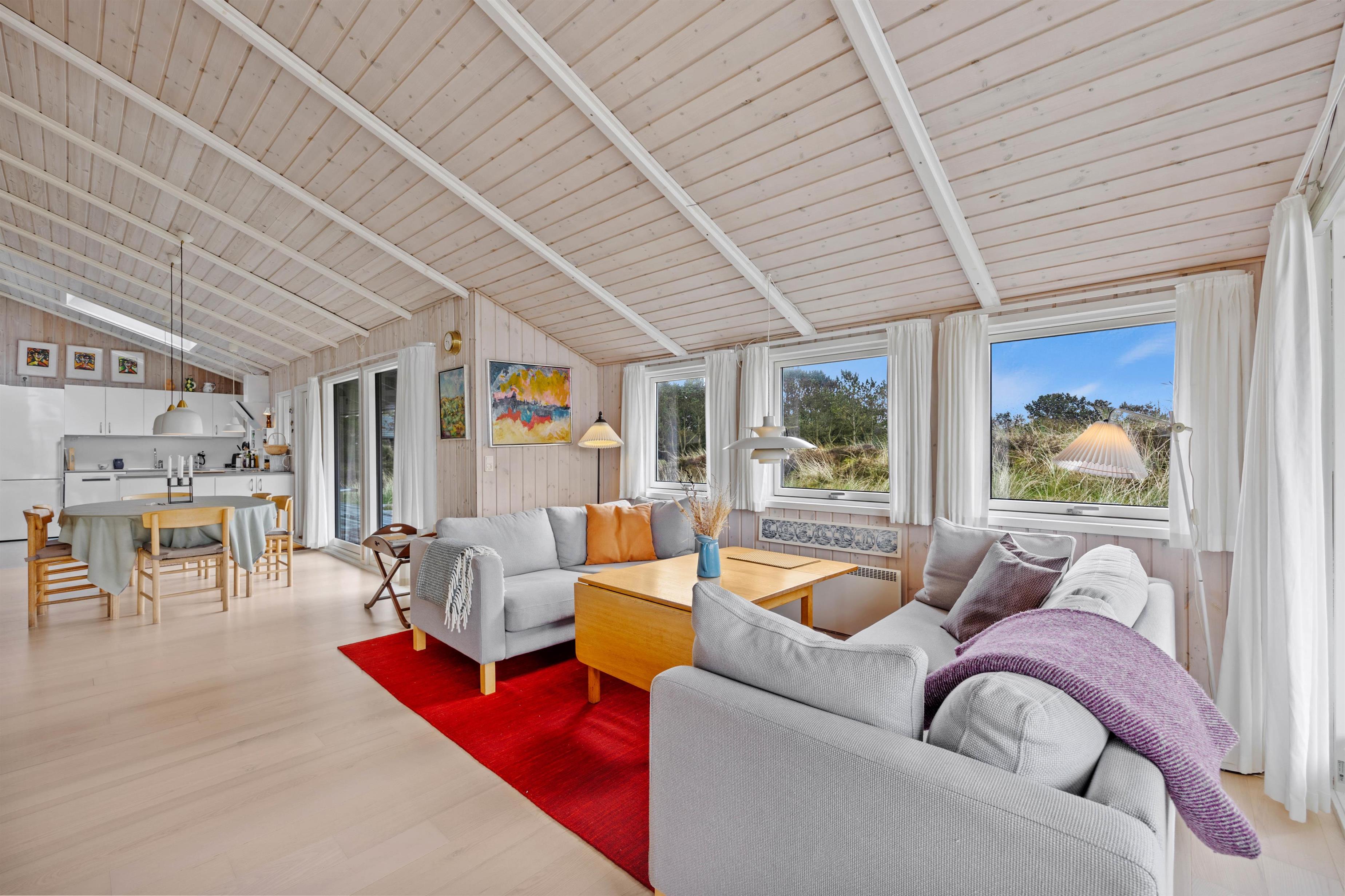 Træd ind i feriehuset og mærk straks den lyse indretning og hyggelige atmosfære sprede feriestemning. Den rummelige stue byder jer velkommen med en brændeovn, perfekt til kølige aftener og hyggelige stunder sammen. Med 3 smagfuldt indrettede soveværelser, alle udstyret med komfortable dobbeltsenge, samt 2 rummelige badeværelser med gulvvarme, er der rigeligt med plads til hele familien eller vennerne på feriehusets 138 velindrettede kvadratmeter. For at sikre jer en behagelig og bekvem ferieoplevelse er feriehuset udstyret med moderne faciliteter, herunder en opvaskemaskine, vaskemaskine og tørretumbler. Den omkostnings- og energibesparende varmepumpe sørger for behagelige temperaturer i feriehuset.