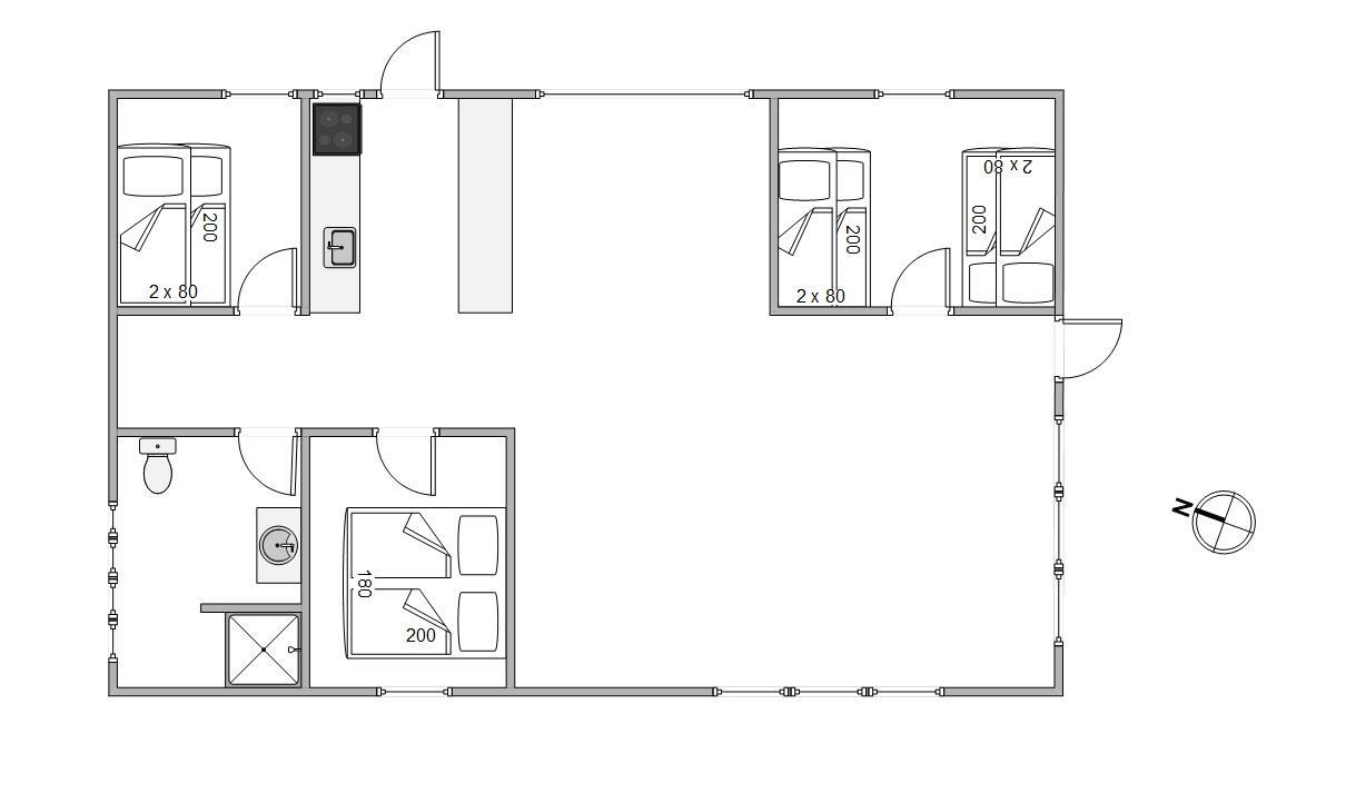 3. soverum/sengestørrelser4 x 80x200 køjeseng