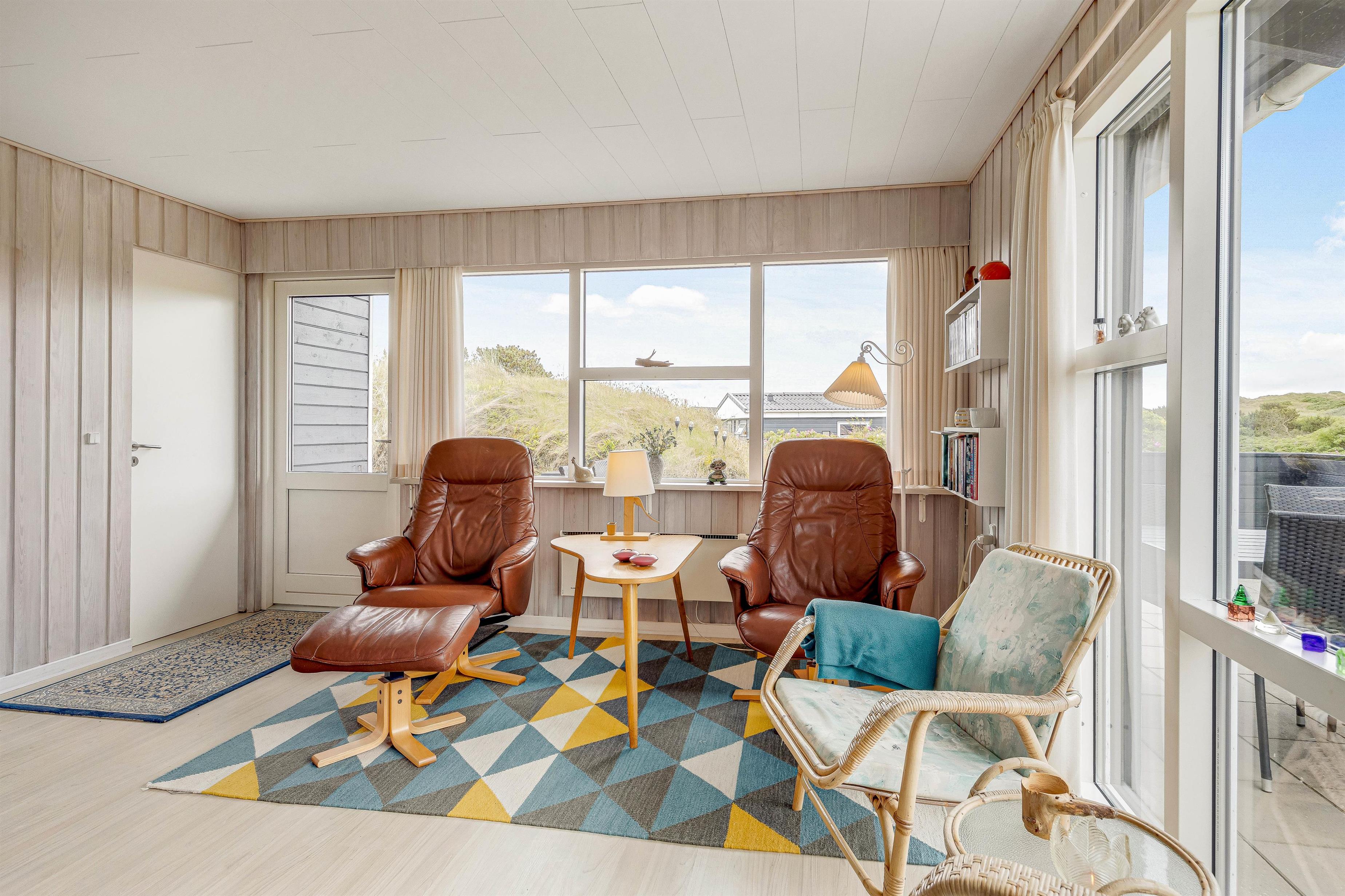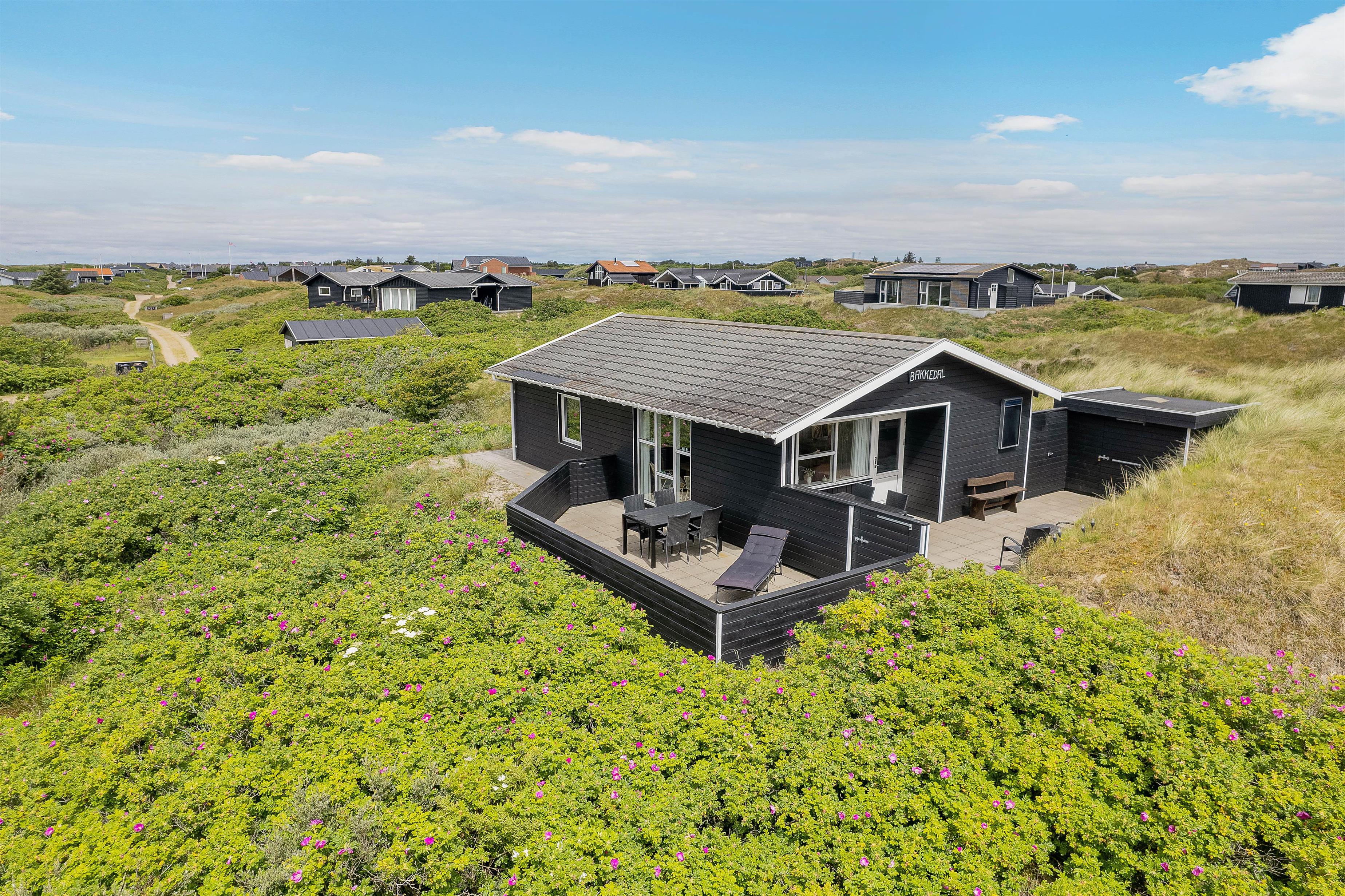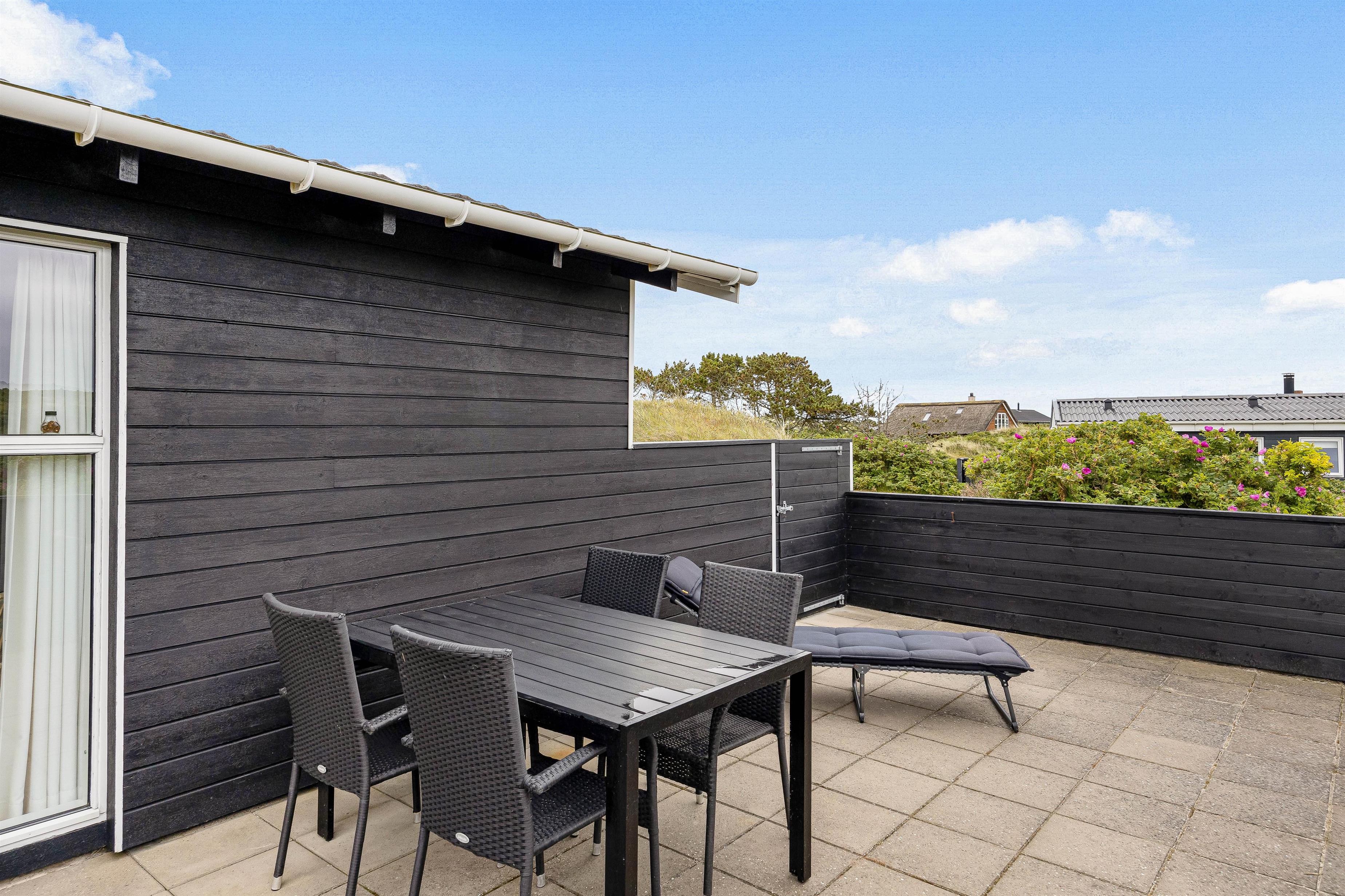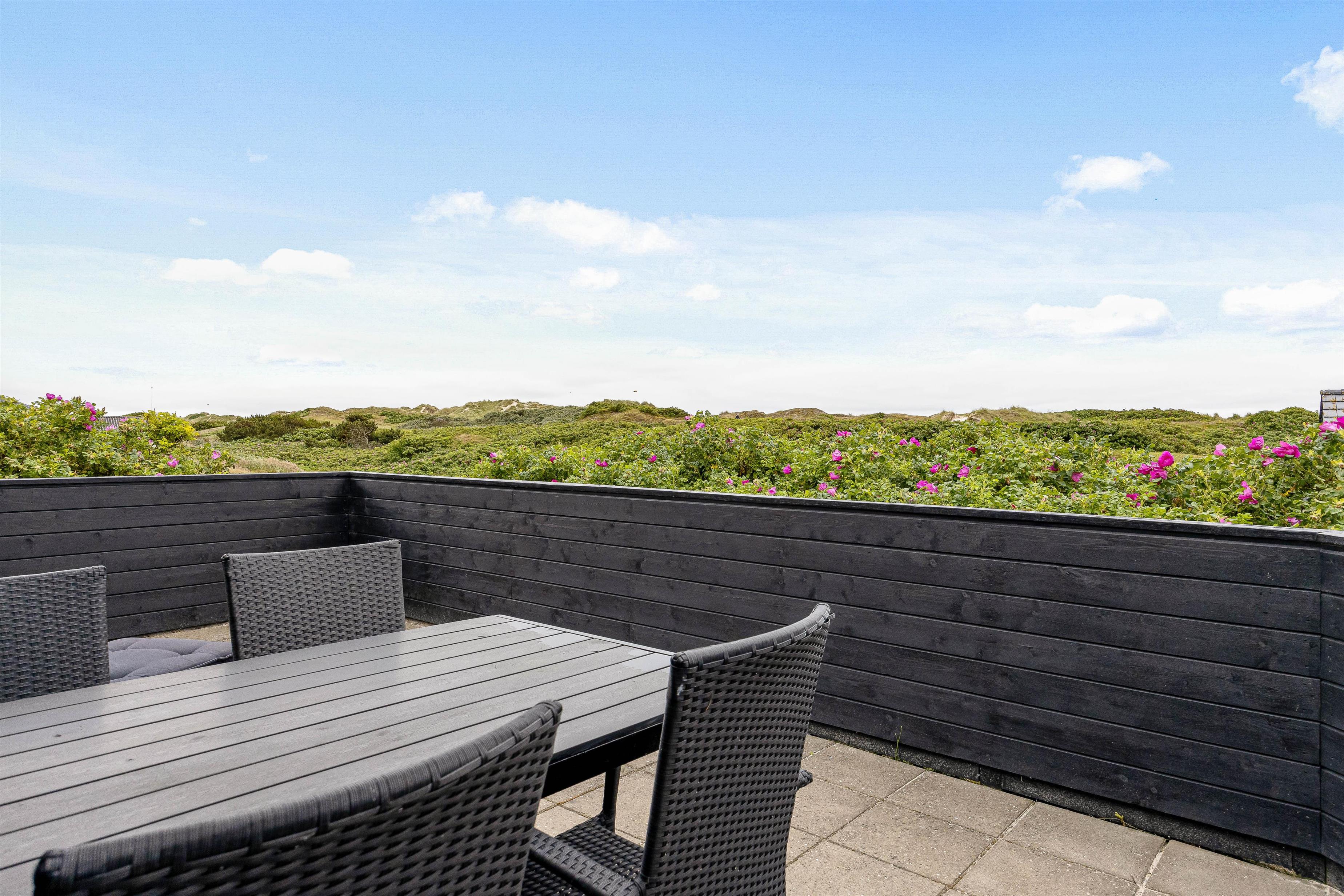 Omkring feriehuset er der lagt fliser, så I altid kan finde et godt sted at sidde med en spændende bog eller en god kop kaffe. Den vestvendte terrasse er endda lukket, så I trygt kan lade familiens mindste lege her. Læn jer tilbage i havemøbler eller solvogne og nyd den friske havluft og duften af klitroserne, der omkranser feriehuset. Når dag bliver til aften, kan I tænde op i grillen og slutte dagen af med en god bøf og et glas vin, mens næste dags aktiviteter planlægges.