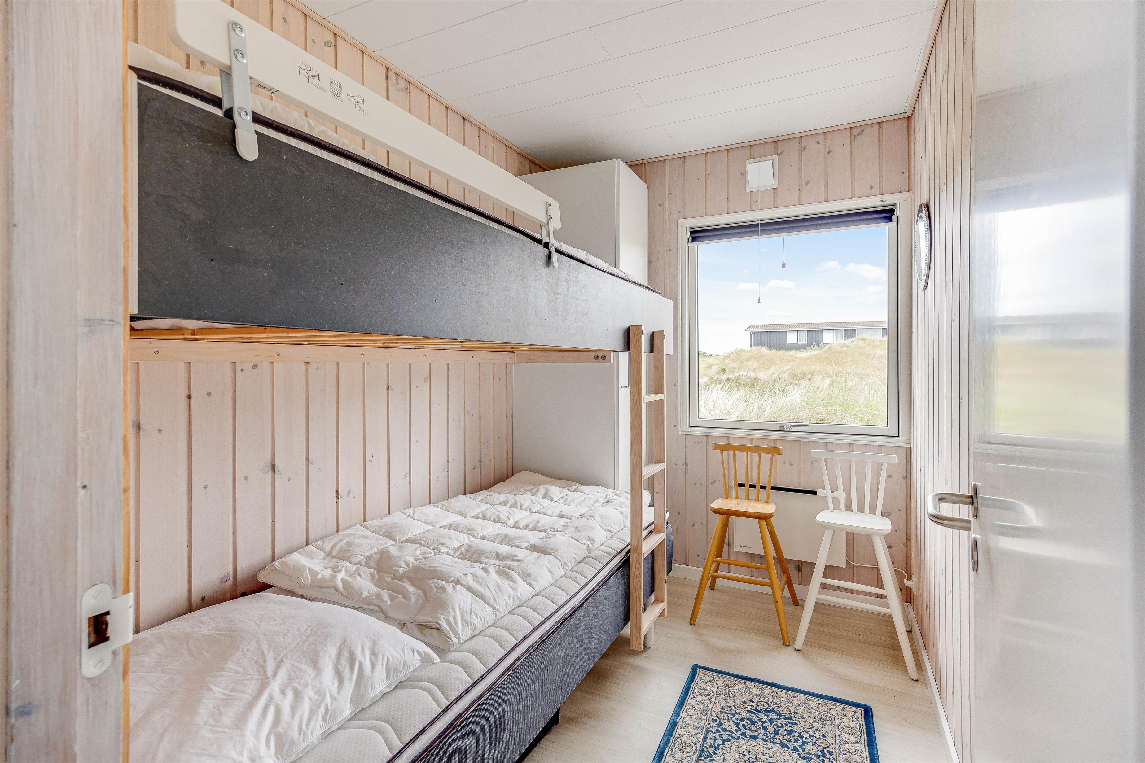 I får her 3 gode soveværelser med henholdsvis 1 dobbeltseng, 2 køjesenge og 1 køjeseng. Her er altså plads til, at børnene kan dele værelse eller sove hver for sig. Badeværelset er af nyere dato og er holdt i lyse materialer og med gulvvarme, så I aldrig får kolde fødder.