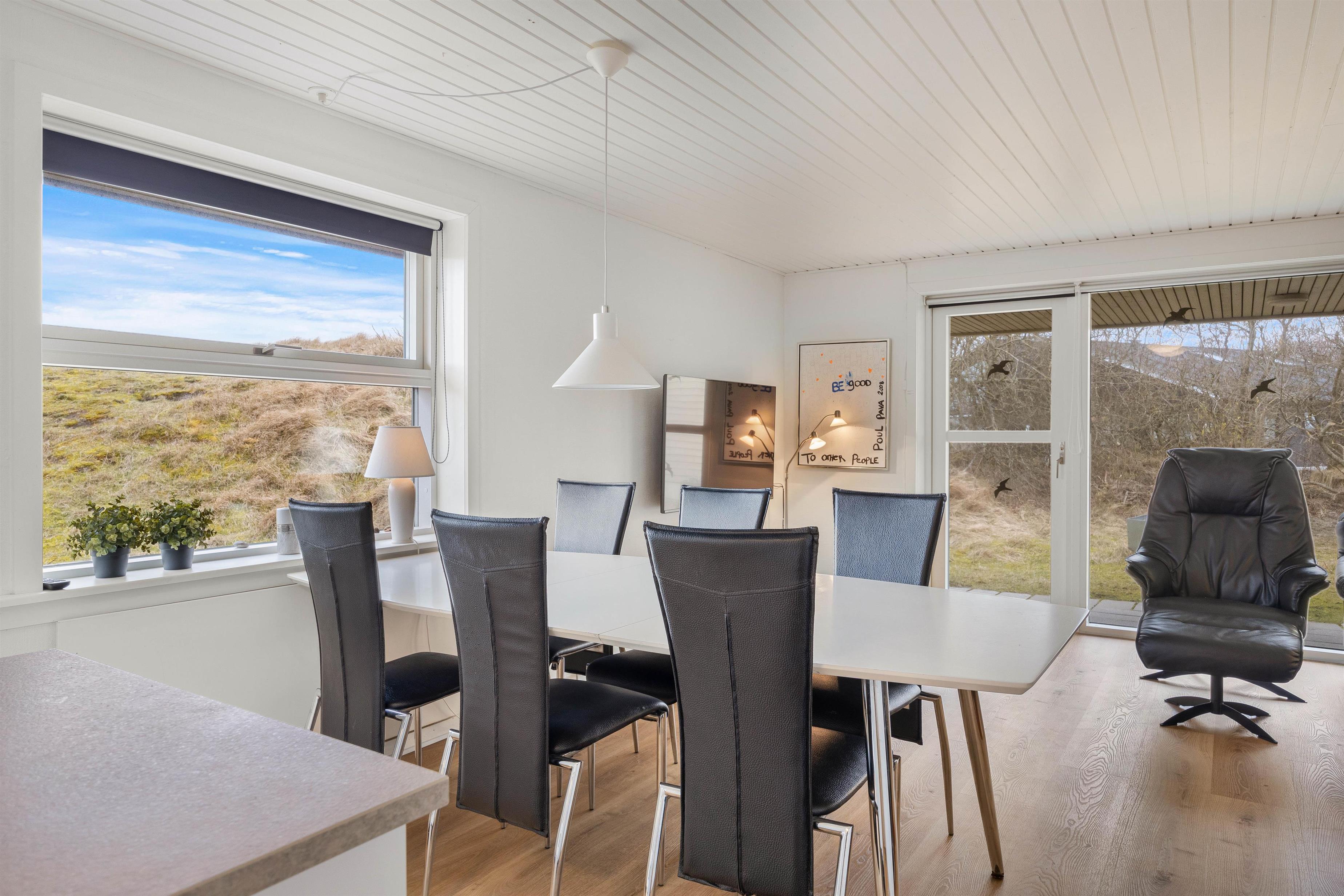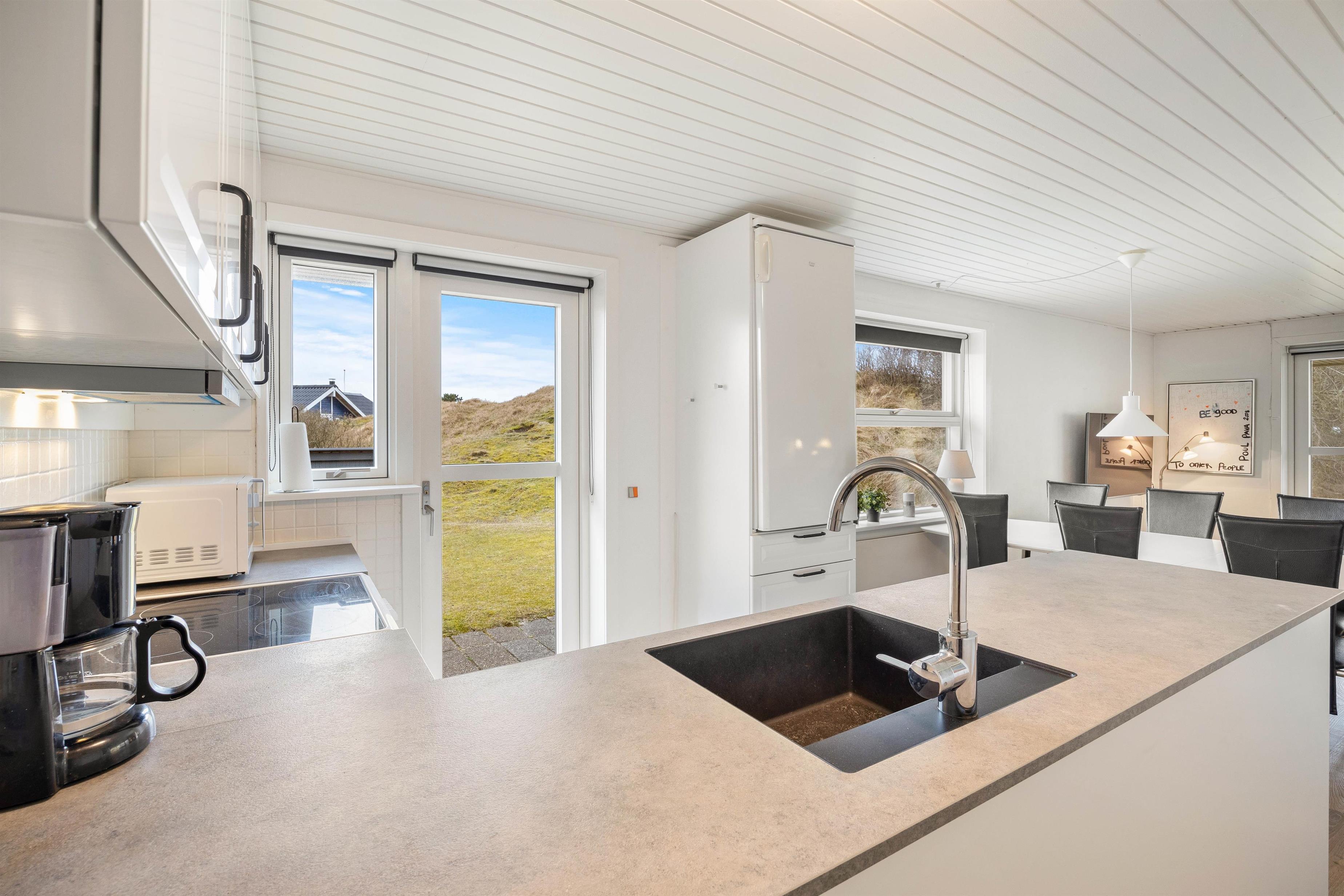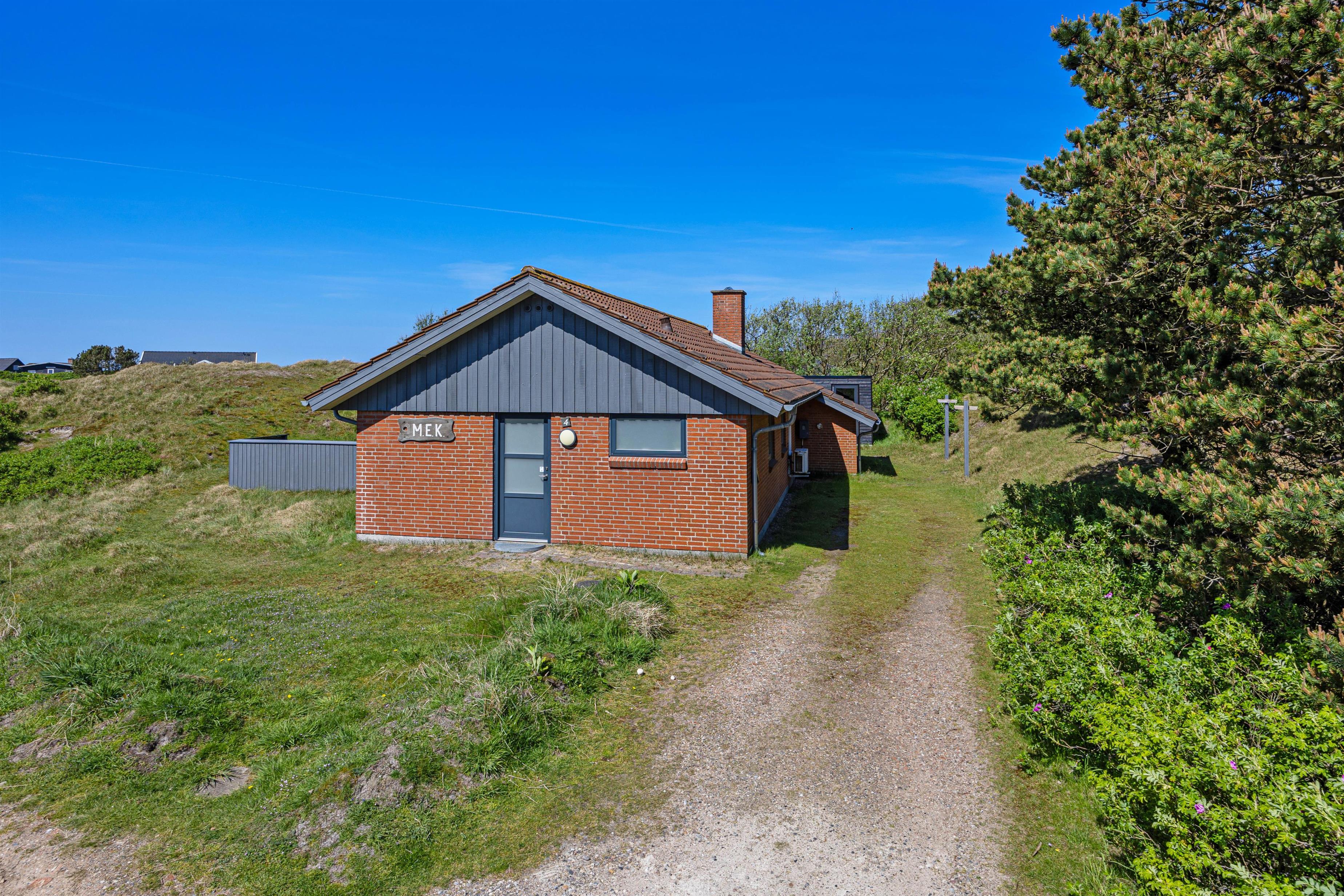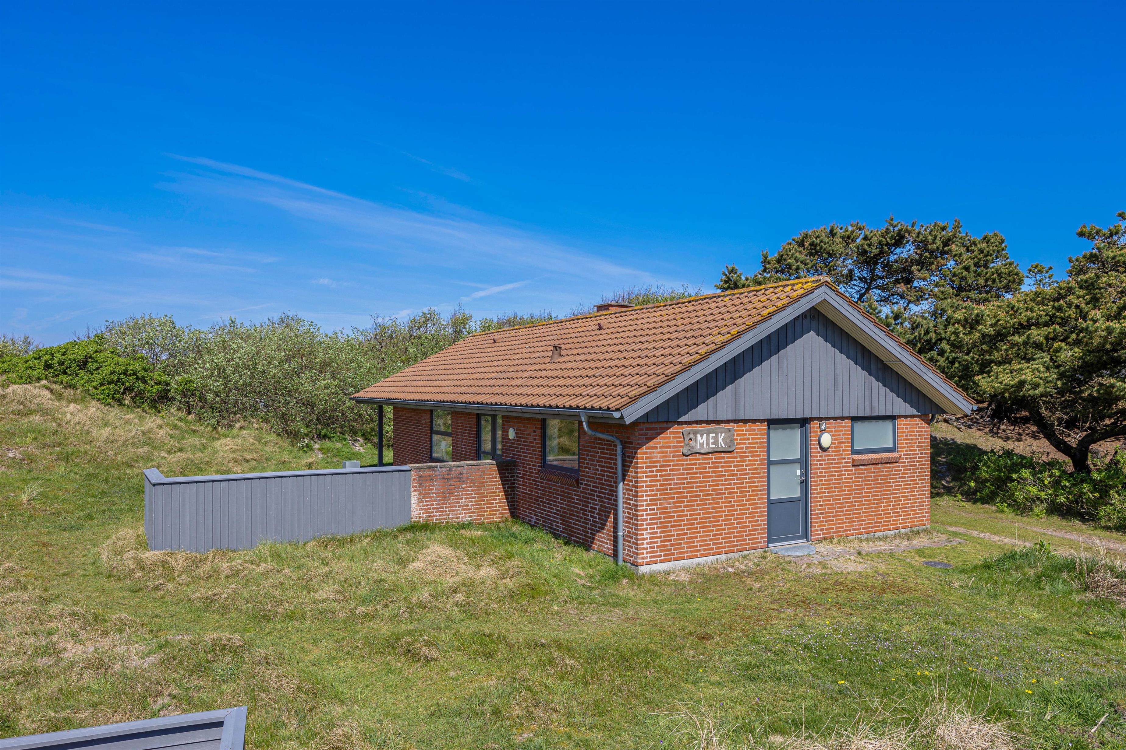 På den skønne 703m2 store naturgrund, der ligger godt i læ bag en stor klit, kan I hygge og dase i havemøblerne på den delvist åbne og overdækkede terrasse, hvor der også er opsat læhegn. Så her er der mullighed for udeliv i forskelligt slags vejr - også når der skal grilles diverse lækkerier. Når solen skinner kan I sætte jer til rette i solvognene med en god bog, og bare lade følelsen af afslapning skylle ind over jer.