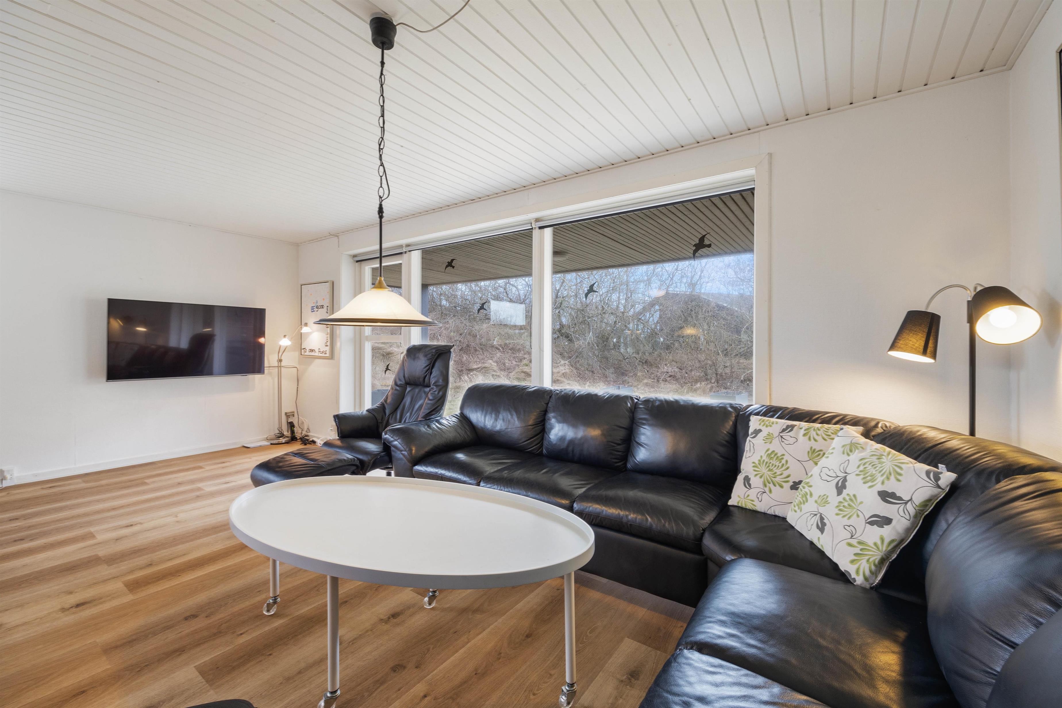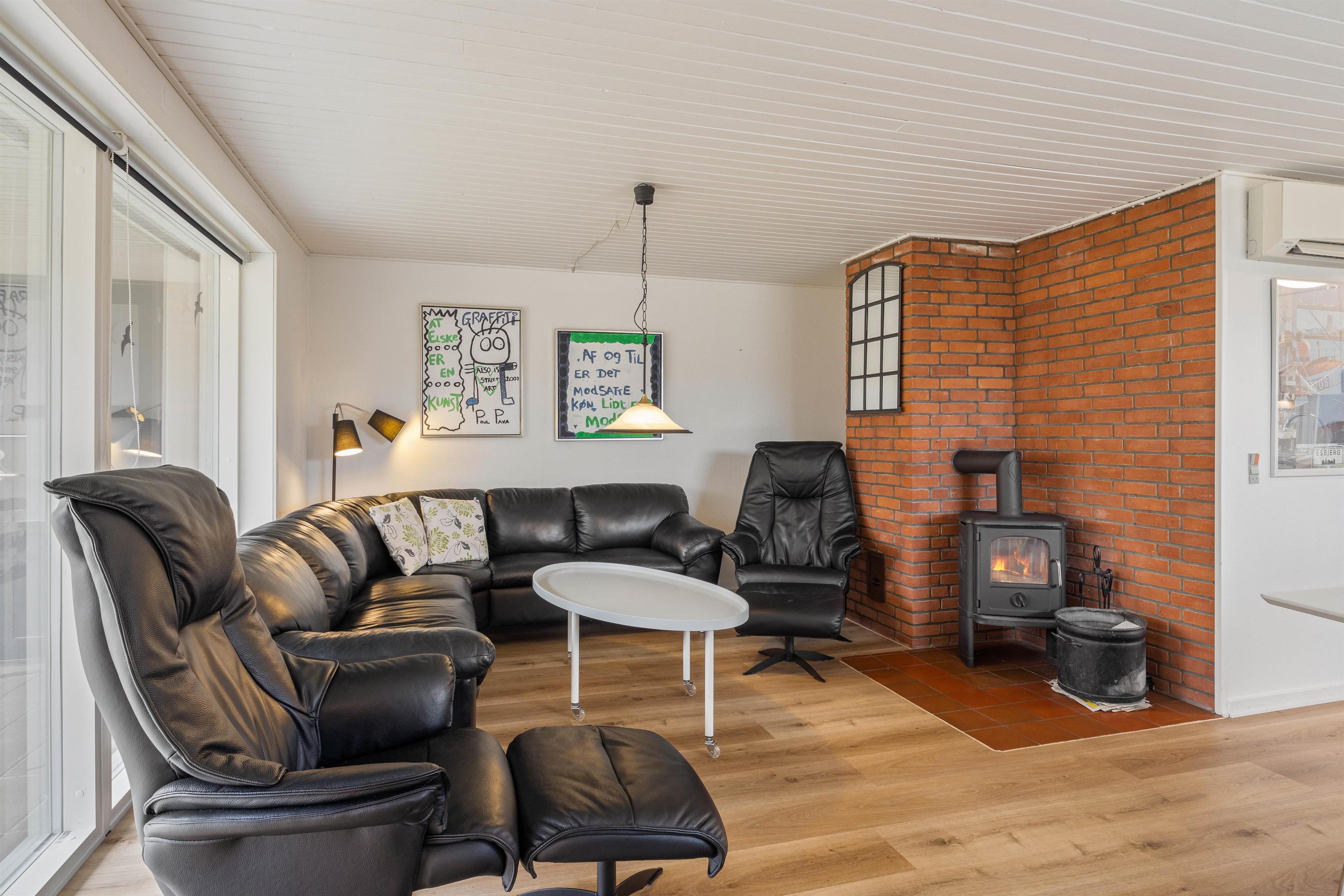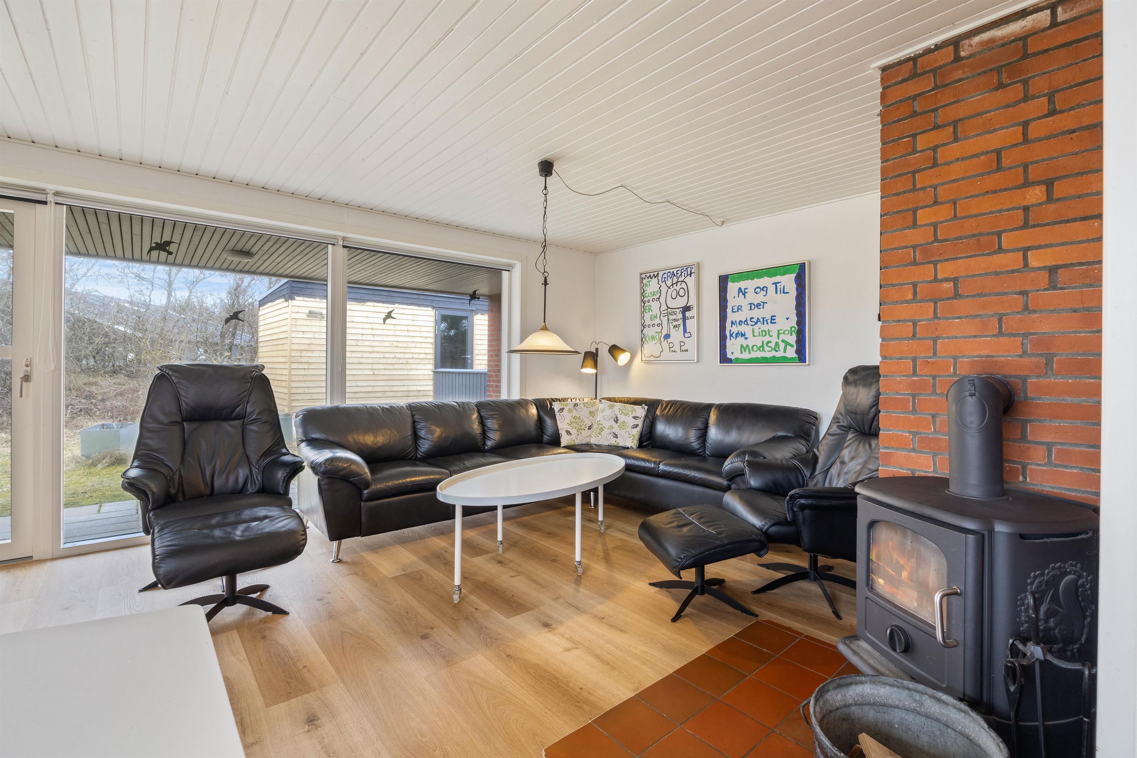 Når der skal hygges, kan I mødes og spille brætspil eller kort i de bløde lædersofaer, eller bare se en god film sammen på tv’et. Her kan I også tænde op i brændeovnen, hvor de knitrende flammer og skyggespil sammen med den behagelig varme, fuldender feriestemningen.