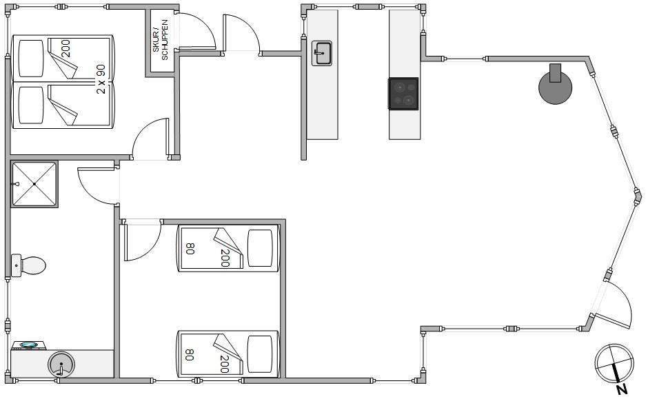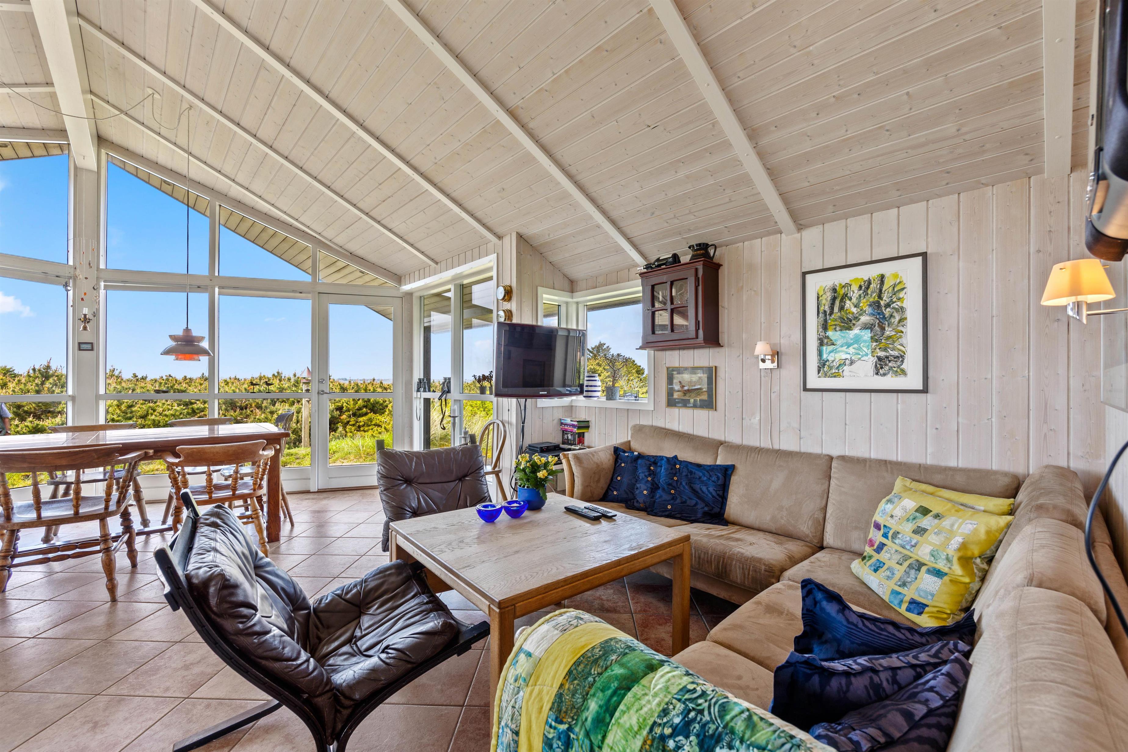 Sommerhuset på 75 m2 rummer badeværelse med vaskemaskine og gulvvarme samt 2 soveværelser. Her er også en hems, hvor der evt. også kan sove en. Sommerhuset er indrettet med komfortable møbler og i rolige farver. Hjerterummet er stuen, som ligger i åben forbindelse med køkkenet. Her er plads til familielivet, og det fantastiske vinduesparti inviterer dagslyset og naturen indenfor. Her kan I spille brætspil, slappe af med en god bog og for at gøre det hele ekstra hyggeligt, kan I tænde op i brændeovnen.