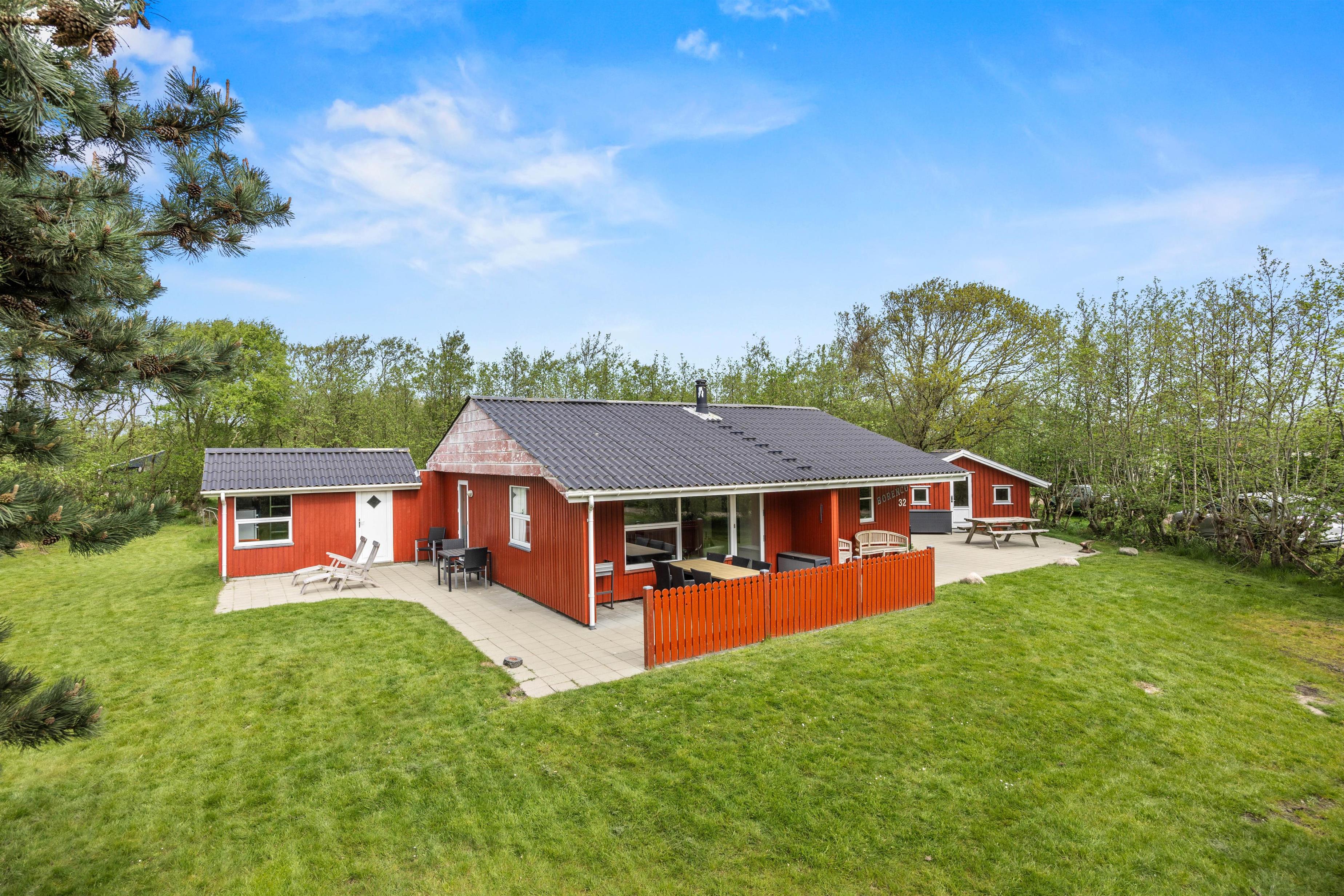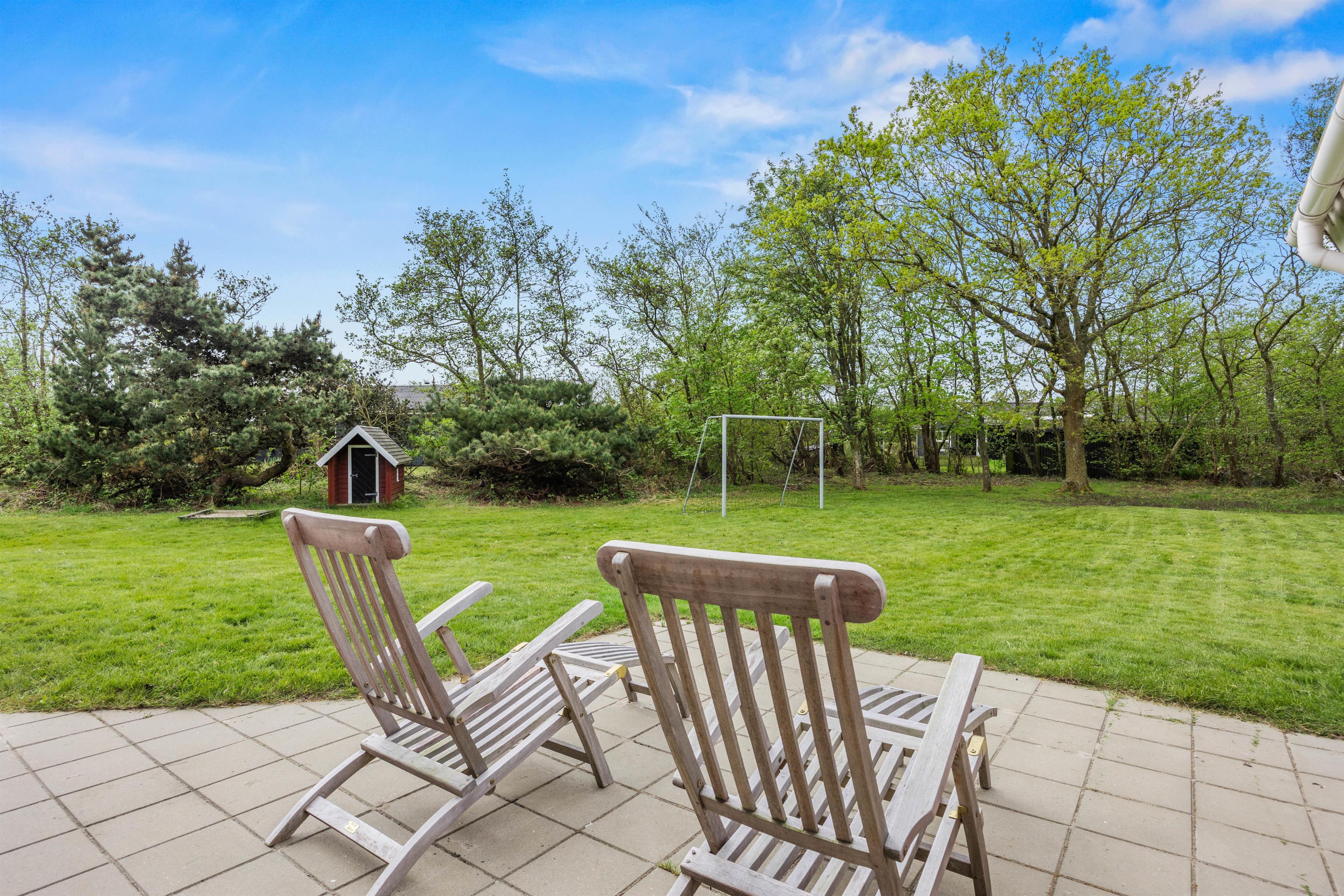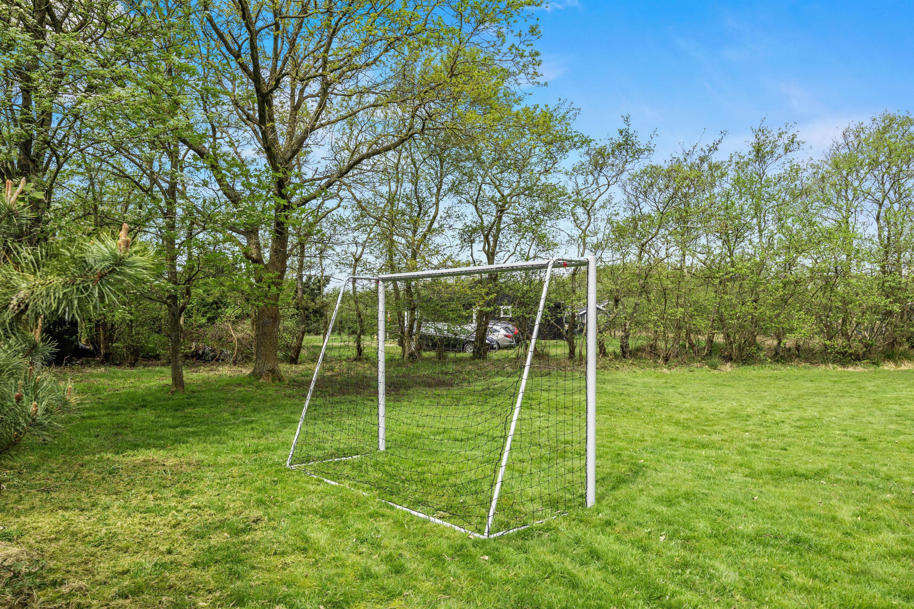 Sommerhuset er placeret på en stor grøn plænegrund godt afskærmet af de fine træer. Den velholdte plænegrund tilbyder også masser af plads til udendørs aktiviteter. Find et dejligt spot i solen, nyd morgenkaffen på terrassen og lad børnene lege med en bold i haven. Til børnene er her også et legehus og en sandkasse, hvor de kan bygge sandkager, mens forberedelserne til grillaftenen er begyndt på terrassen. Tænd op i grillen, dæk bordet og nyd måltidet med et godt glas vin!