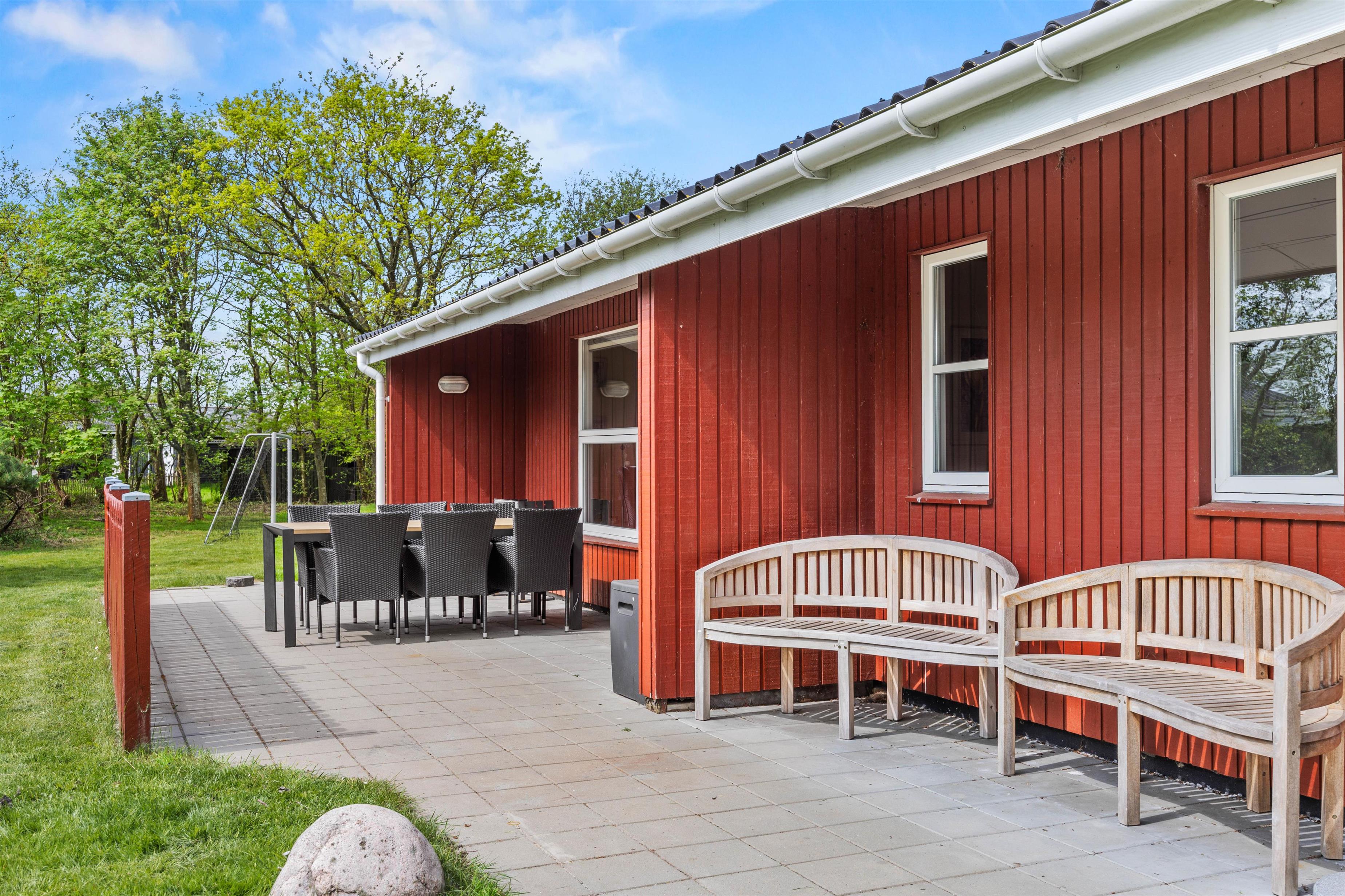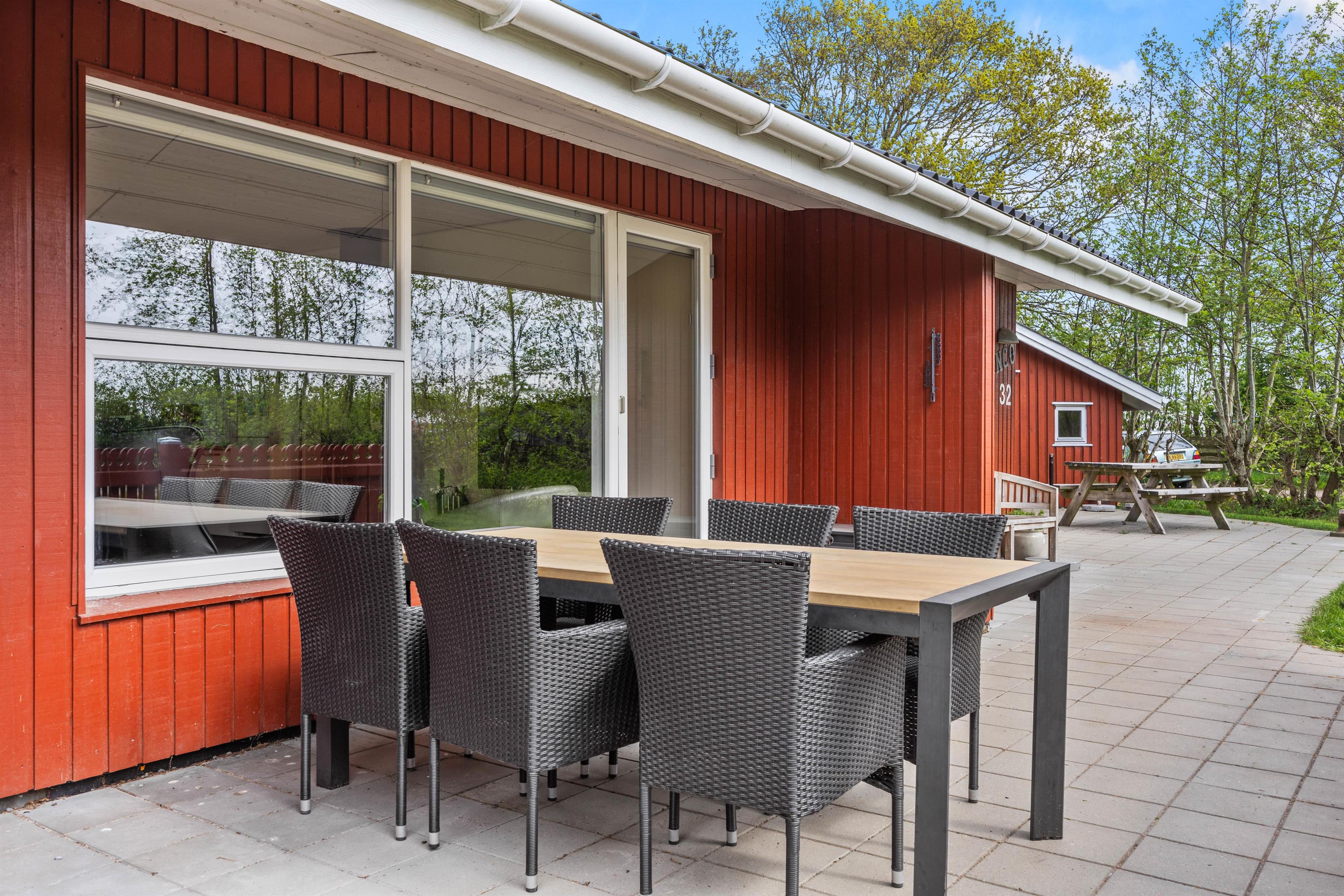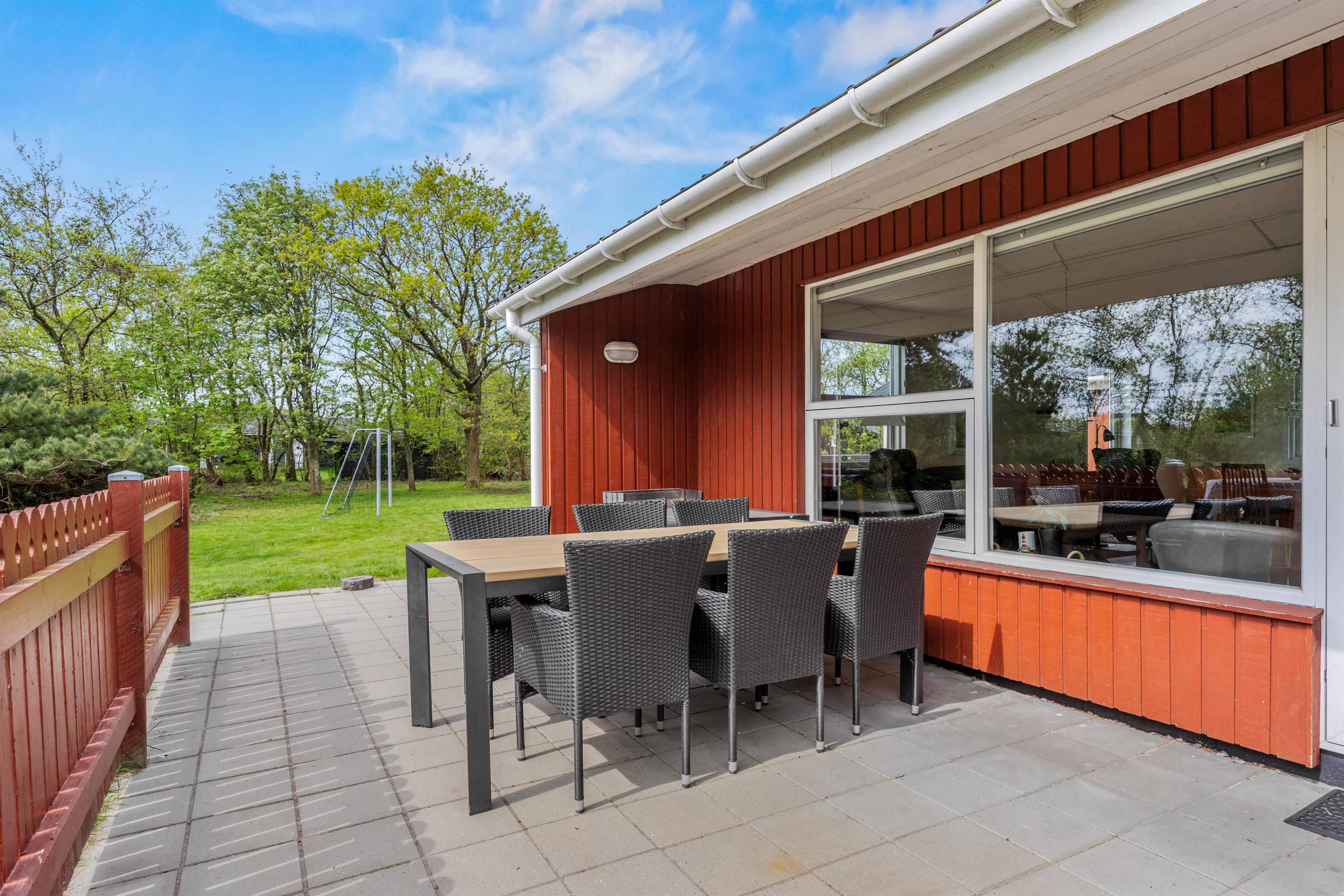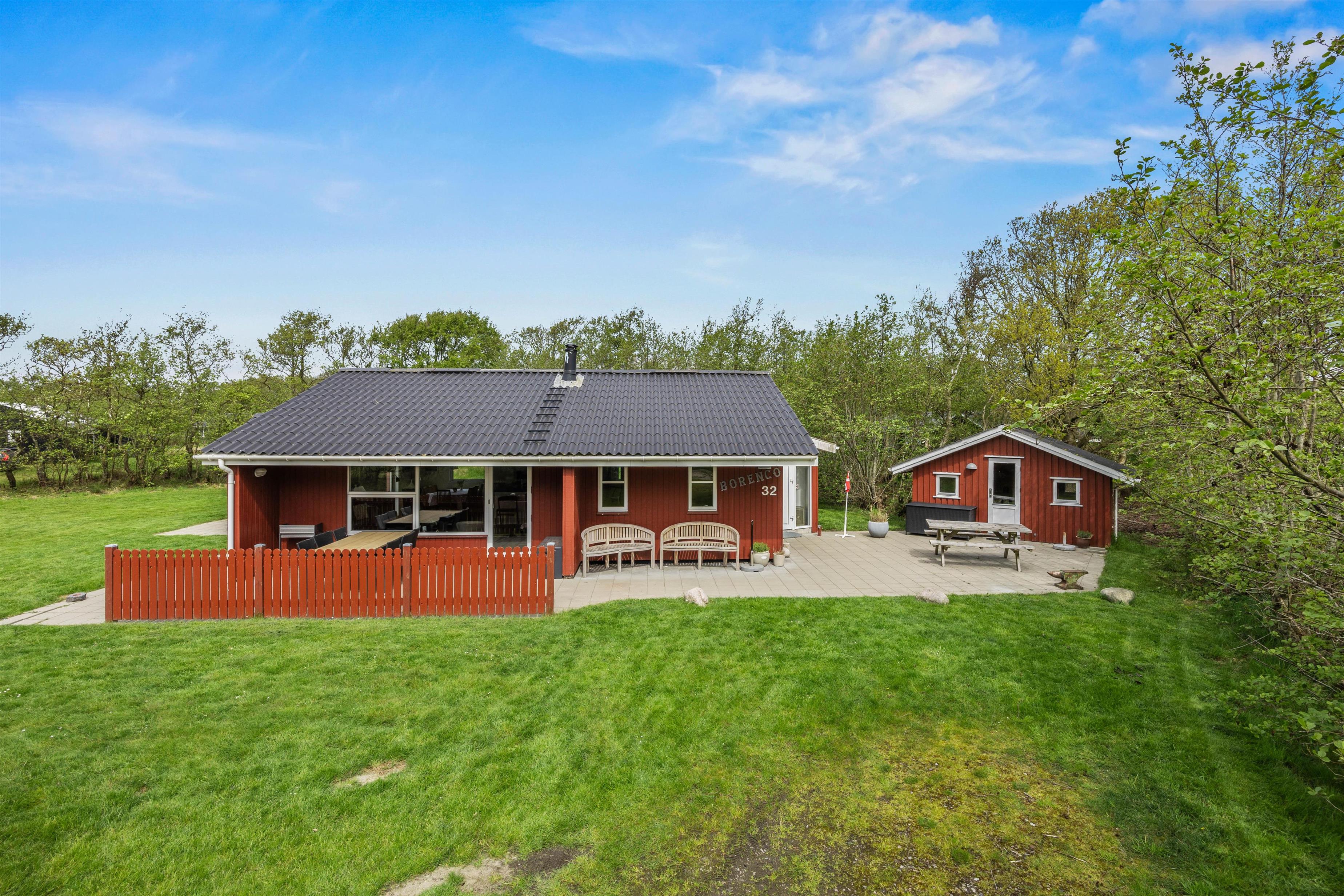 Sommerhuset er placeret på en stor grøn plænegrund godt afskærmet af de fine træer. Den velholdte plænegrund tilbyder også masser af plads til udendørs aktiviteter. Find et dejligt spot i solen, nyd morgenkaffen på terrassen og lad børnene lege med en bold i haven. Til børnene er her også et legehus og en sandkasse, hvor de kan bygge sandkager, mens forberedelserne til grillaftenen er begyndt på terrassen. Tænd op i grillen, dæk bordet og nyd måltidet med et godt glas vin!