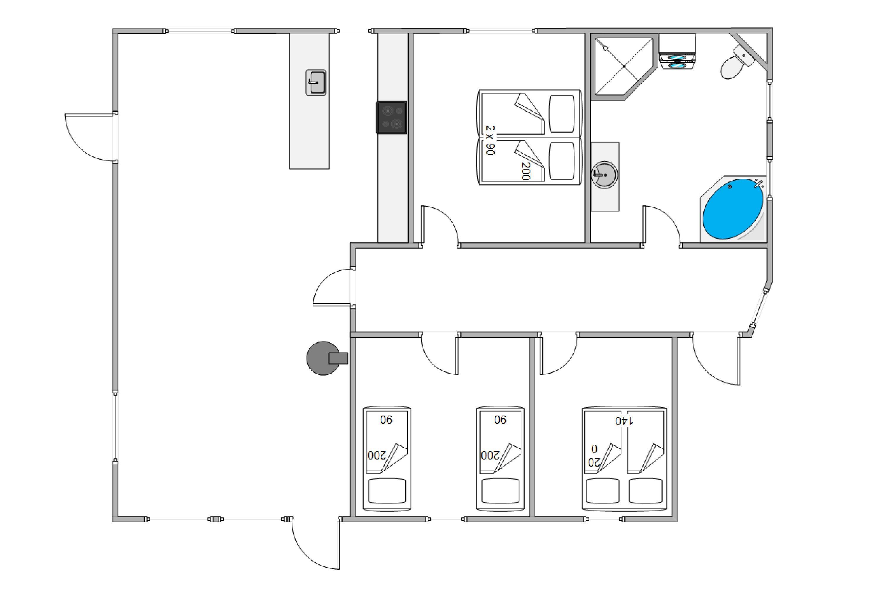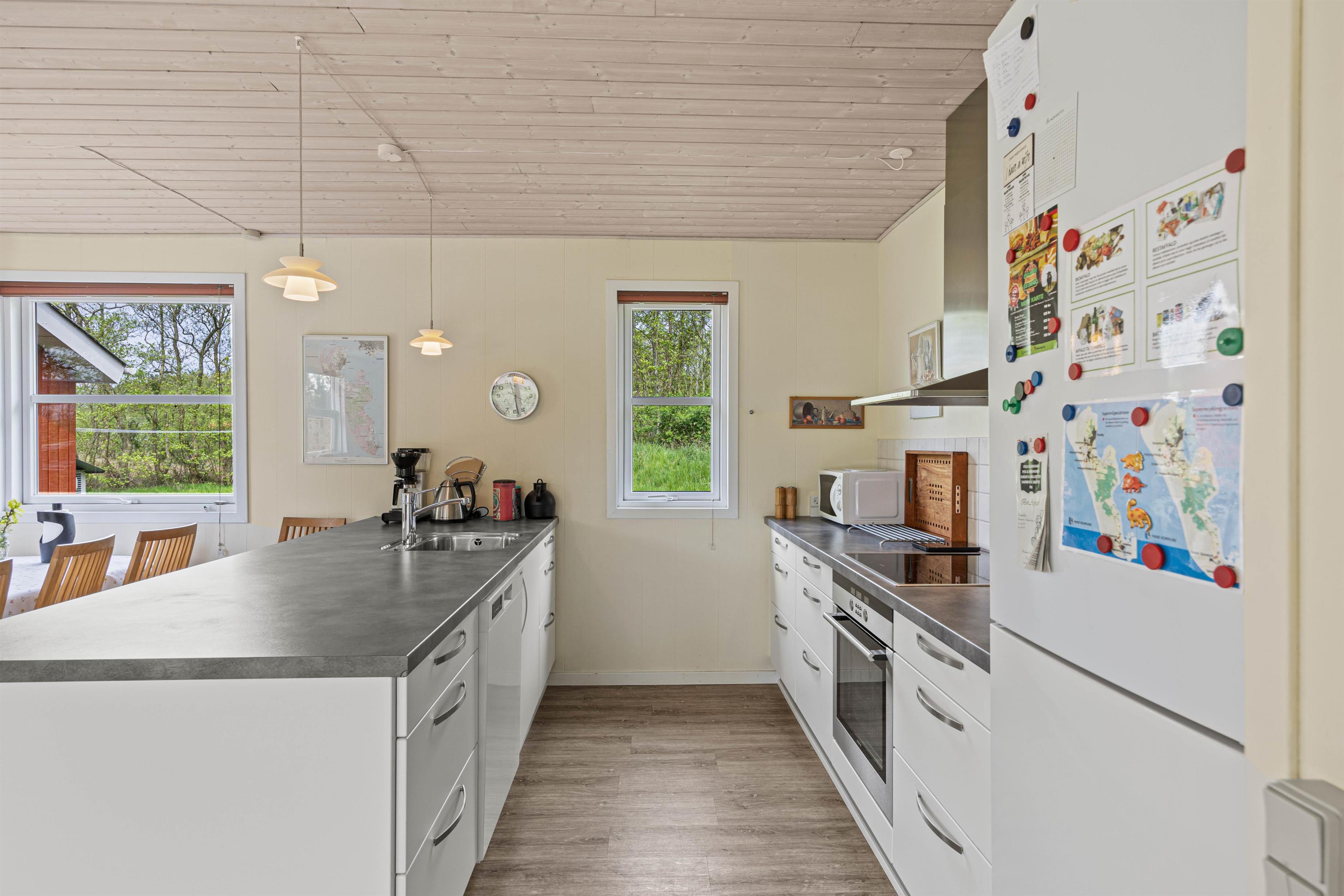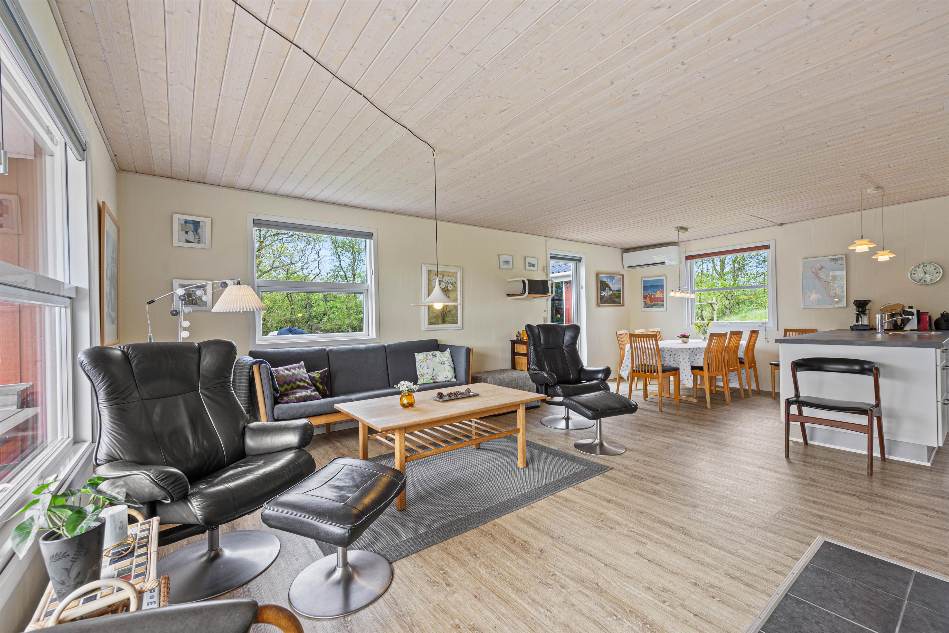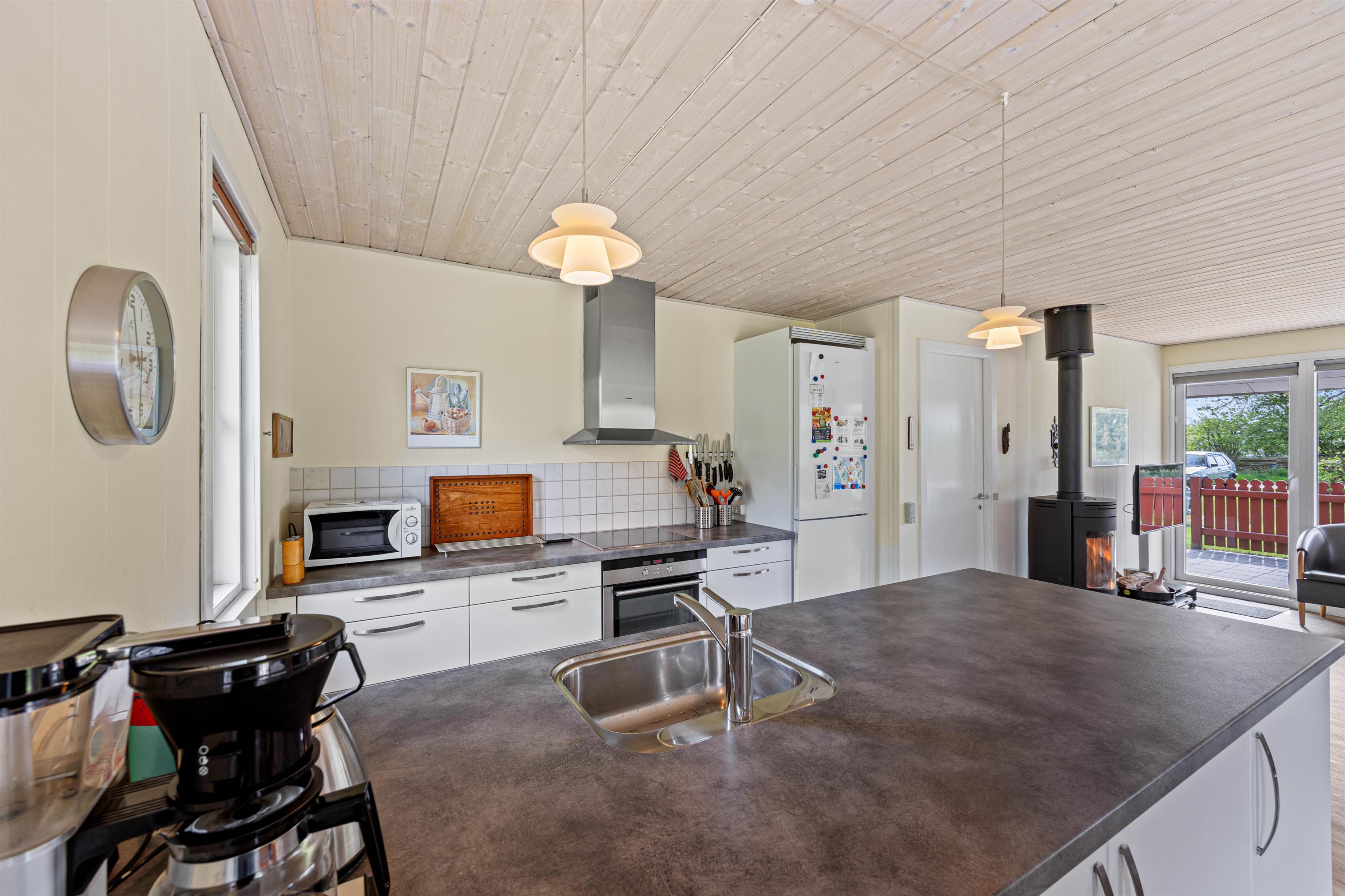 Med sine tre soveværelser, er feriehuset ideelt for op til 6 personer. Sommerhuset fremstår hyggeligt og emmer af ægte sommerhus. Her er et funktionelt alrum – ideelt til familielivet og med en skøn knitrende brændeovn. Her kan I få varmen, læse en god bog og samle familien til en hyggelig spilleaften omkring bordet. Tilbered dejlige retter i det fine køkken, der er praktisk udstyret med opvaskemaskine og en 50L fryser. Praktisk er her også en energibesparende varmepumpe samt en vaskesøjle for at gøre feriedagene så lette som muligt!