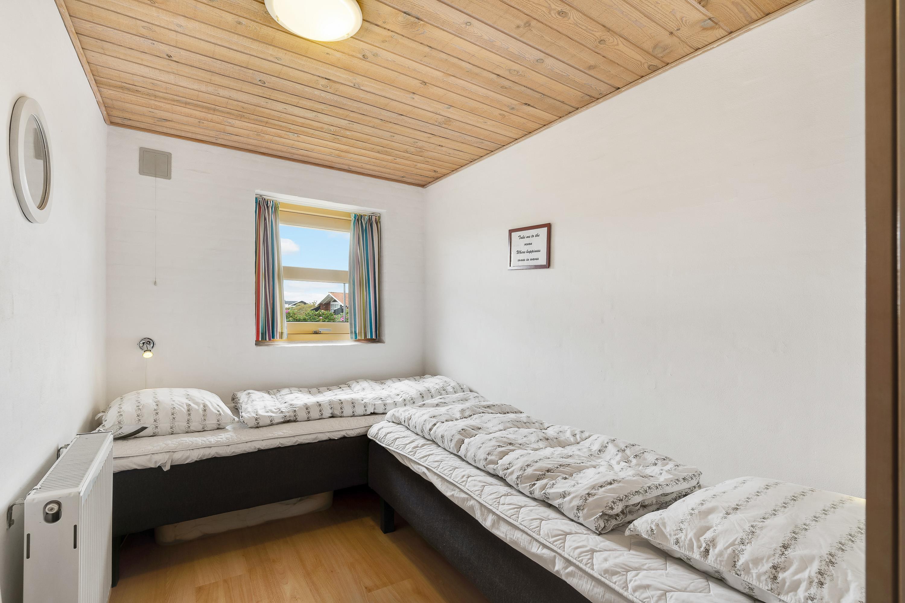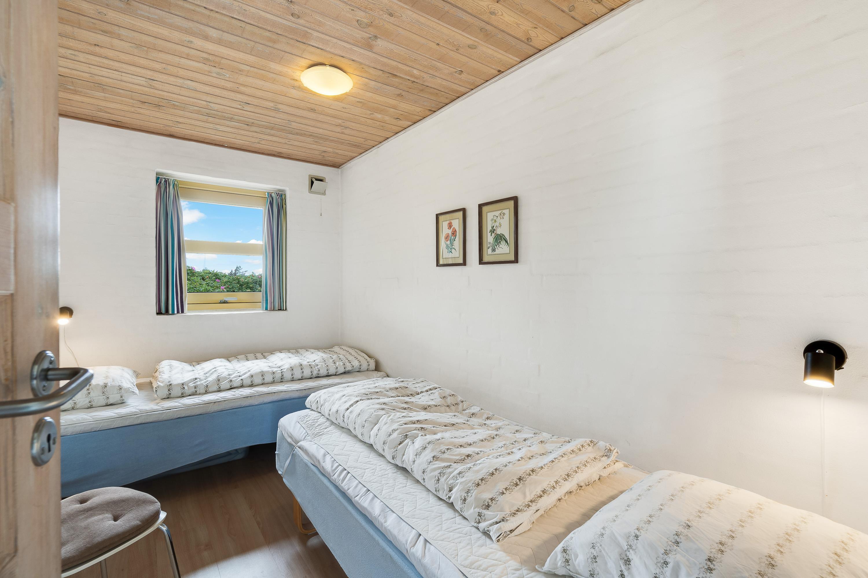 Sommerhuset har plads til 6 personer fordelt på 3 soverum, hvoraf et er med dobbeltseng og de resterende to med hver 2 enkeltsenge. Badeværelset er med gulvvarme, så I selv i vinterhalvåret har lune fødder, og prikken over i’et – den skønne sauna – er det perfekte sted til selvforkælelse.