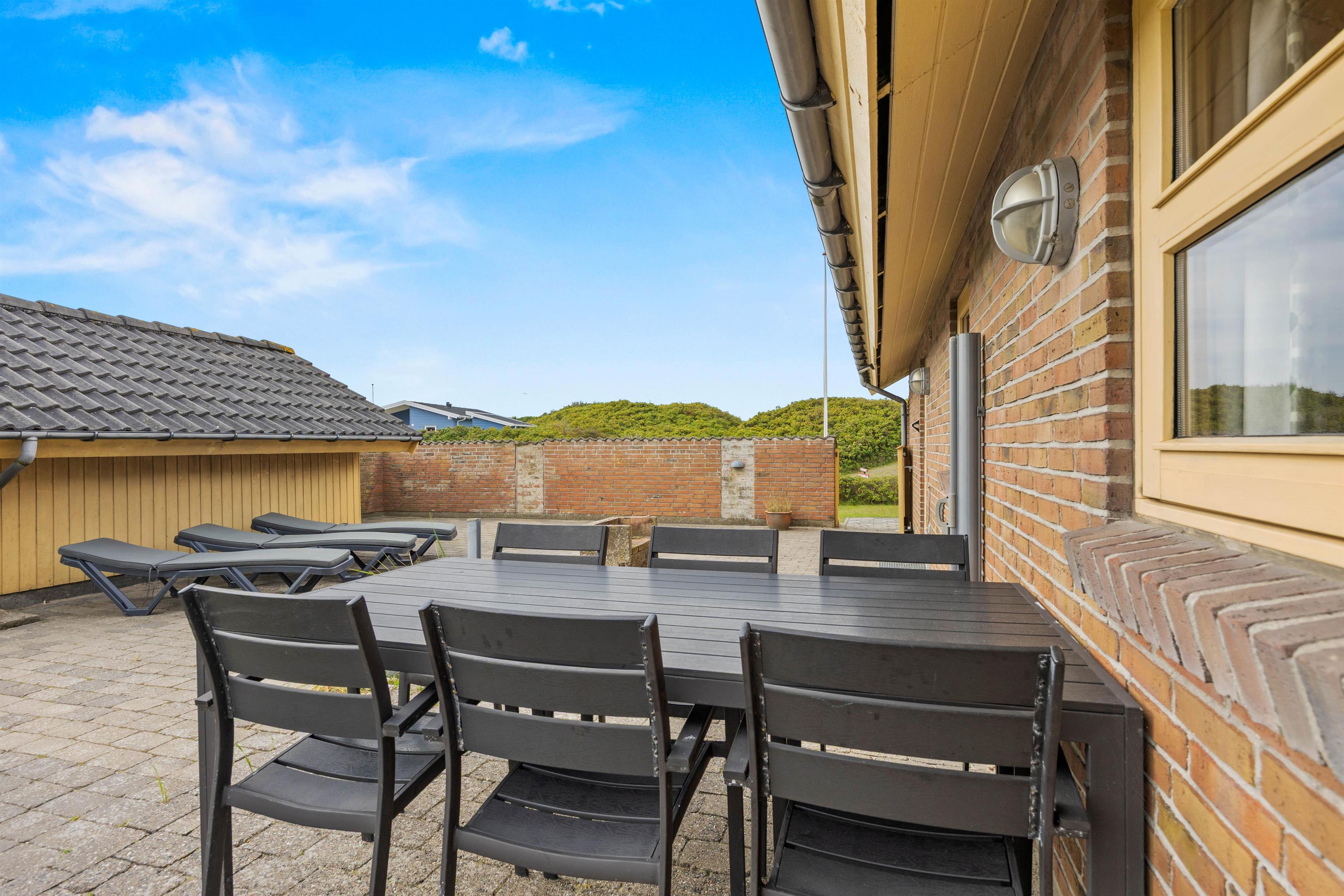 Læn jer tilbage i havemøblerne eller solvognene på terrassen og lad ferieidyllen indfinde sig. Når dagen går på hæld, kan I tænde op i den tilhørende grill og nyde aftensmaden på terrassen, imens I planlægger næste dags aktiviteter.