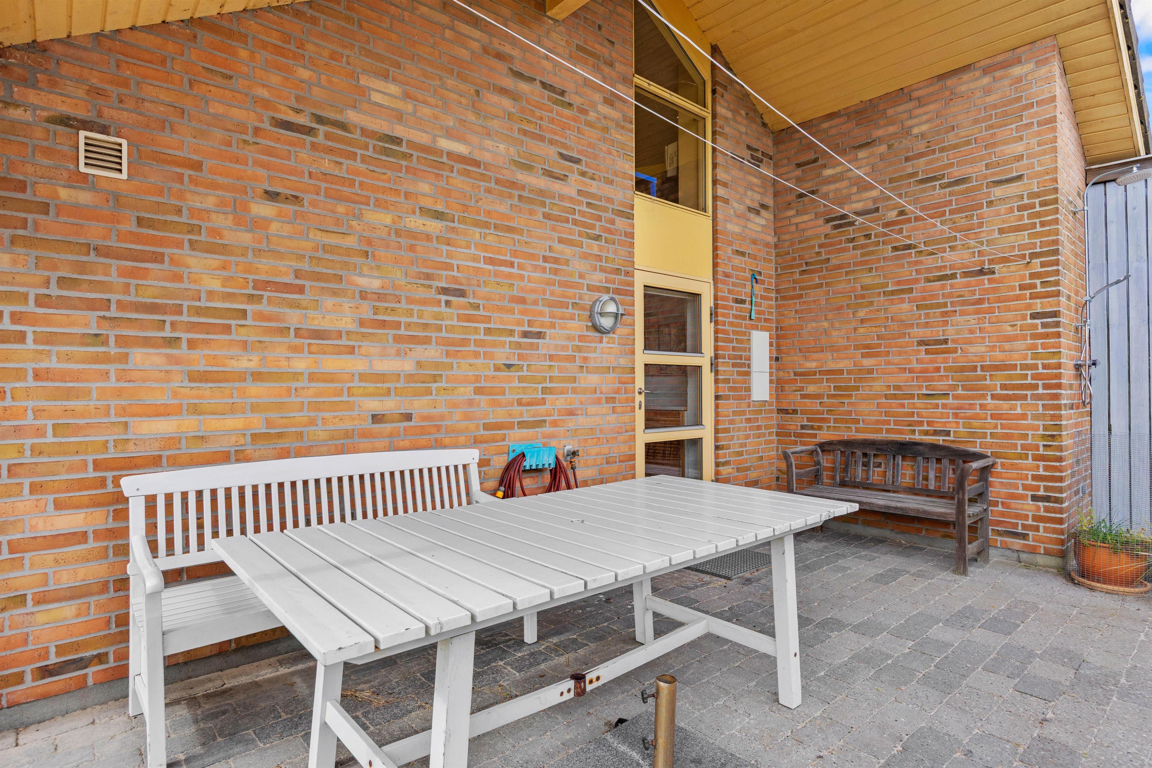 Smuk åben og delvist overdækket terrasse - et stenkast fra Rindby Strand