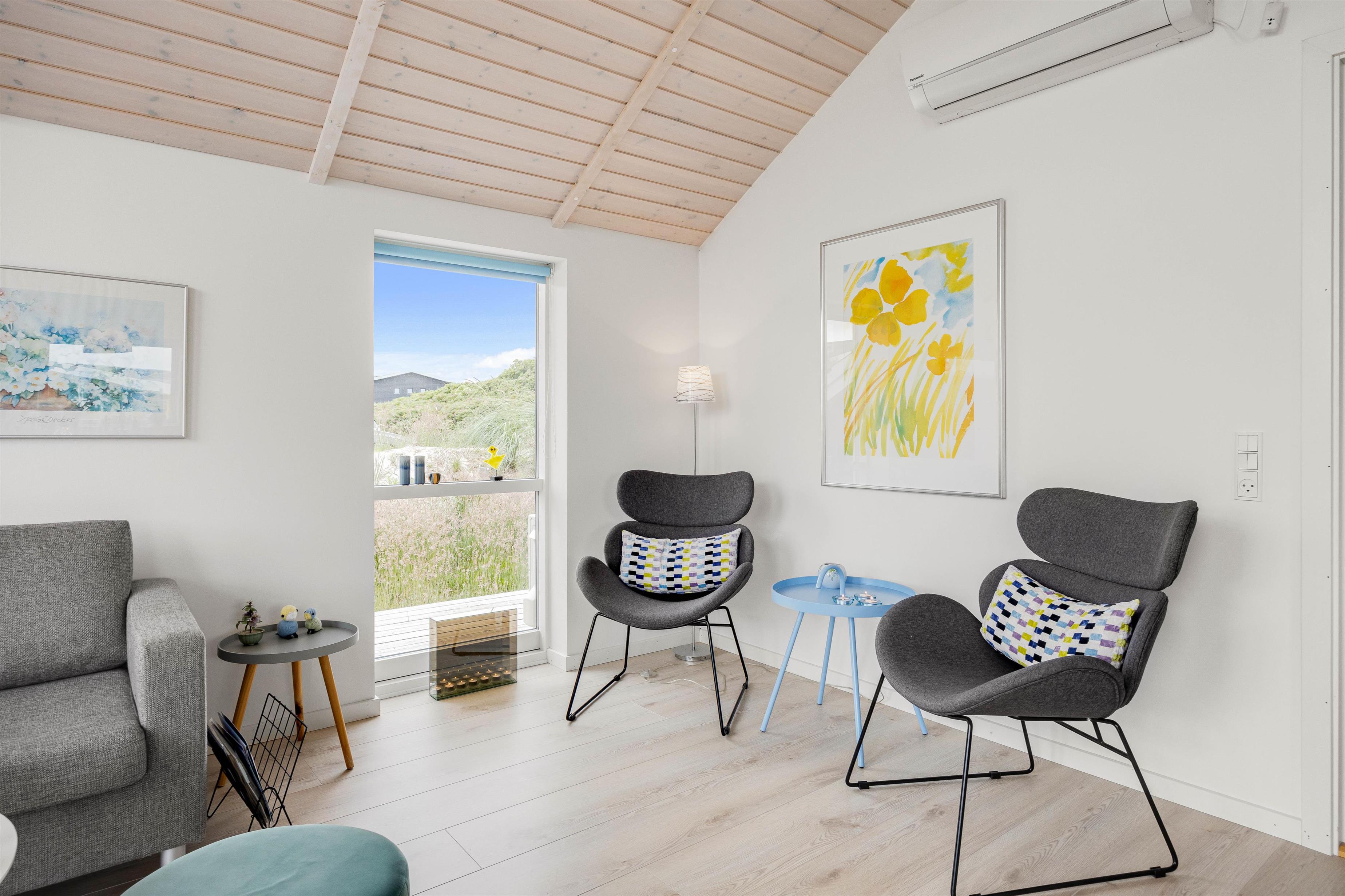 Sommerhuset på Slunden 84 byder på en lys og hyggelig indretning, hvor der både er højt til loftet og et skønt lysindfald – der er ingen tvivl om, at I straks vil føle jer hjemme her!