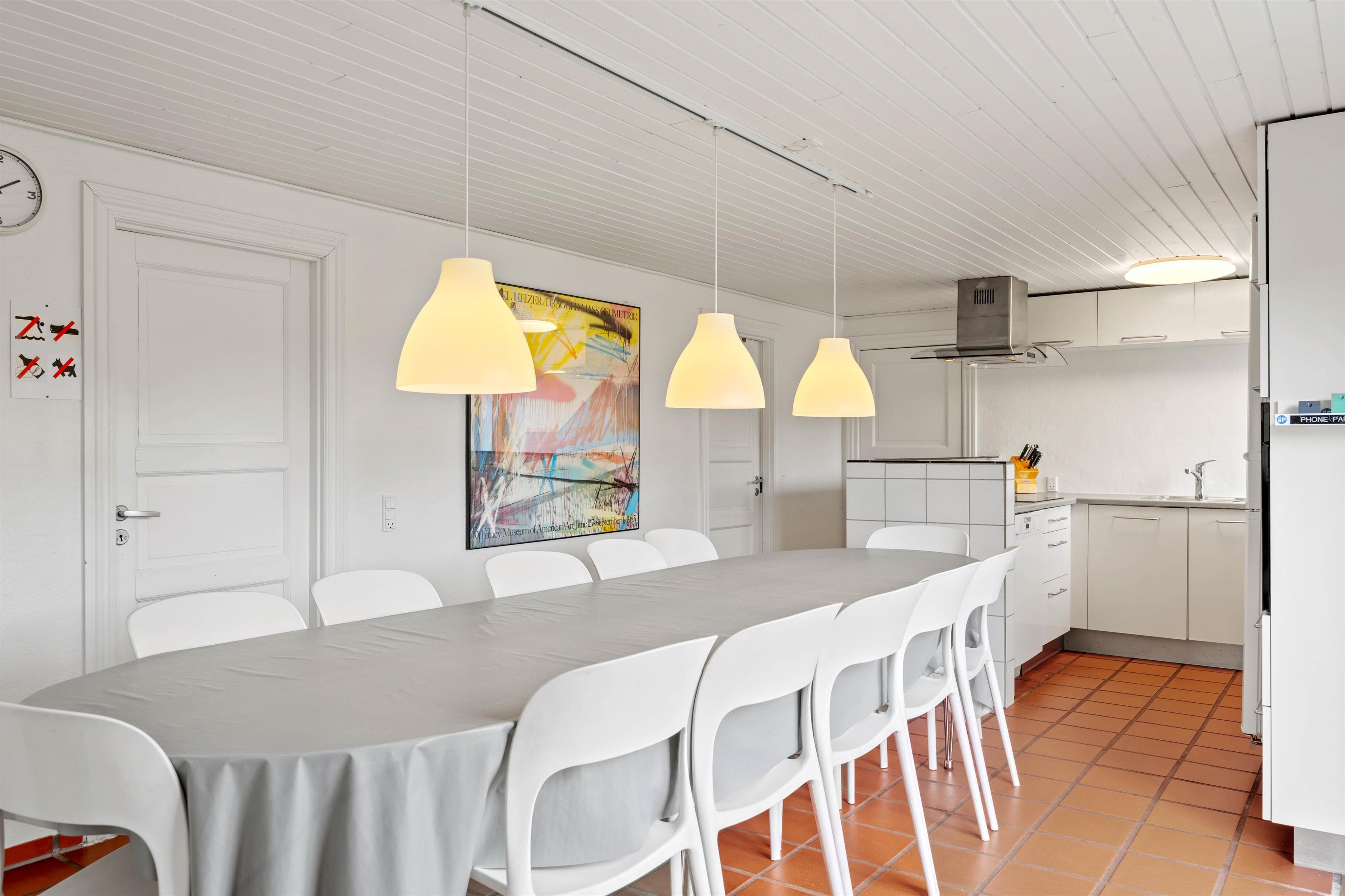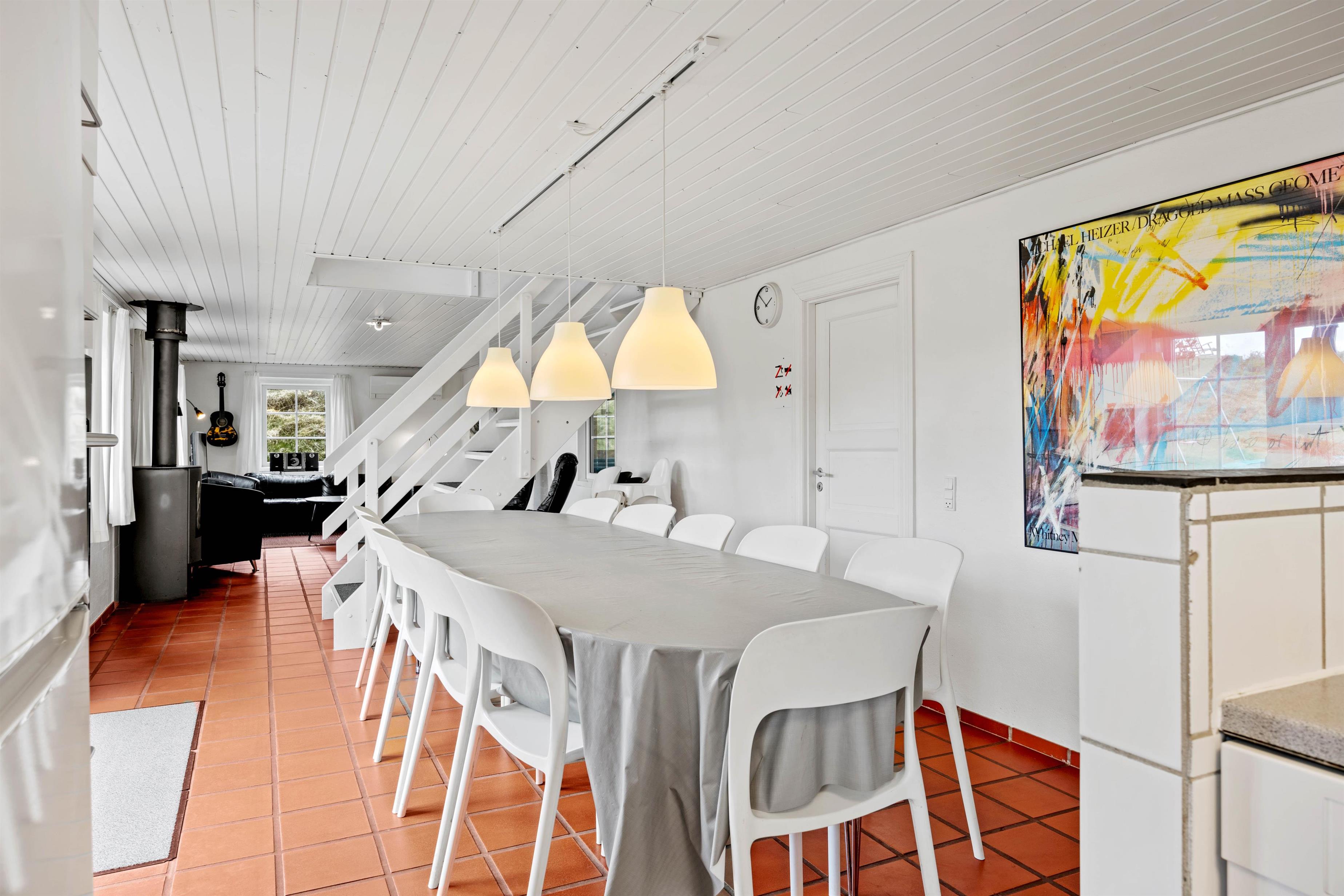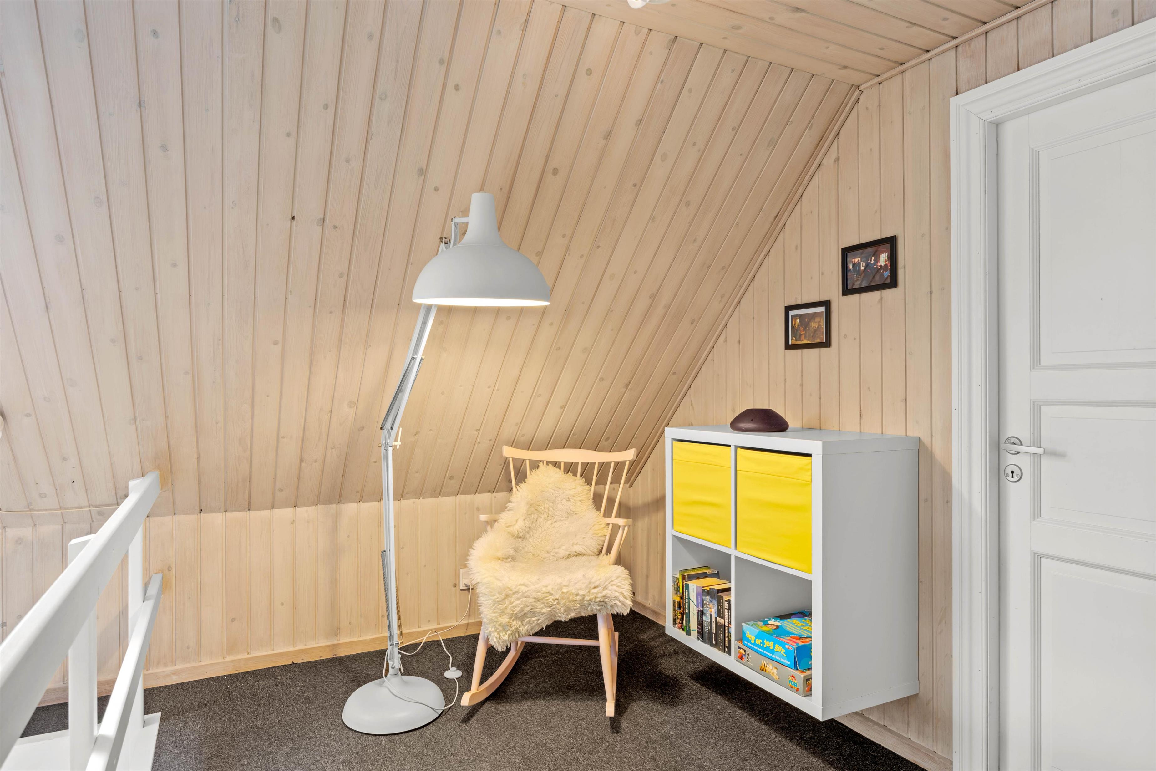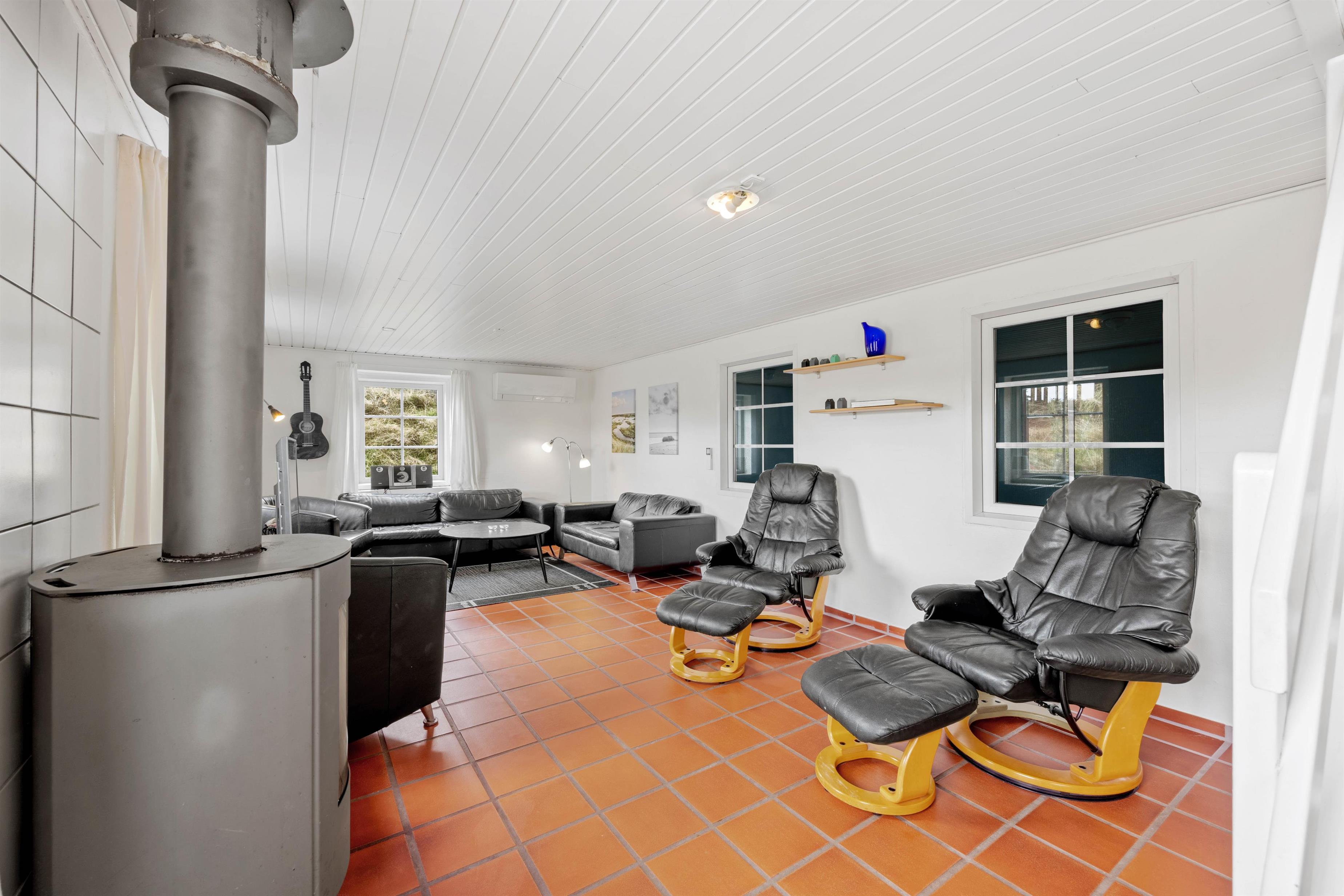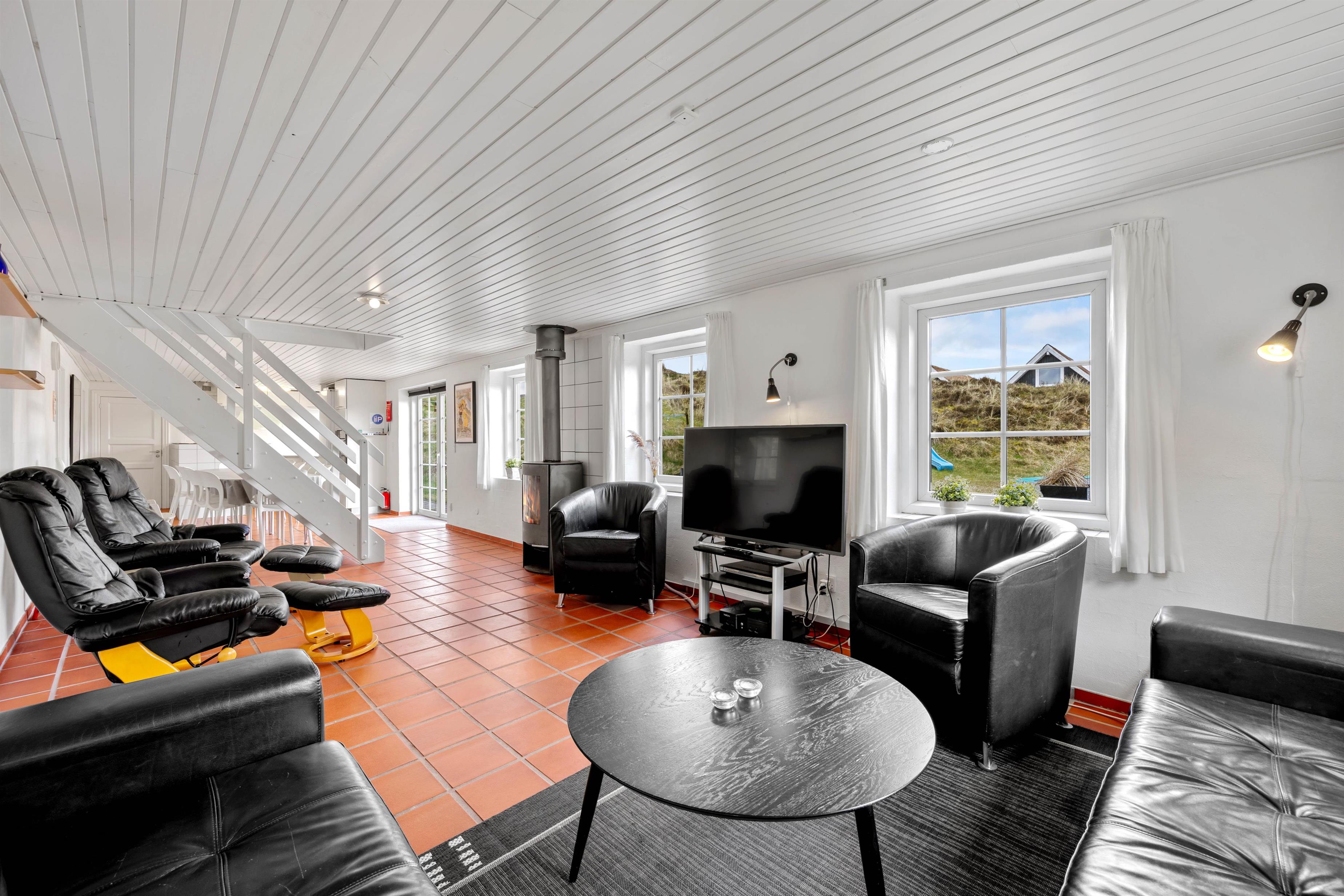 Også i sommerhusets opholdsrum kan I nyde mange sjove og hyggelige feriestunder sammen. Et veludstyret køkken støder op til spisepladsen, mens stuen er afskærmet fra trappen til førstesalen. I sofaerne kan I samles og se en god film, mens brændeovnen knitrer i baggrunden. Også på førstesalen er et hyggehjørne med et ekstra tv og en fin læsekrog.