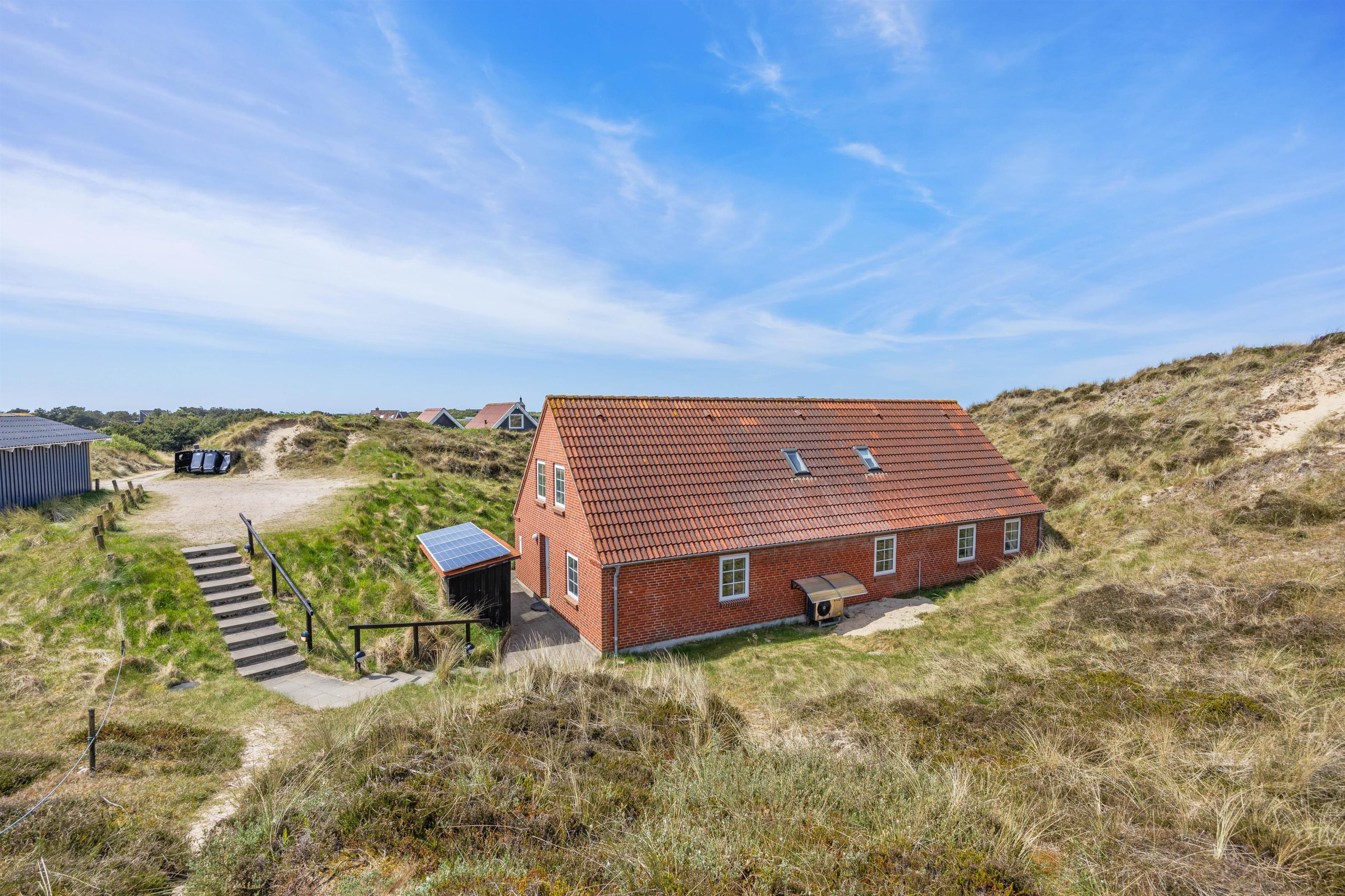 Fra stuen er der direkte adgang til den afskærmede terrasse og have, som er omgivet af det smukke, vilde klitlandskab. Her kan I nyde middagssolen med en god bog, slikke sol og holde nogle dejlige grillaftner. Mens de voksne slapper af med et koldt glas vin, kan ungerne give den gas i haven. Legetårn, rutsjebane, sandkasse, gynger og trampolin – her mangles ikke noget.