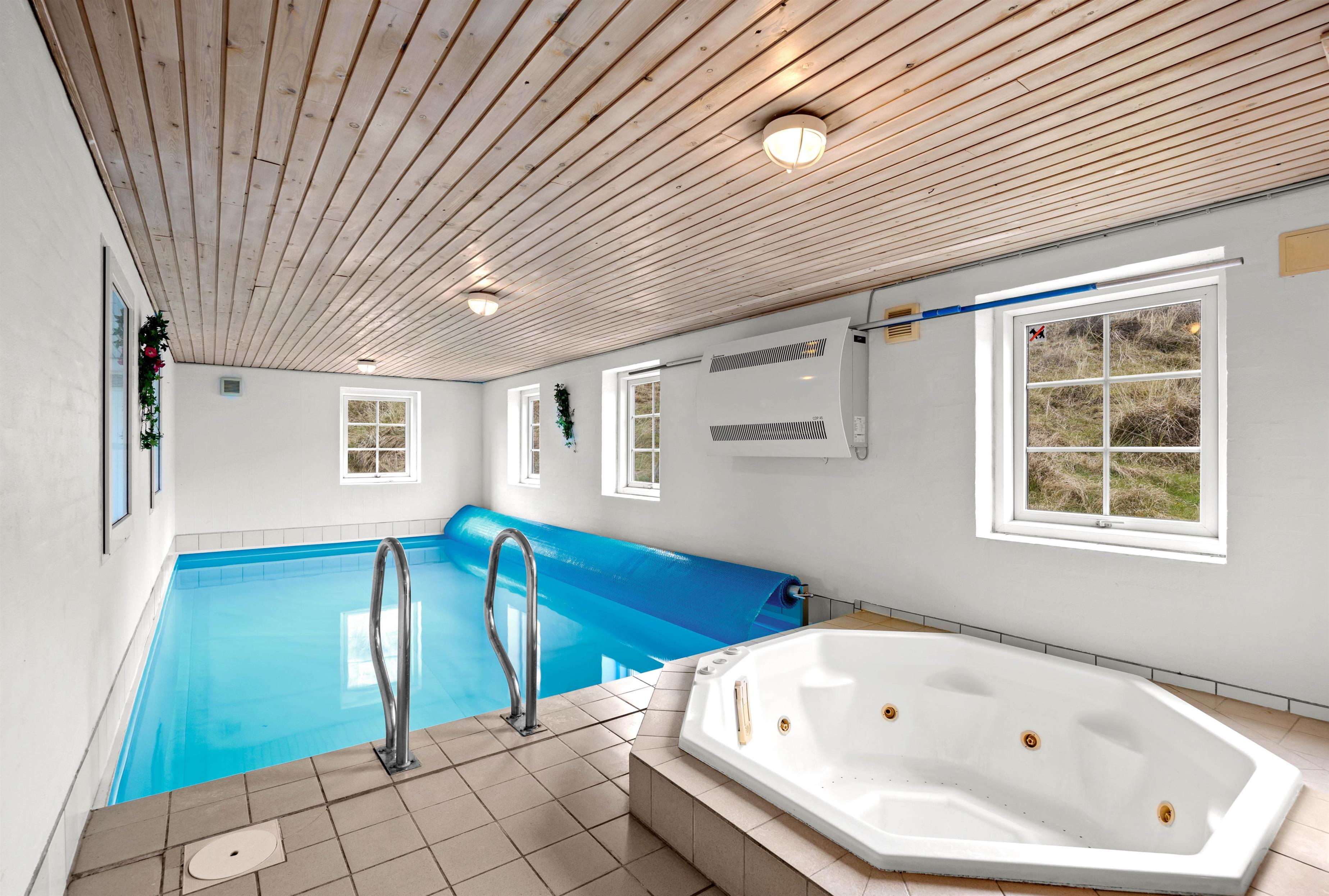 På Paradisvej 54 er I lovet sjov og spas hele året rundt. Et rummeligt feriehus i 2 plan, hvor familien kan samles i det fine opholdsrum og plaske rundt i poolrummet. I den 21 m2 store pool har I masser af plads til at lege, dykke efter ringe eller svømme mod strømmen fra modstrømsanlægget. Her vil I med garanti få mange timer til at gå med masser af vandlege og andet sjov. Er I mere til det stille og rolige, kan I hoppe en tur i sauna eller i spaen, der også befinder sig i poolrummet, hvor I kan snuppe en god gang afslapning, mens resten af flokken plasker løs i poolen.