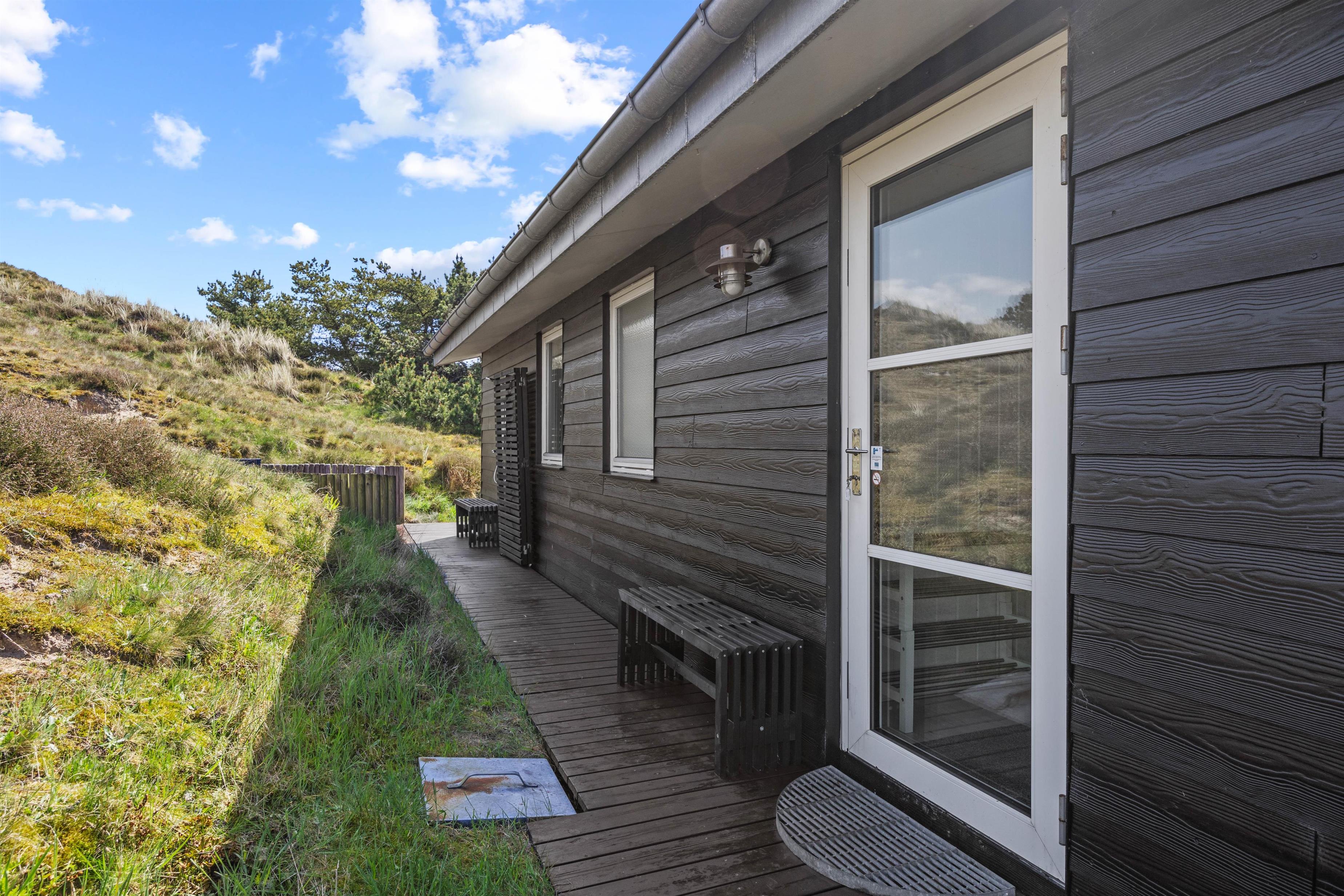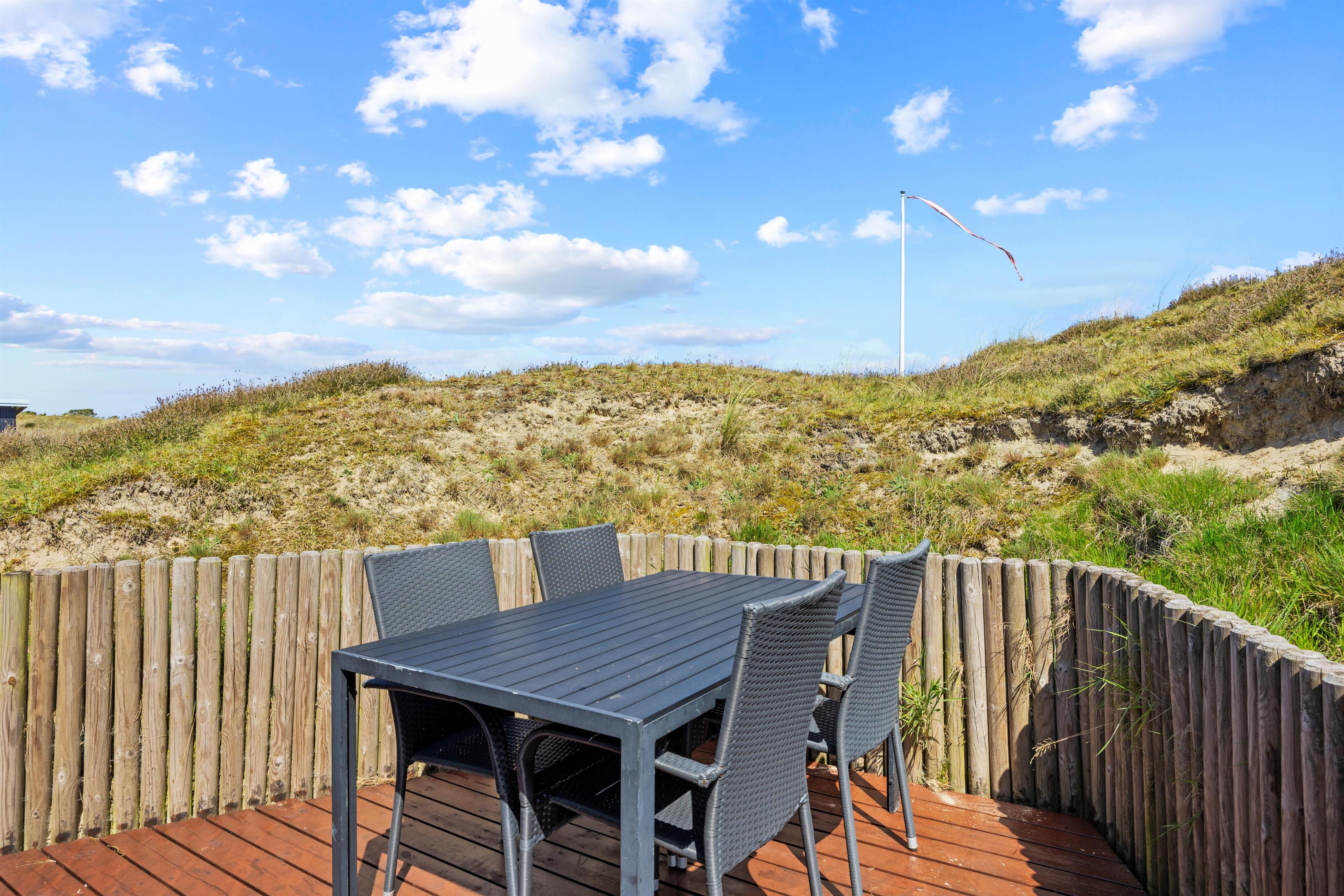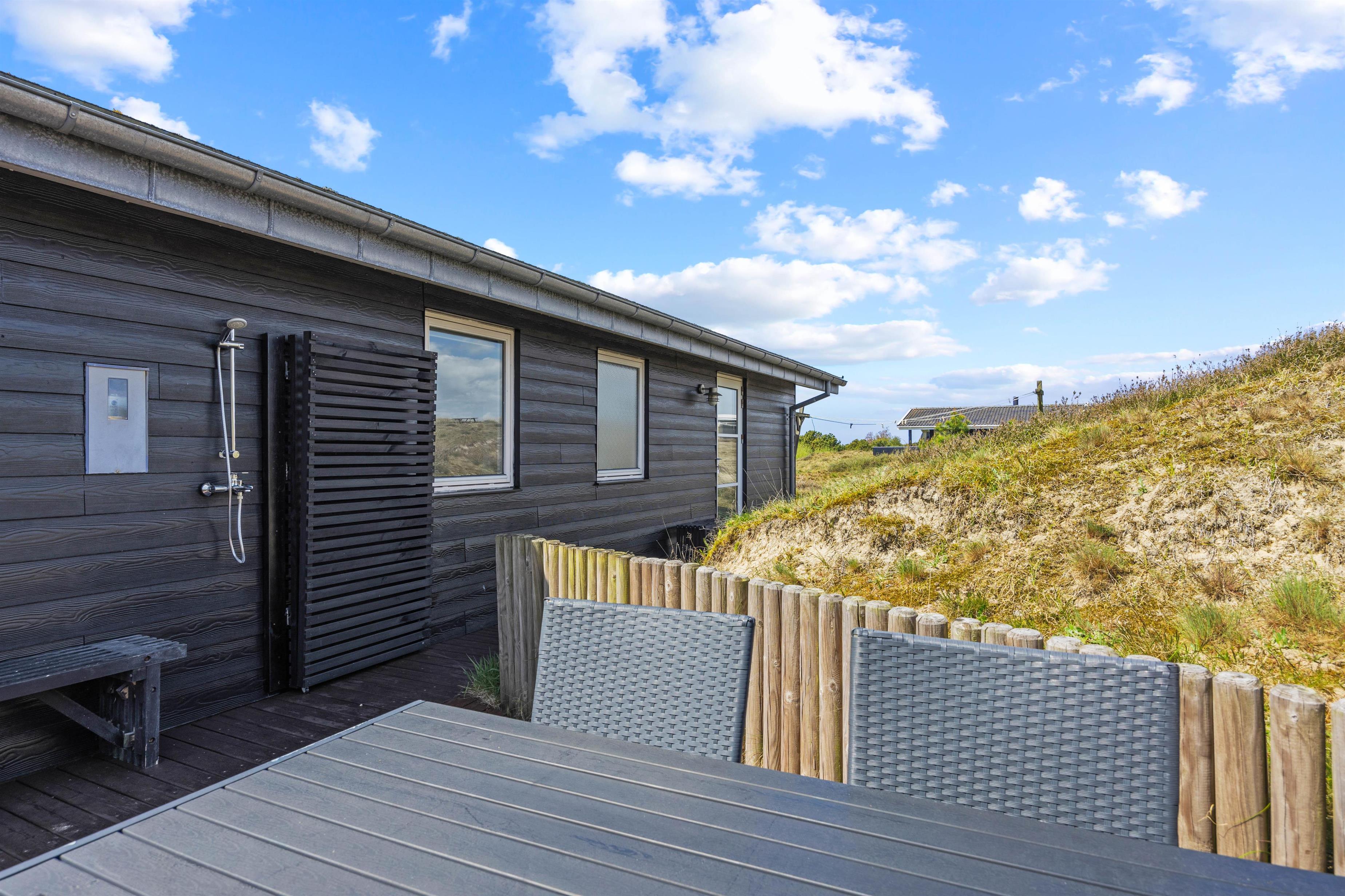 Den fine træterrasse har både en åben og en afskærmet del, hvor I kan nyde udelivet i fulde drag. Tag solbad på liggestolen eller træk jer tilbage i havemøblerne med en drink eller kop kaffe, og nyd udsigten over klitgrunden med bruset fra Vesterhavet som lydmæssigt baggrundstæppe. Tænd op i grillen til aften, og nyd et lækkert grillmåltid sammen. Mangler I noget til menuen, er indkøbsmulighederne kun nogle få minutters gang derfra (350 meter). Bagefter kan I stadig nå en tur til stranden, hvor I kan opleve solnedgangen i Vesterhavet.