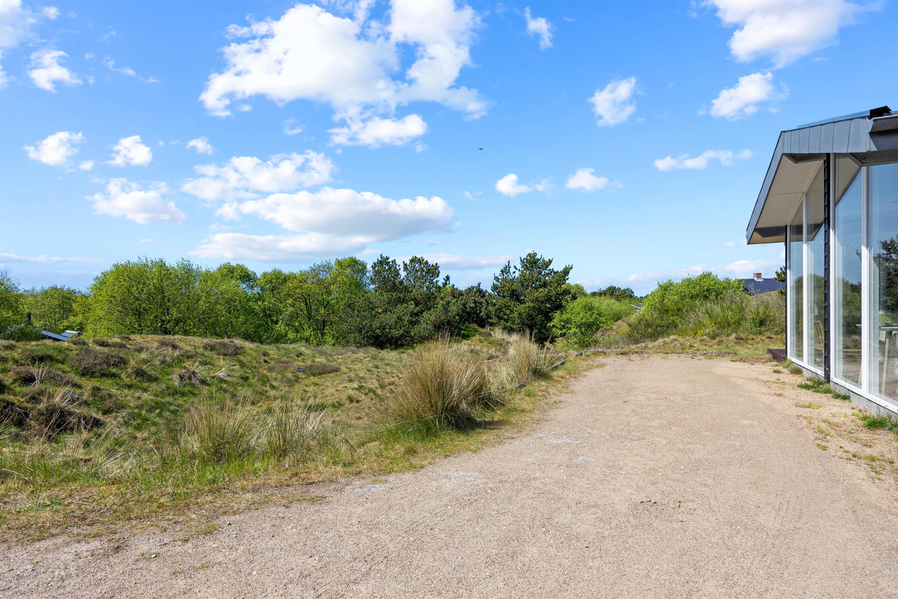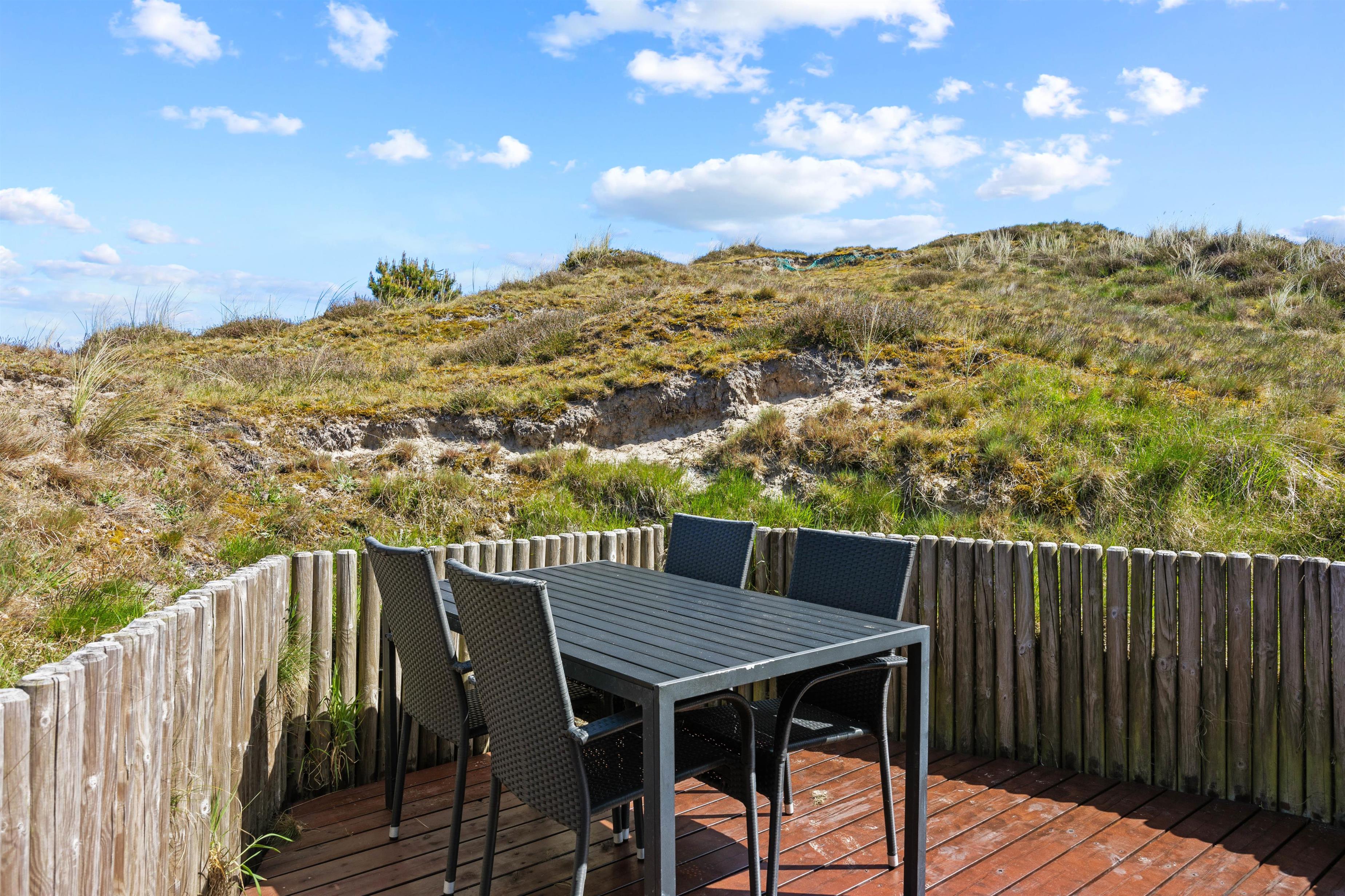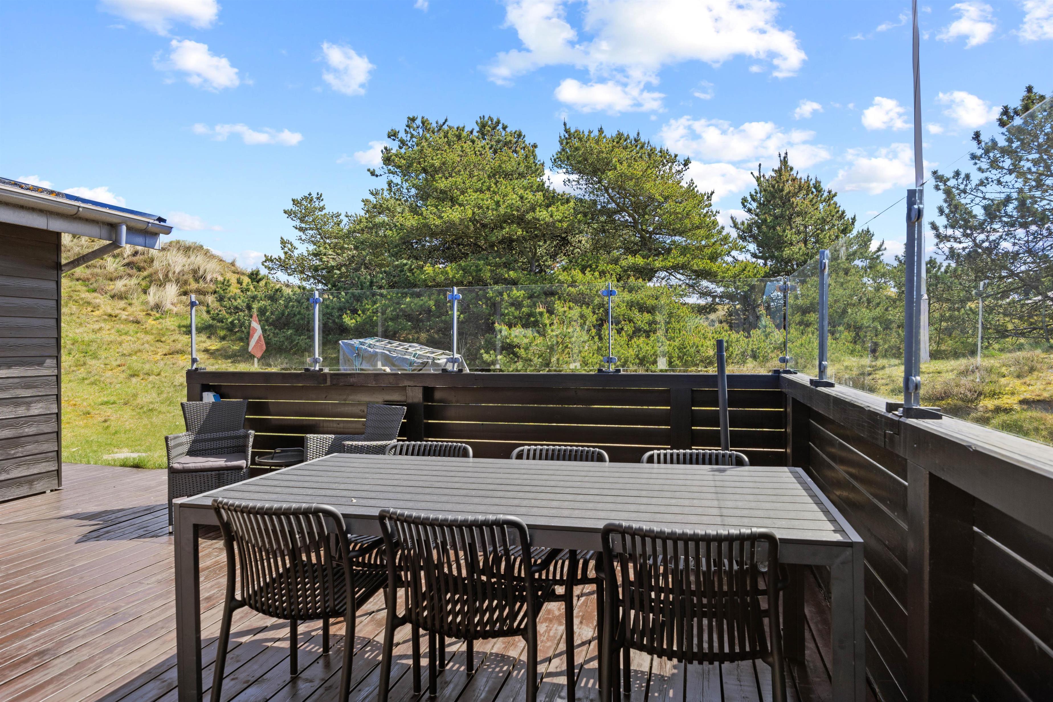 Den fine træterrasse har både en åben og en afskærmet del, hvor I kan nyde udelivet i fulde drag. Tag solbad på liggestolen eller træk jer tilbage i havemøblerne med en drink eller kop kaffe, og nyd udsigten over klitgrunden med bruset fra Vesterhavet som lydmæssigt baggrundstæppe. Tænd op i grillen til aften, og nyd et lækkert grillmåltid sammen. Mangler I noget til menuen, er indkøbsmulighederne kun nogle få minutters gang derfra (350 meter). Bagefter kan I stadig nå en tur til stranden, hvor I kan opleve solnedgangen i Vesterhavet.