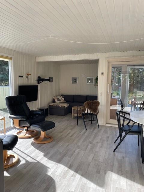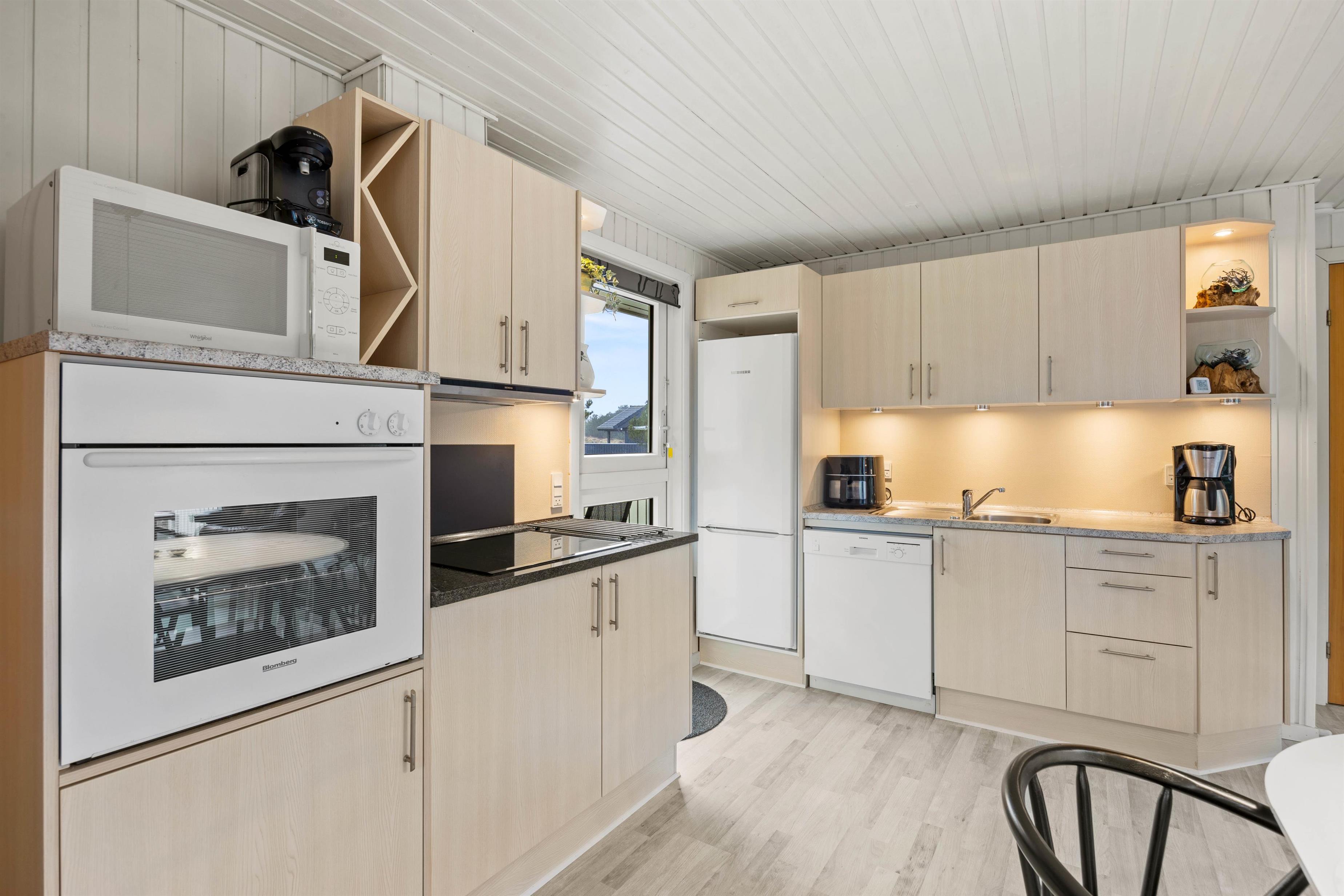 Hjerterummet er stuen, hvor der er lyst og hyggeligt. Her er der plads til hygge og nærvær, og brændeovnens knitrende ild skaber den helt rette sommerhusstemning – helt perfekt til de køligere aftner. Slap af på sofaen med en god bog, se film, lav dejlig mad i det funktionelle køkken eller spil brætspil med familien – mulighederne er mange.