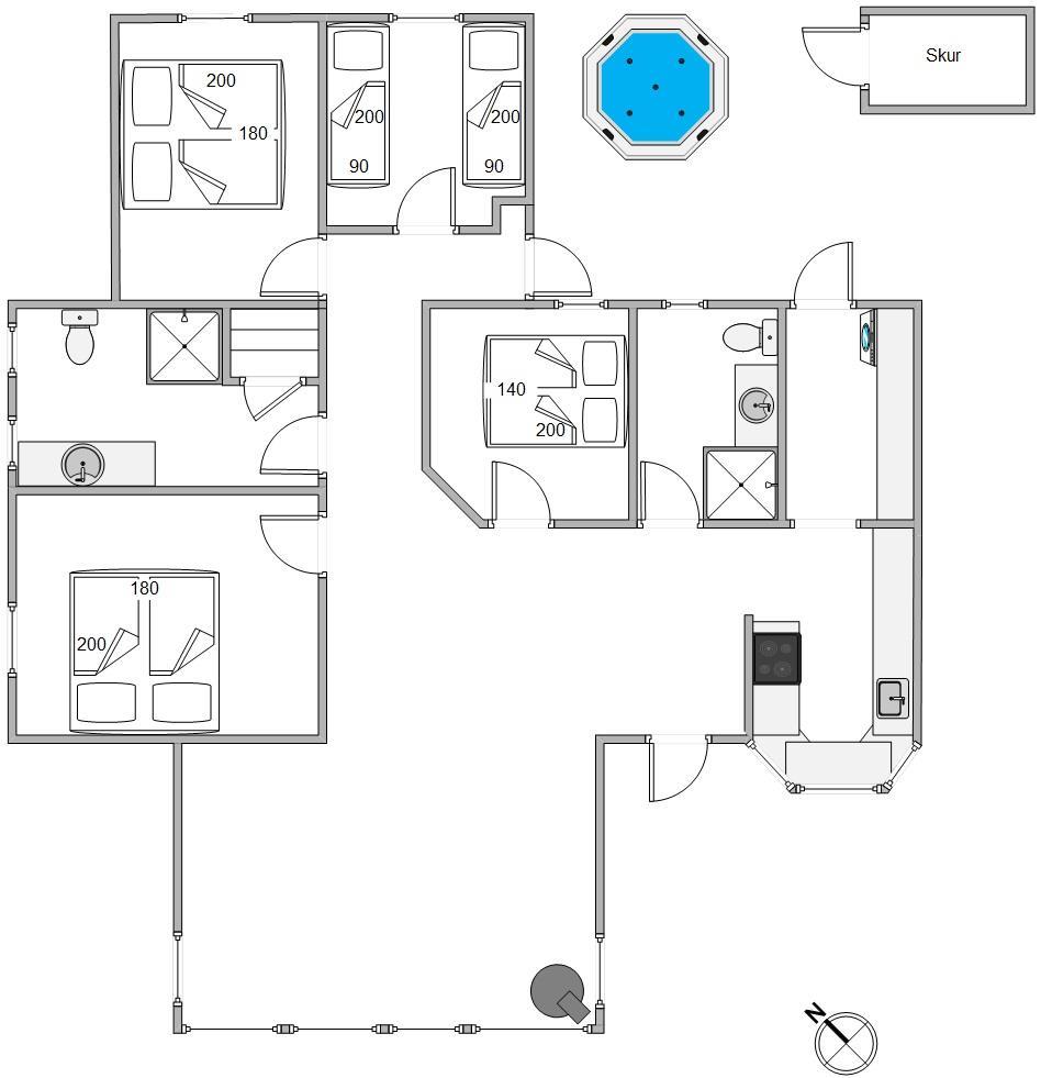 Som I efterhånden får brugt dagens sidste energi, kan I søge mod sommerhusets 4 soveværelser, hvor I kan få samlet ny energi. På 3 af soveværelserne er der dobbeltsenge, mens der på det fjerde soveværelse er 2 enkeltsenge.