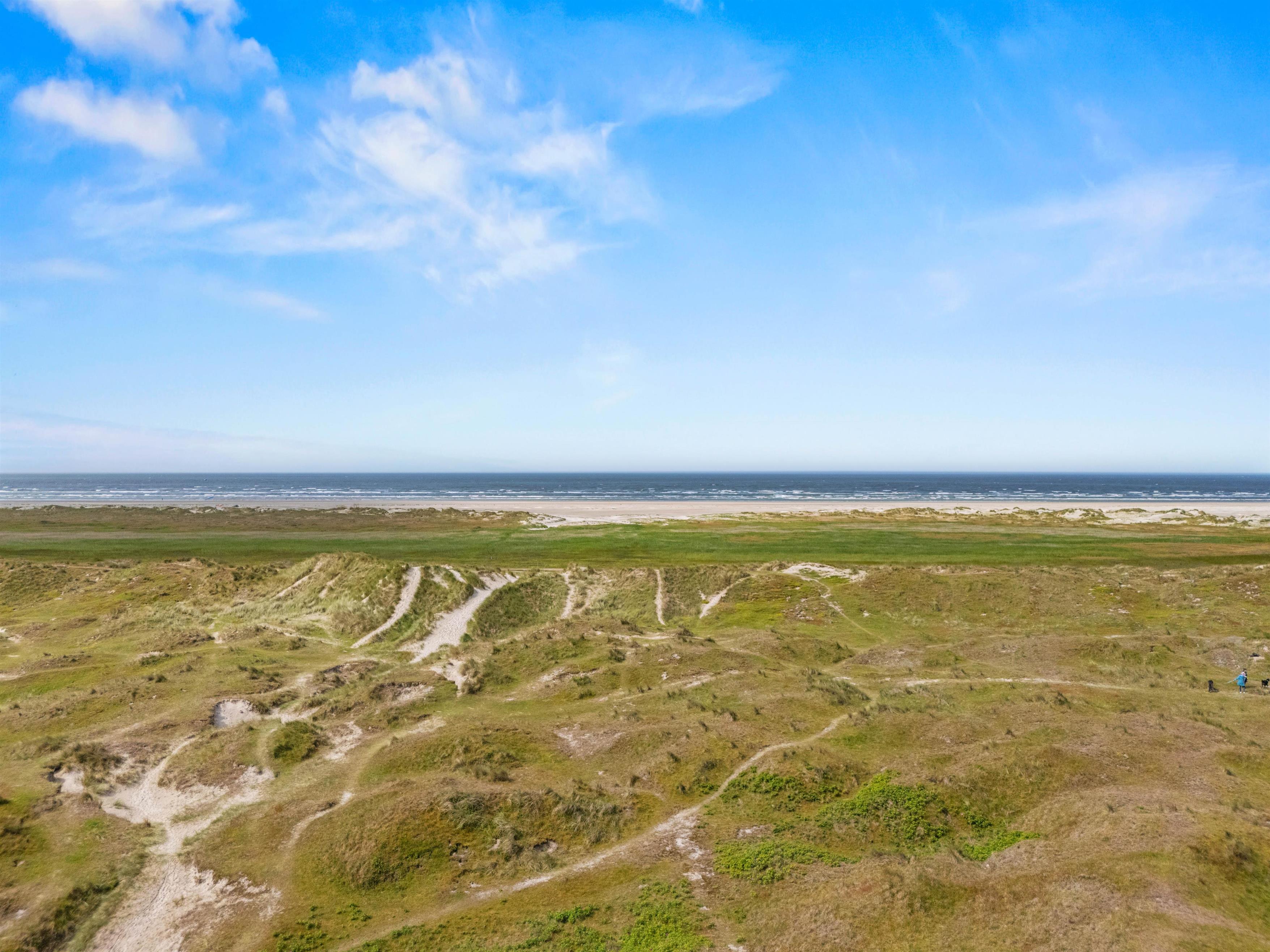 Fra feriehuset på Nyby Klitvej 4 i Rindby på Fanø har I blot 450 meter til stranden, der inviterer til mange forskellige aktiviteter. Her kan I blandt andet gå en lang tur, lede efter rav, flyve med drager og meget mere.