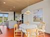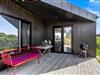 Det praktisk indrettede og indbydende køkken fremstår med en separat 85 liters fryser, samt med et induktionskomfur og en opvaskemaskine, der gør husarbejdet nemmere. Den farverige indretning løber som en rød tråd igennem hele feriehuset, og binder rummene sammen i en herlig forening af farver og teksturer.
