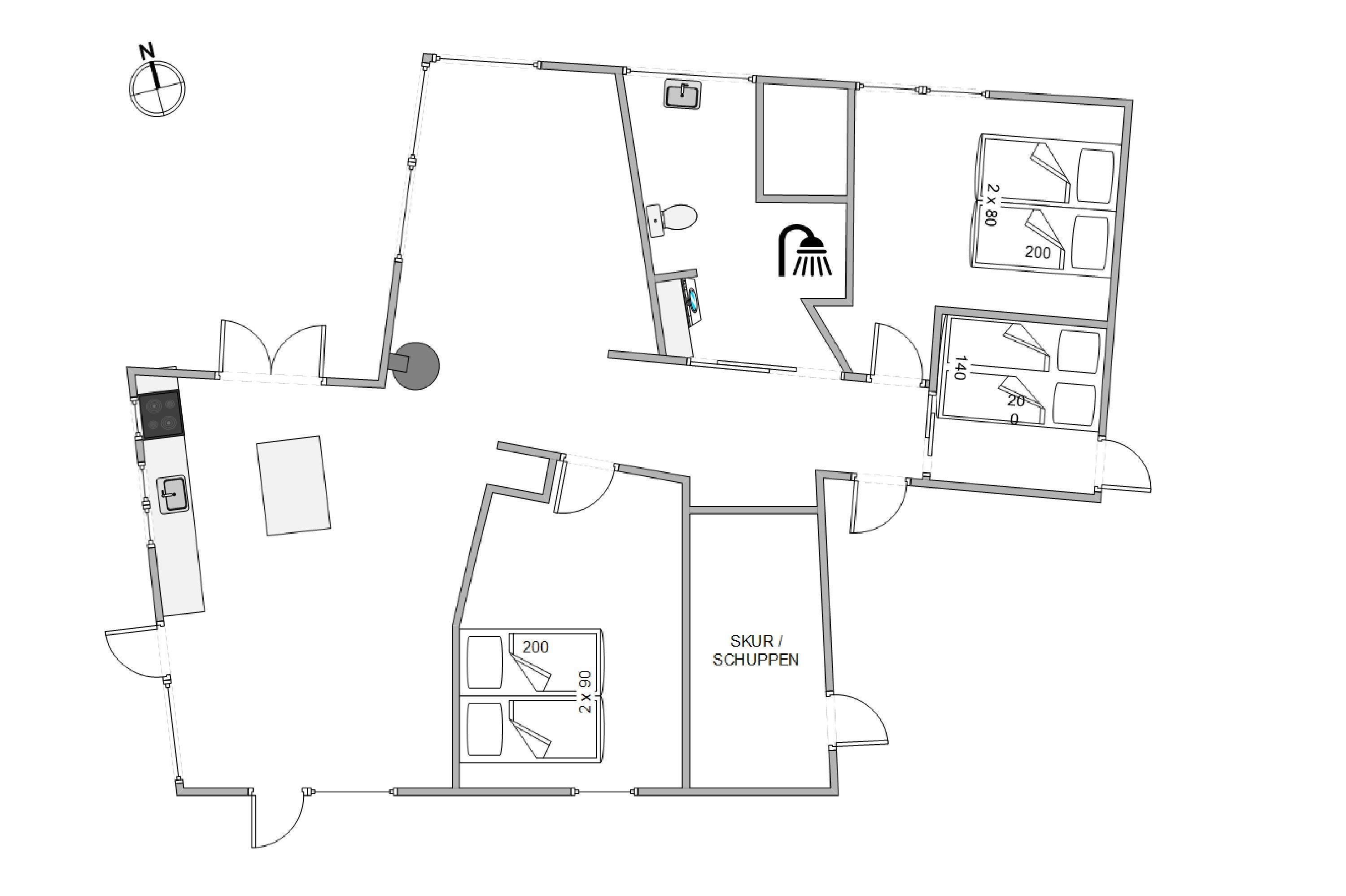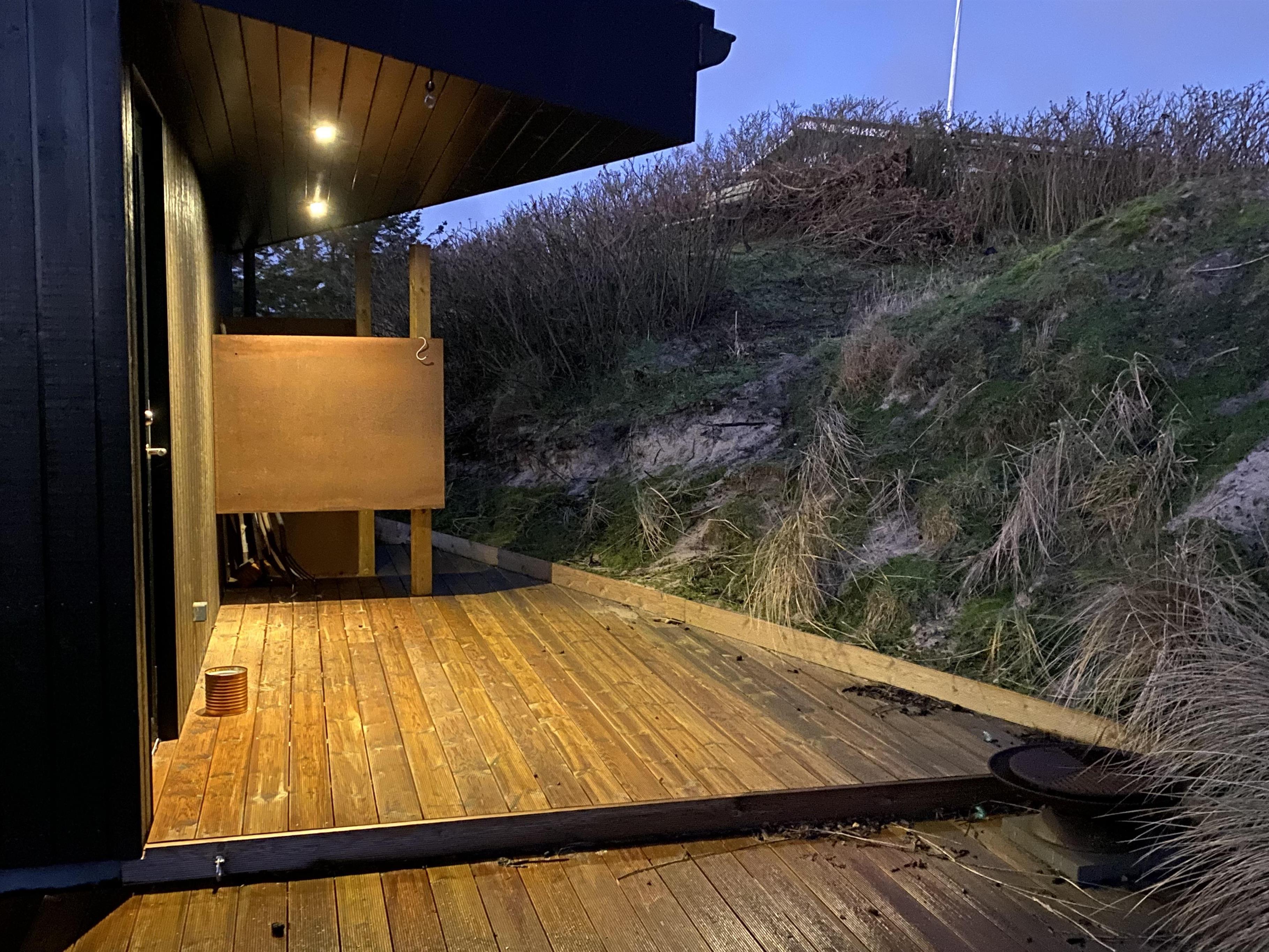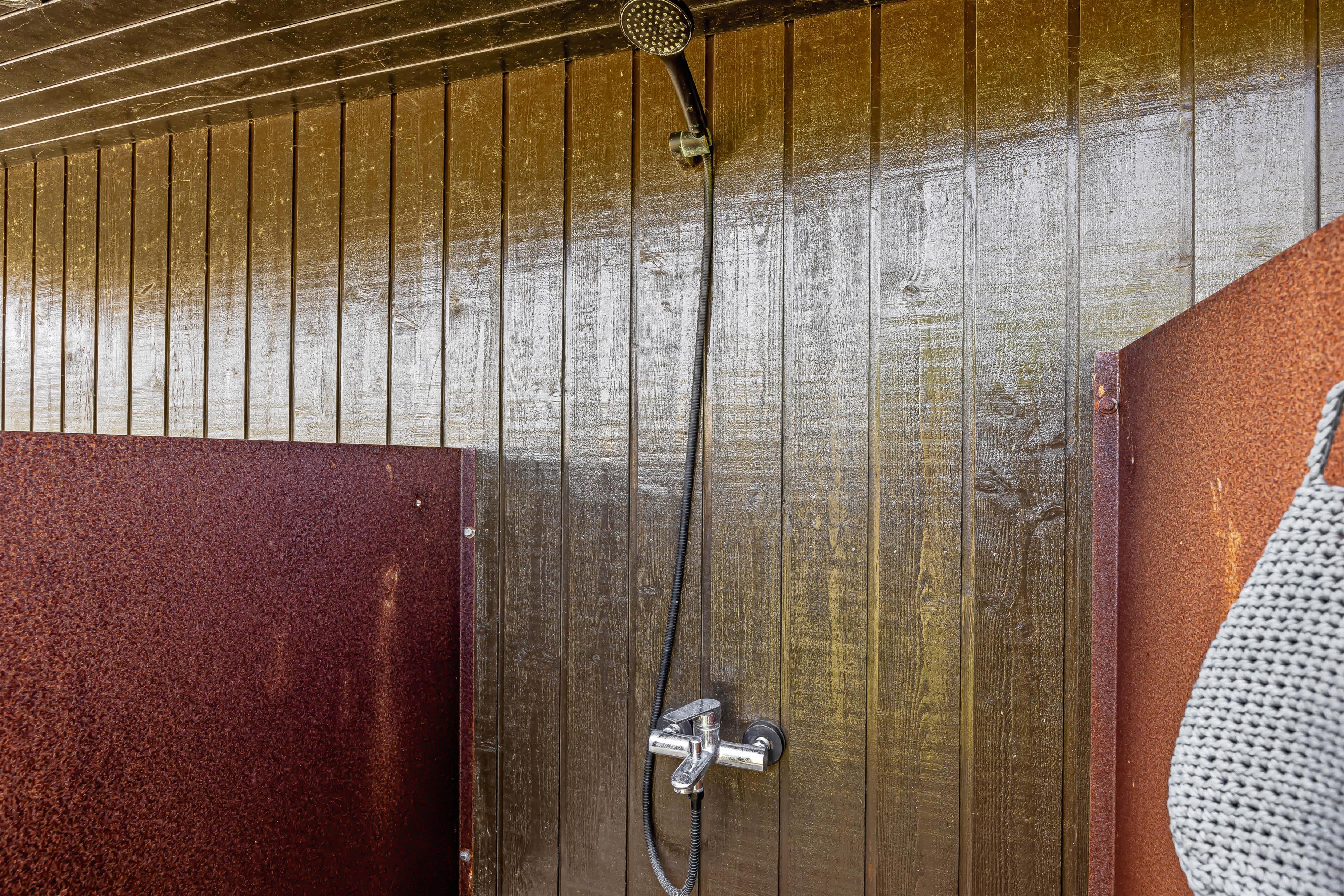 Derudover byder terrassen på en udebruser, hvor I kan blive frisket op efter solbadning i liggestole eller en god strandtur. Denne kan benyttes fra april til november