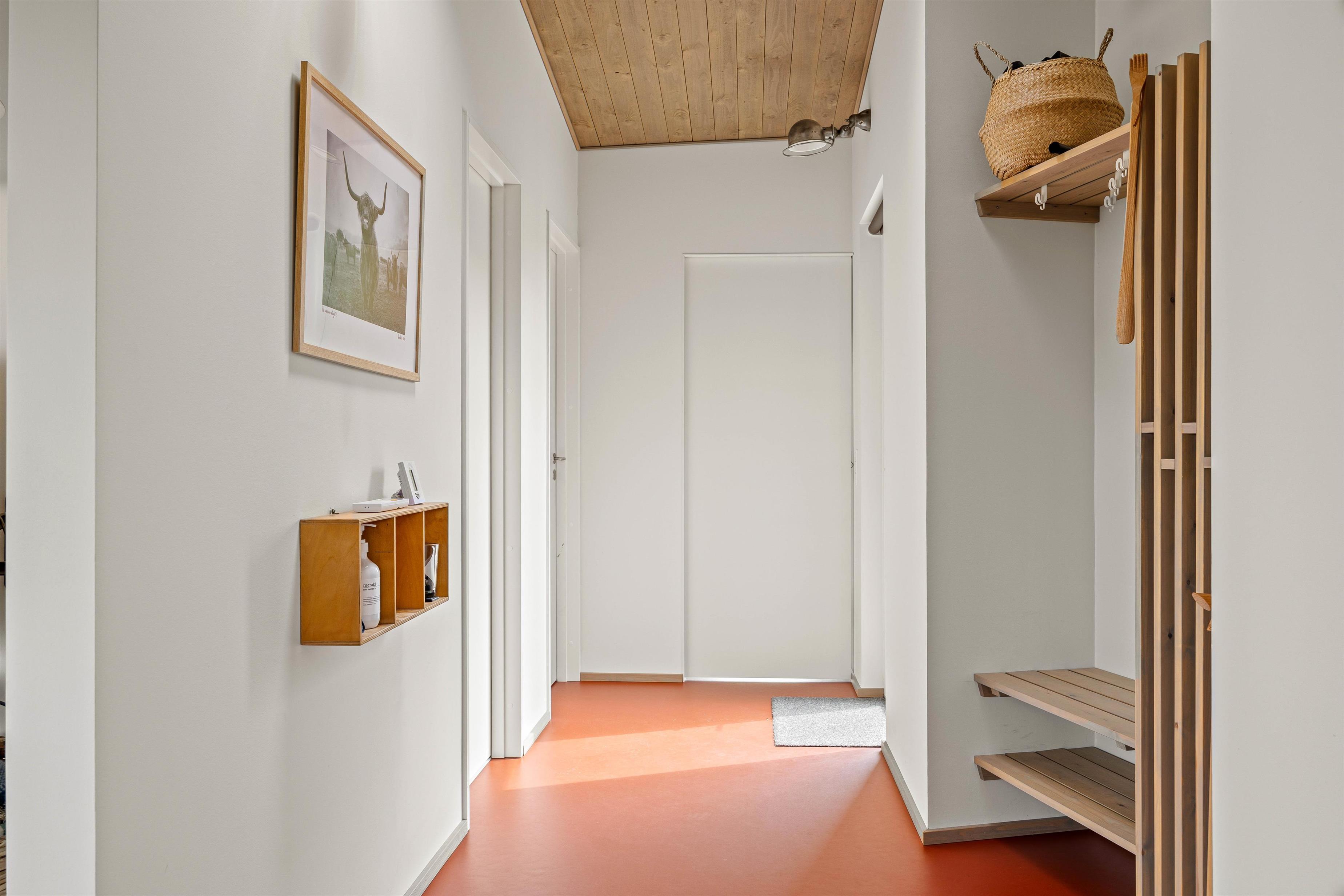 Det 95m2 store feriehuset er desuden udstyret med en energivenlig varmepumpe, der sikrer jer et godt indeklima. Og på det enkle og moderne badeværelse er der indlagt gulvvarme, så ingen behøver at fryse om fødderne.