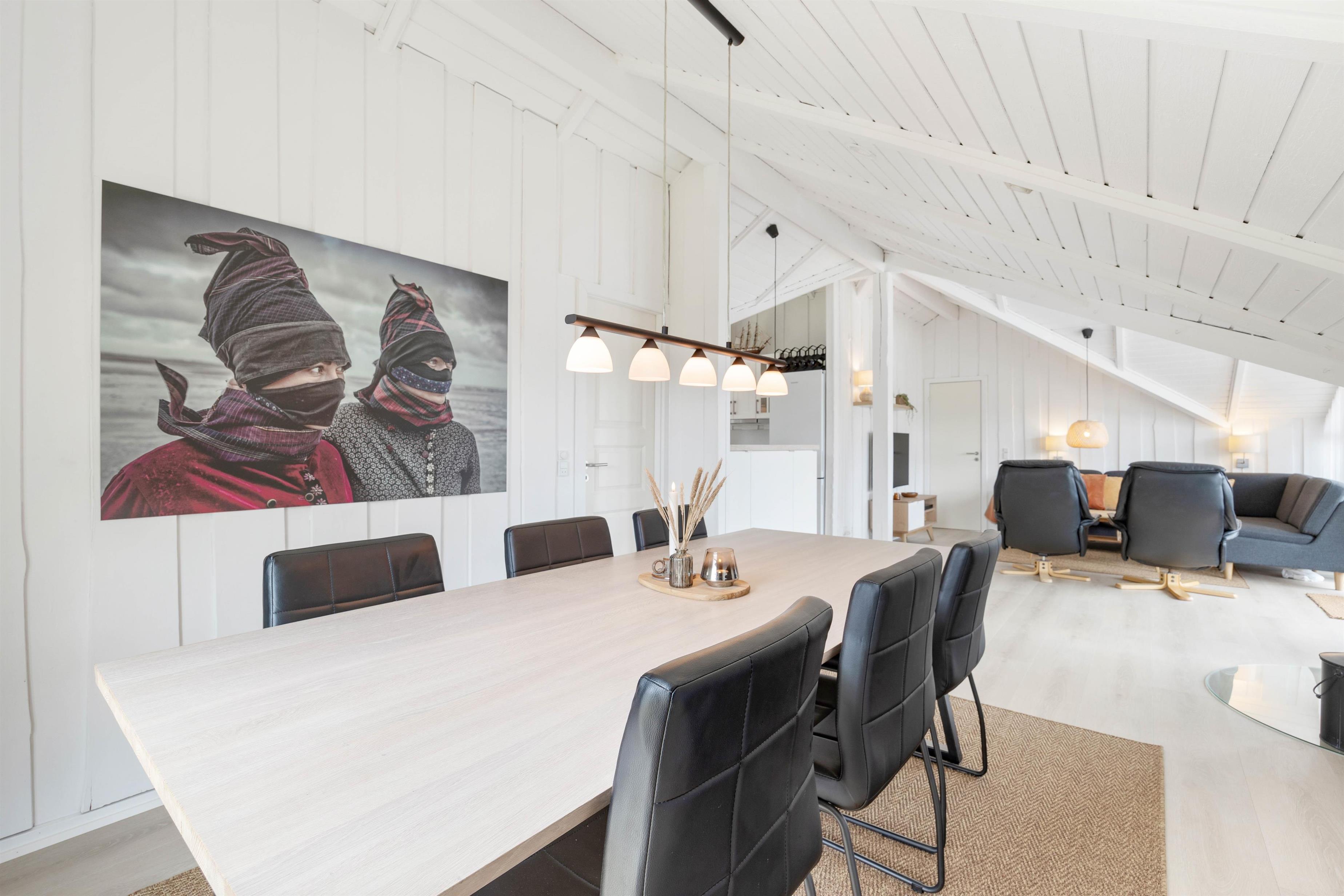 Hjertet af feriehuset er det fine alrum, hvor det veludstyrede køkken med opvaskemaskine er forenet med spiseplads og stue i et, så her er rammerne sat for mange timer sammen i hyggeligt samvær. Se en god film i TV, som I kan streame over Chromecast, eller snup et brætspil ved spisebordet. Mulighederne er mange.