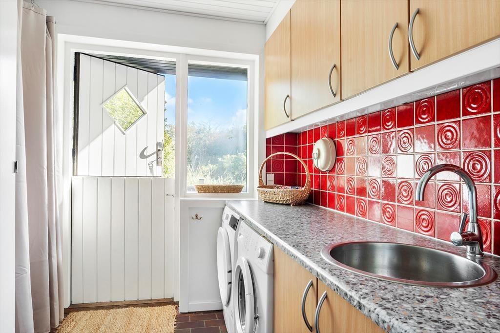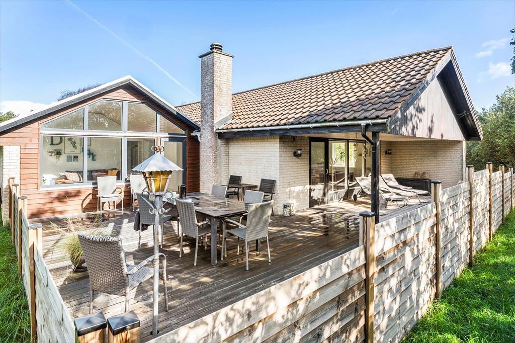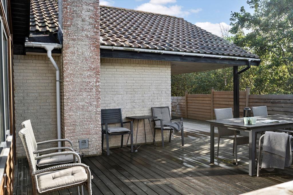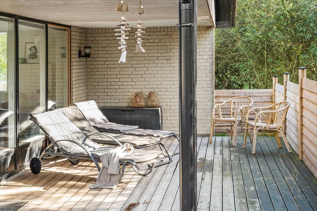 Terrassen er delvist overdækket og helt lukket, så hvis der er små børn eller hunde med på sommerhusferien, får de en tryg ramme at pusle rundt og lege i. Solforholdene er gode, især på den sydvestvendte del af terrassen, og her er der også et overdækket areal, hvis du og resten af selskabet vil blive siddende ude om aftenen, når duggen er faldet. Græsplænen på den ugenerede naturgrund venter på jer, hvis I får lyst til at spille bold eller lege fangeleg.
