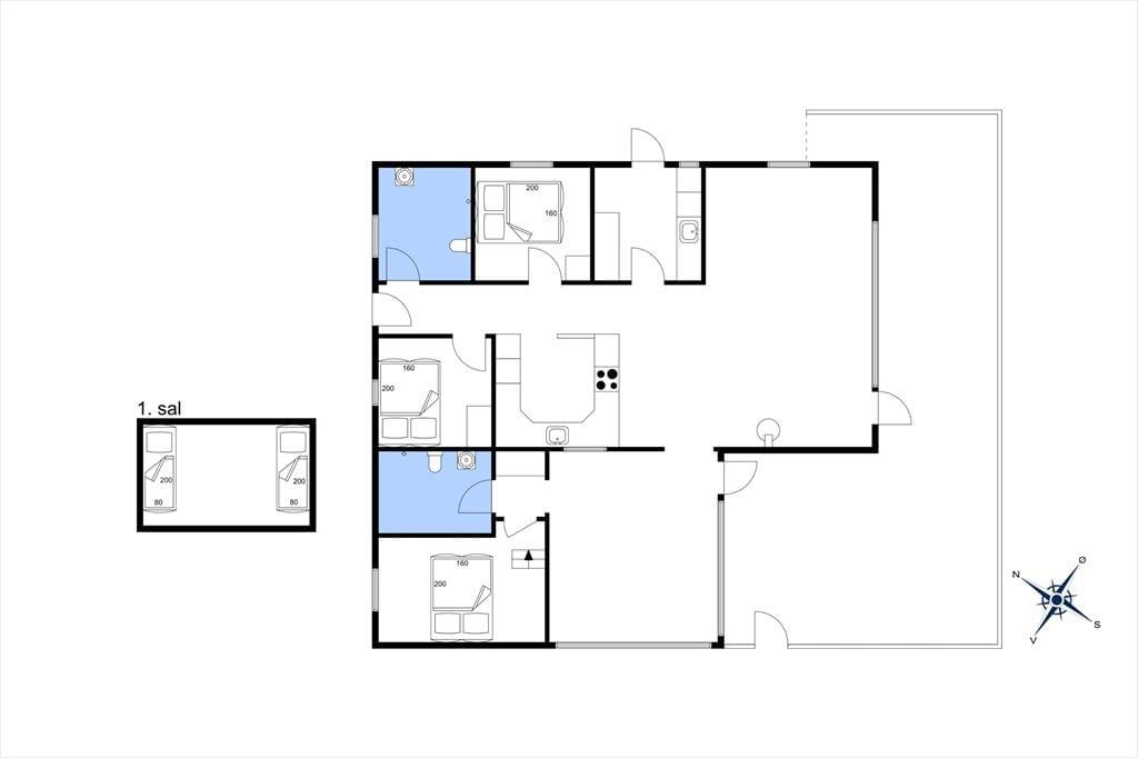 I dette rummelige sommerhus på 130 m² er pladsen optimalt udnyttet til at skabe rammerne for en dejlig ferie. Huset byder på tre soveværelser og to badeværelser samt en hems med ekstra madrasser, så der er plads til op til 8 personer. Det gør huset ideelt til en ferie med familie eller venner, hvor både børn og voksne kan nyde hyggelige stunder sammen.