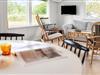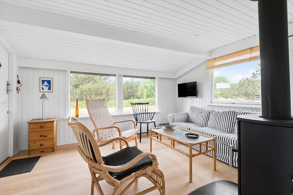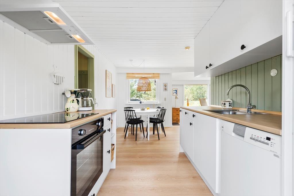 Vejret og årstiden har sikkert indflydelse på, hvor størstedelen af ferien kommer til at foregå. Og på de dage, hvor der er lagt op til indendørs hygge, kan du glæde dig til at slænge dig i en af sofaerne i husets charmerende stue, der blandt andet er udstyret med brændeovn, fladskærms-tv og spisebord nær det åbne køkken. Netop køkkenet bliver udskiftet i 2024, og på samme tid er bliver farvetonerne lysnet inden døre. Med andre ord bliver det altså om muligt en endnu større fornøjelse at holde til i husets rare og charmerende omgivelser.