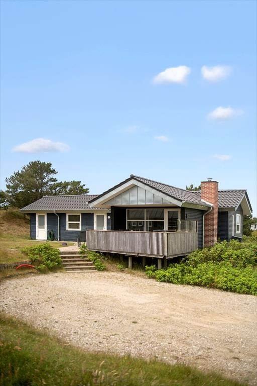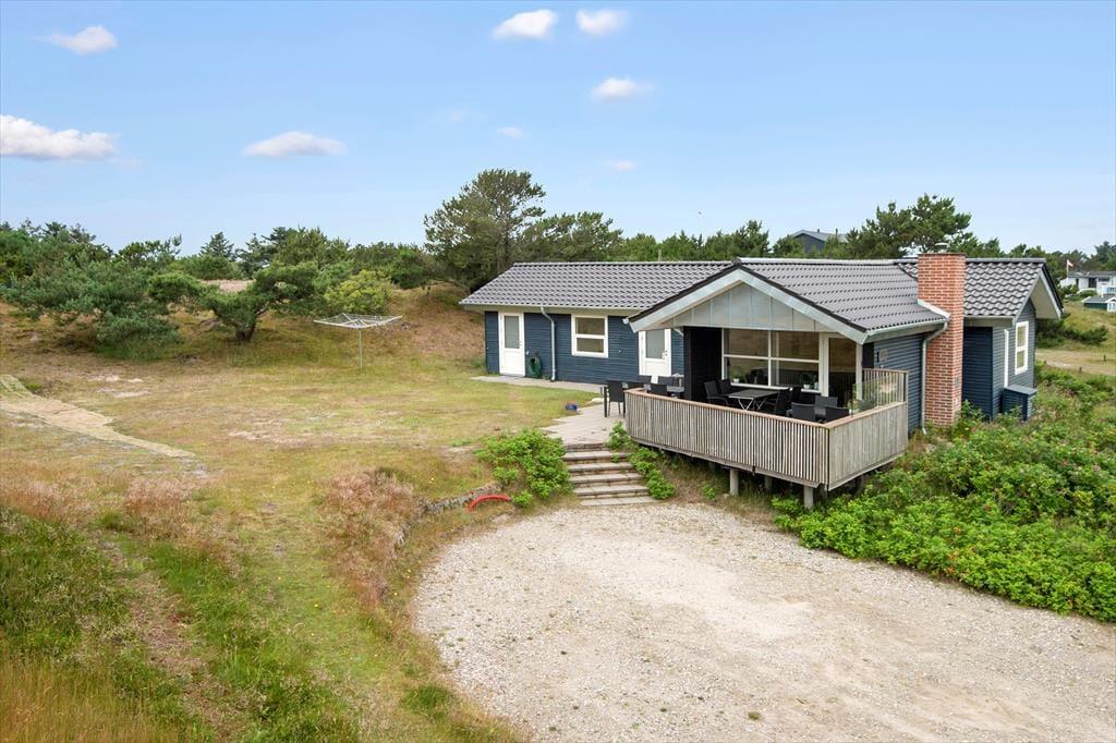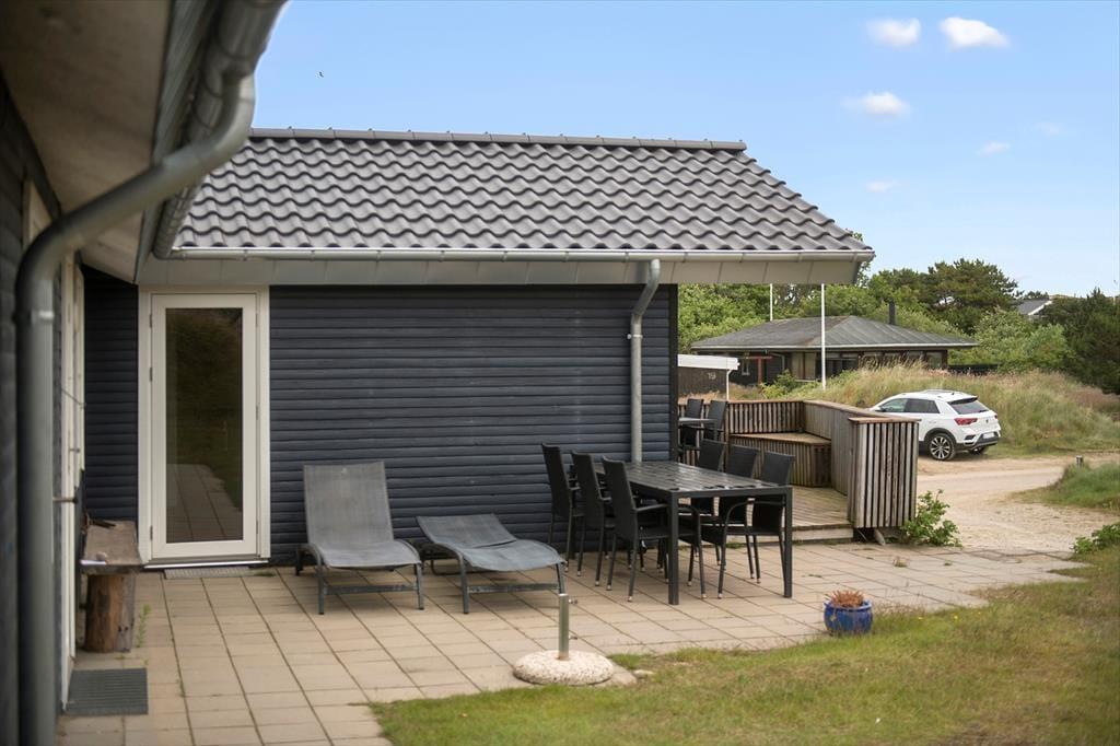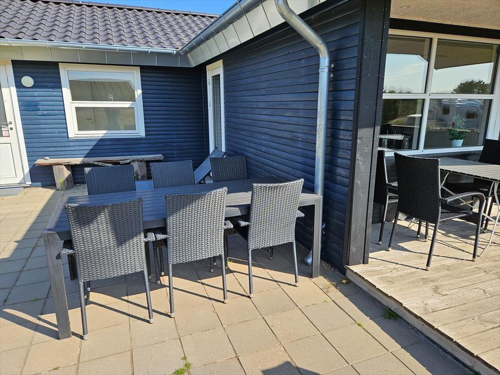 Fra stuen har du nem adgang til de dejlige terrasser, der breder sig rundt om sommerhuset. Tag kaffen med ud i solen, hvis du vil sidde i frisk luft og lytte til fuglesang lige fra morgenstunden. Og hvis du ikke har noget behov for at komme op af havestolen, kan du sagtens blive siddende i flere timer – det er en af de friheder, man kan tage sig, når det er ferietid. Har du børn med på ferie, vil de nu sikkert gøre deres bedste for at lokke dig op, så du kan være med til at lege fangeleg eller spille bold på græsplænen. Og den slags er der heldigvis også god plads til på den store naturgrund.