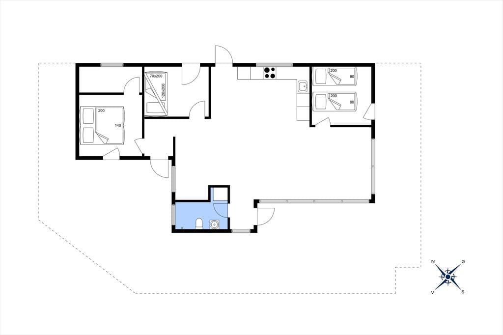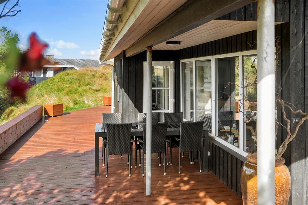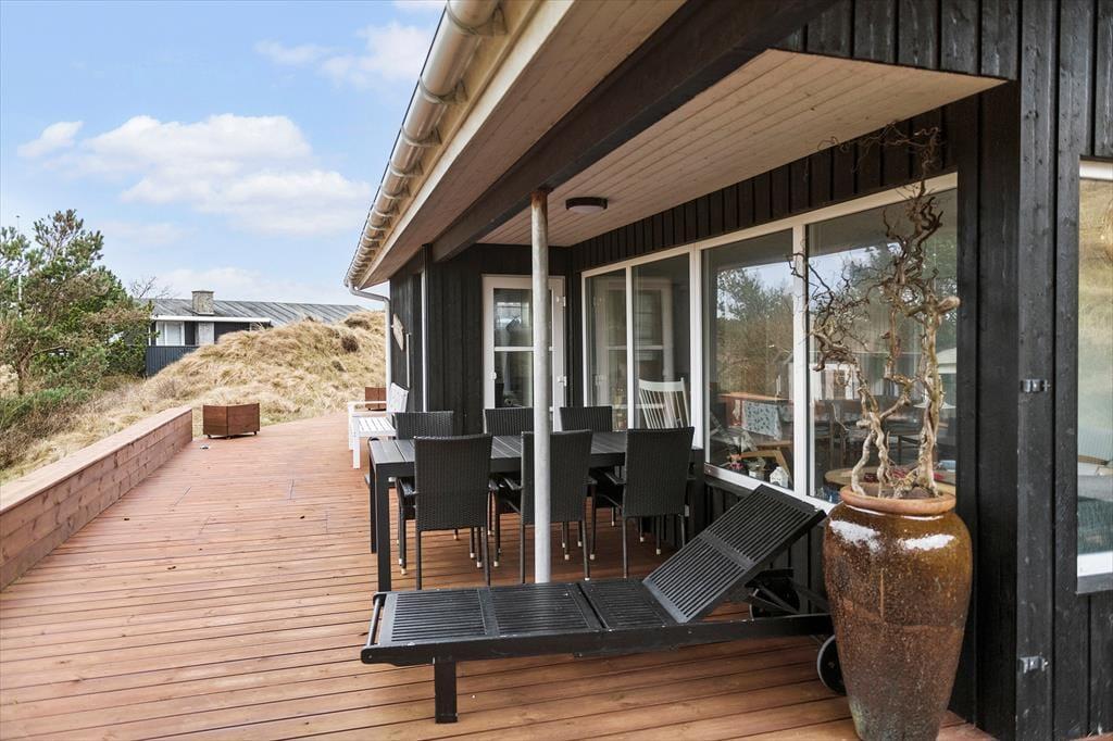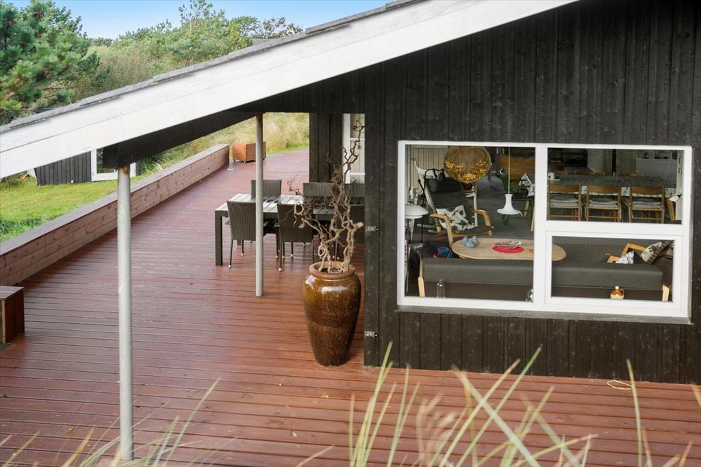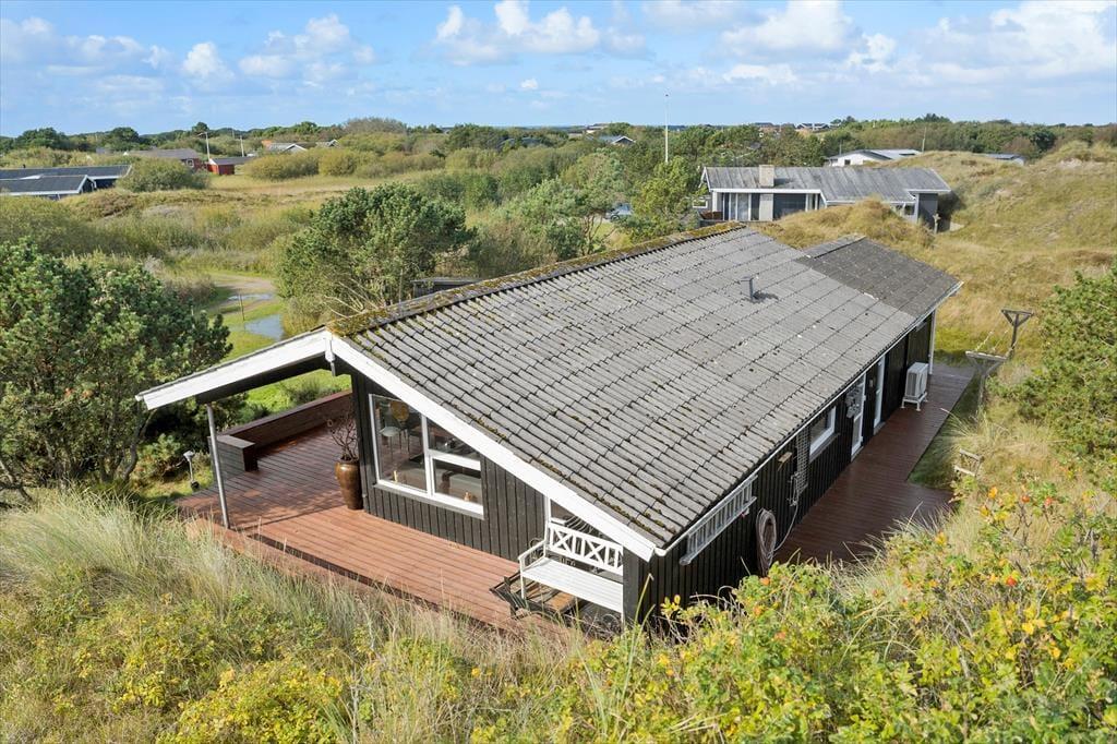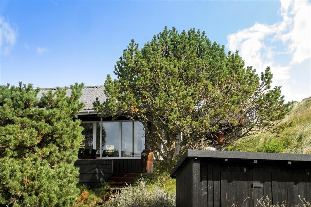 Sommerhuset har en dejlig placering i klitterne, så du kan se lige ud på bølgende marehalm og krogede fyrretræer, men også videre ud over området. Særligt i stuen sørger de store vinduer for at invitere lyset og naturen indenfor, og selvom du slapper af inden døre, bliver du stadig mindet om, at du er på ferie langt væk fra hverdagens trummerum. Både sofaafdelingen og spisebordet er hyggelige samlingspunkter, og hvis I er flere i familien, der kan lide at lave mad, kan I sagtens stå flere i det åbne køkken, når der skal skæres sprød salat eller laves velduftende gryderetter.