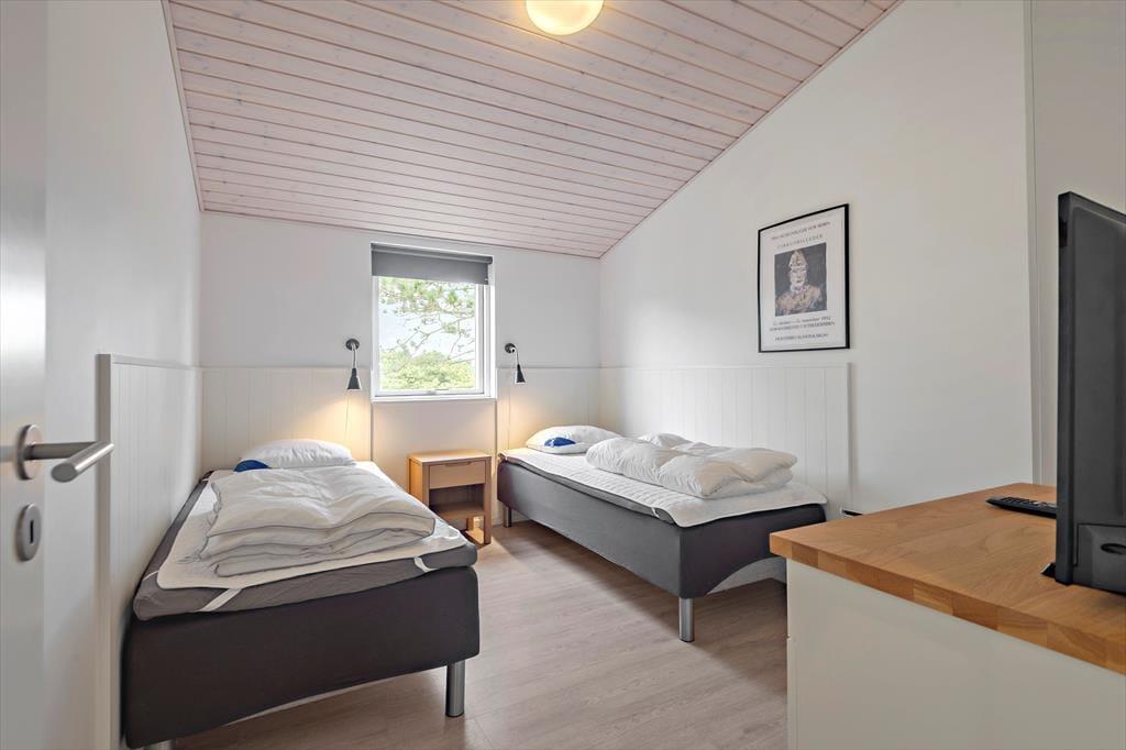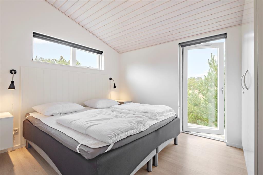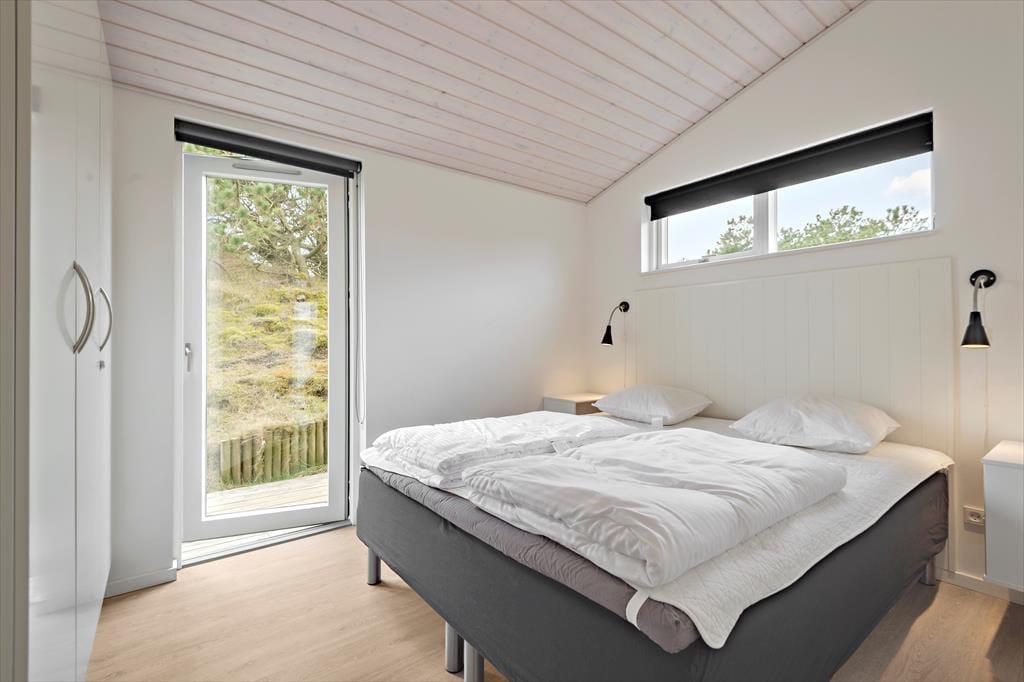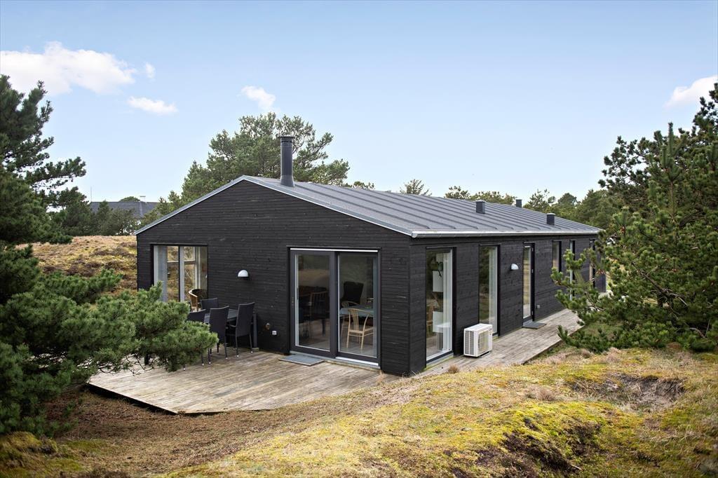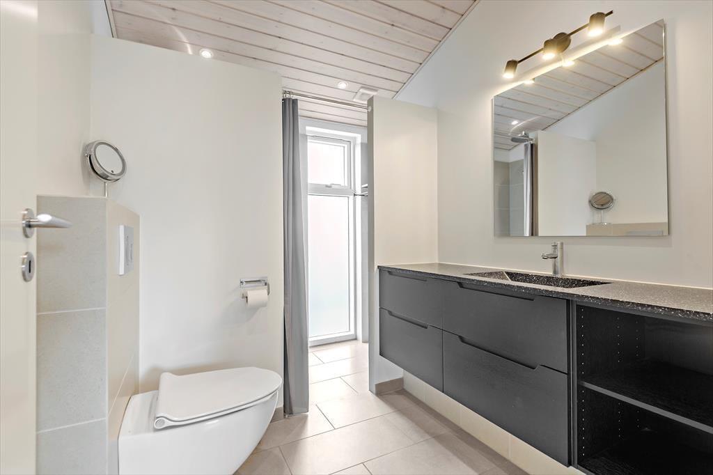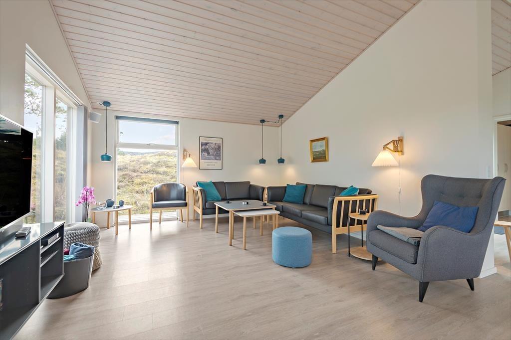 Sommerhusets planløsning er gennemtænkt, så både nattesøvnen, morgenbadet og de sociale stunder kan udspille sig i skønne omgivelser. I den ene ende af huset ligger tre gode soveværelser og to pæne badeværelser samlet – det vil sige, at du har mulighed for at trække dig tilbage for at sove, selv hvis de andre skulle have lyst til at blive længe oppe for at høre musik og spille spil i opholdsafdelingen. Når I alle sammen hygger jer her, har I god plads til både sofaafslapning og lækre middage såvel som madlavning i det åbne og veludstyrede køkken. Der er brændeovn i det lyse og højloftede rum, og de store vinduespartier sørger for, at både solen og naturen bliver inviteret helt indenfor.