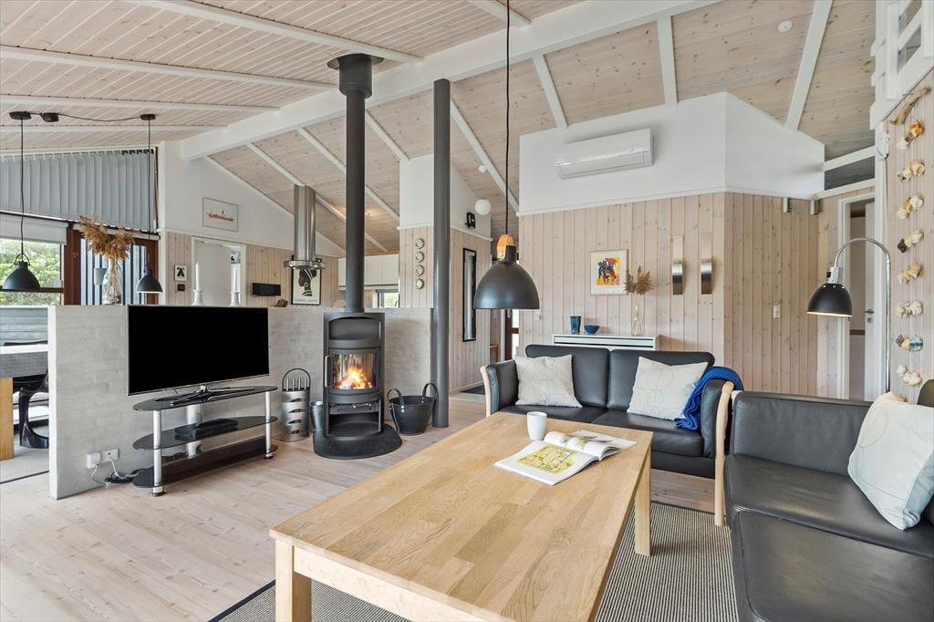 Du kan se frem til nogle vidunderlige feriedage med familie eller gode venner, når du booker dette velindrettede sommerhus på Hympelvej. Inden døre er der god plads til seks personer, og I bliver forkælet med spabad, sauna og andre lækre detaljer – og så er det for øvrigt skønt, at huset ligger få minutters gang fra Rindby Strand og Vesterhavet.