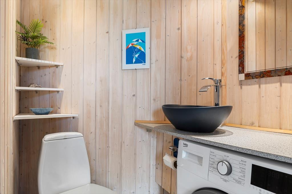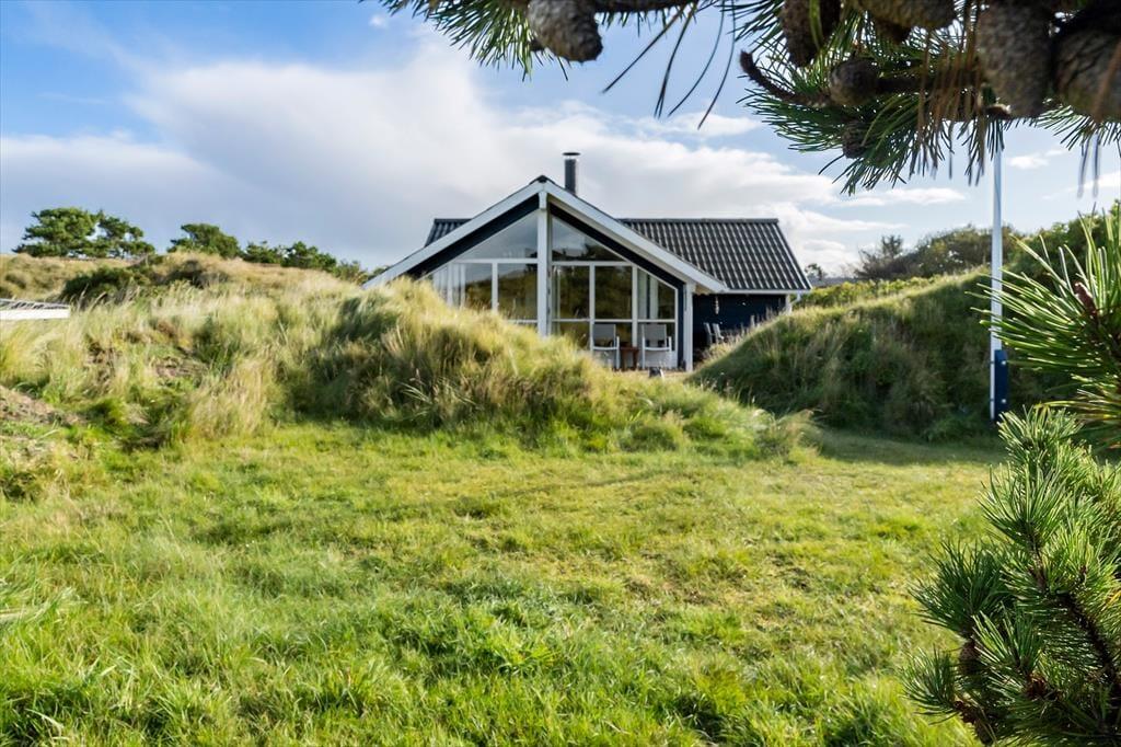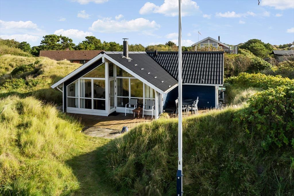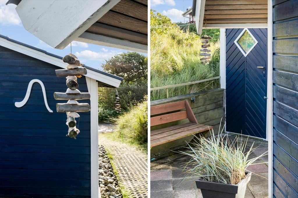 På den 1100 m2 store naturgrund omkranses sommerhuset af marehalmsklædte klitter, og de er med til at skærme af for brisen, når du soler dig på terrassen eller deler et måltid med dine kære under åben himmel. Der er flere terrasser at vælge imellem, og du kan selvfølgelig også rykke helt ud på plænen, hvis du vil lege med børnene eller have en siesta på langs på et tæppe. Takket være den korte afstand til kysten kan du nyde den friske havluft, mens du læner dig tilbage – og hvis du vil i nærkontakt med vandet, tager det ikke mange minutter, får du står på stranden.